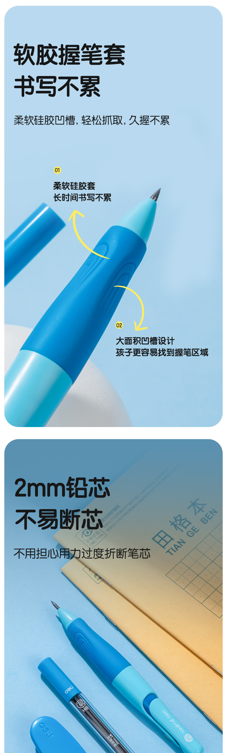 델리 SH179-20 학생용 자동연필 HB 1학년 초보자 2.0mm 심이 깨지기 쉽지 않음