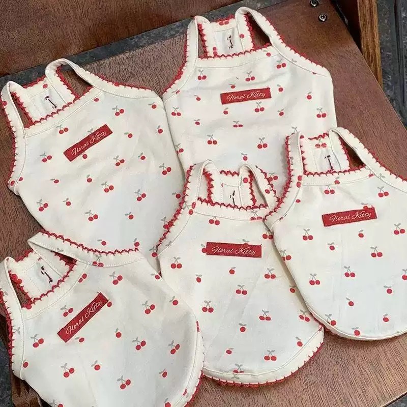 체리 서스펜더 스커트 애완 동물 스커트 테디 비숑 포메라니안 작은 강아지 고양이 개 여름 옷스토어 가기