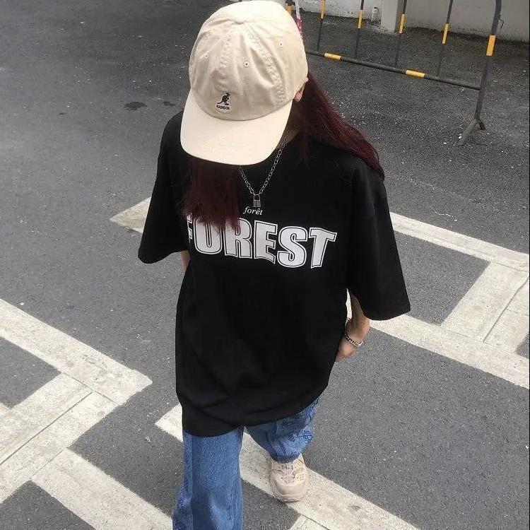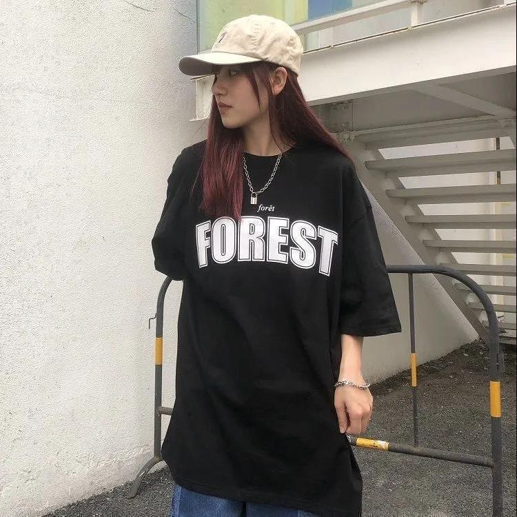 • 검정색 티셔츠 흰색 글자 FOREST