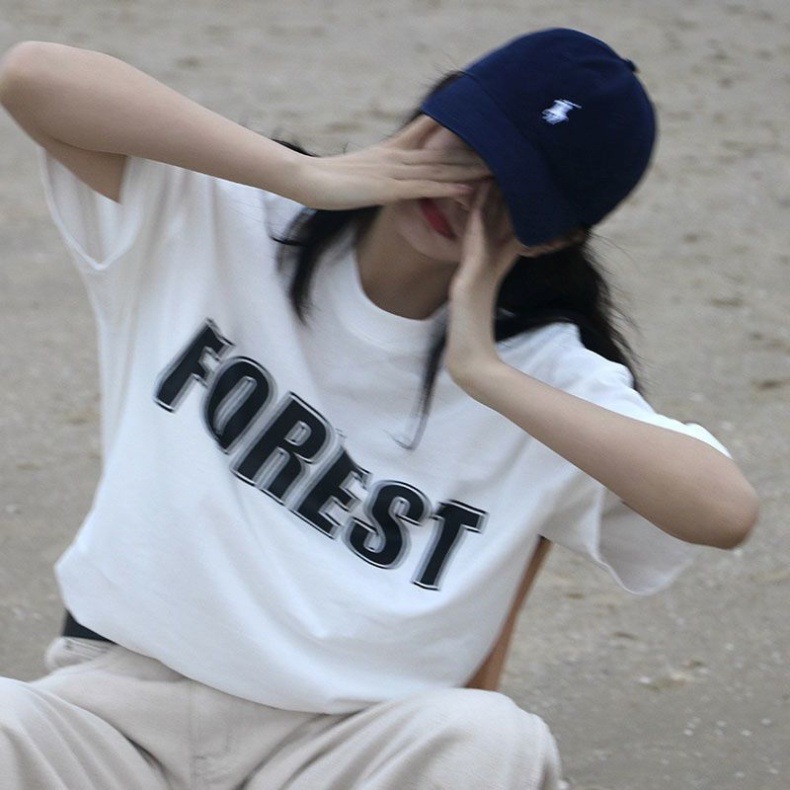 • 흰색 티셔츠 검정색 글자 FOREST