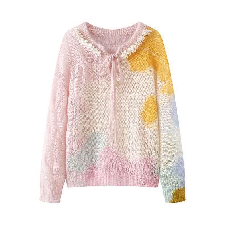스팟 봄 신상 혼합 색상 모헤어 인서트 탑 스웨터 여성 루즈하고 다재다능한 패셔너블한 스웨터 재킷스토어 가기