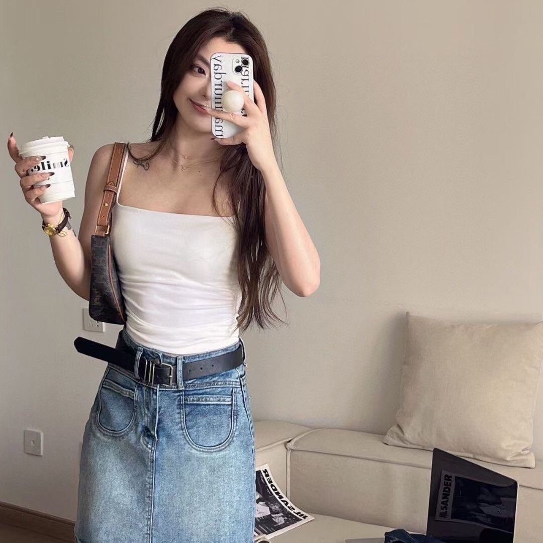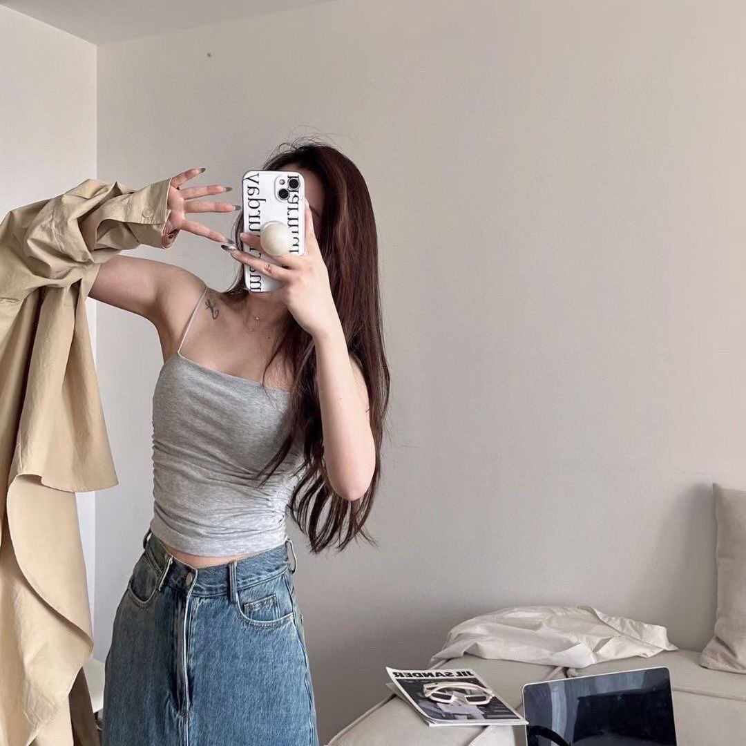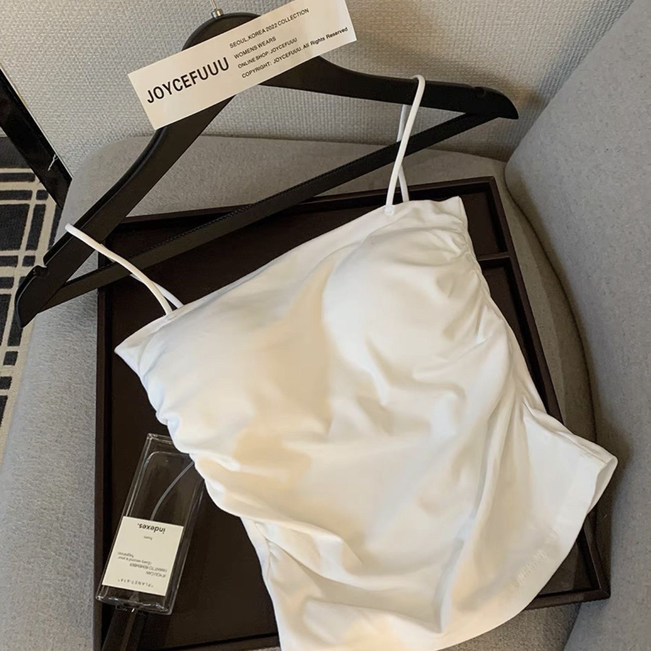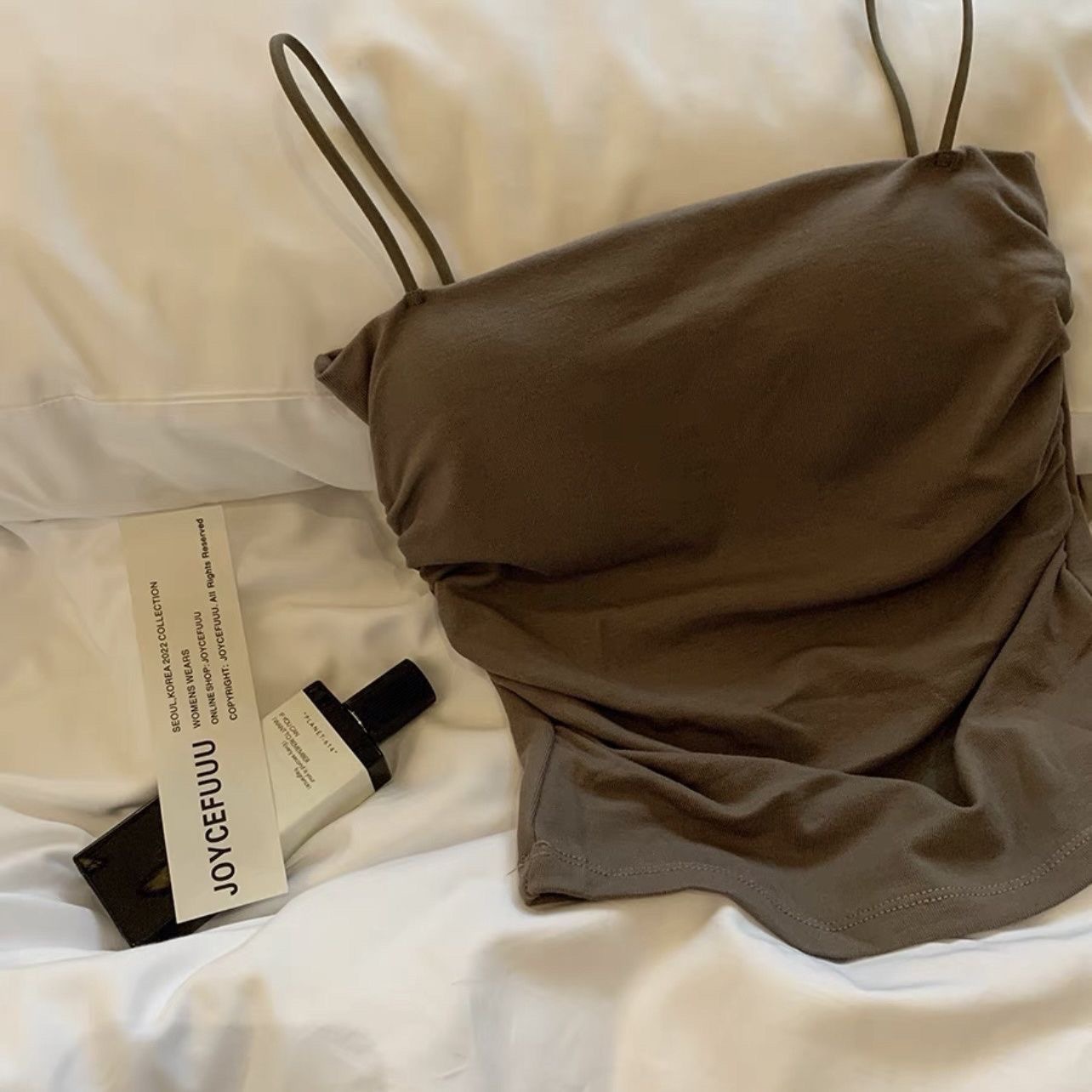 캐미솔, 활용도 높은 플리츠, 인기 이너웨어, 아우터탑, 여성용 솔리드 컬러, 심플한 디자인, 한국판, 여름용 가슴 패드스토어 가기