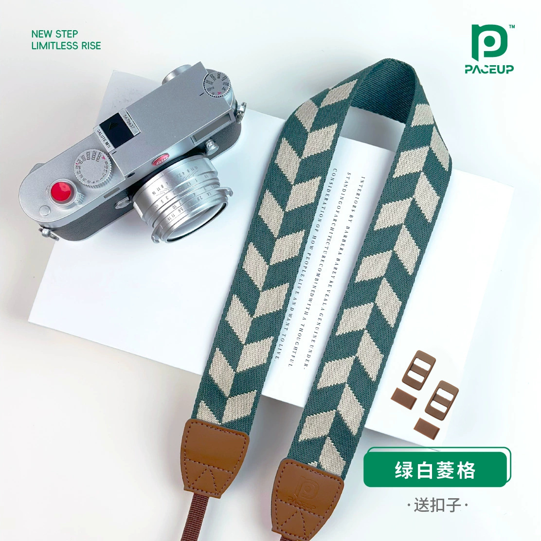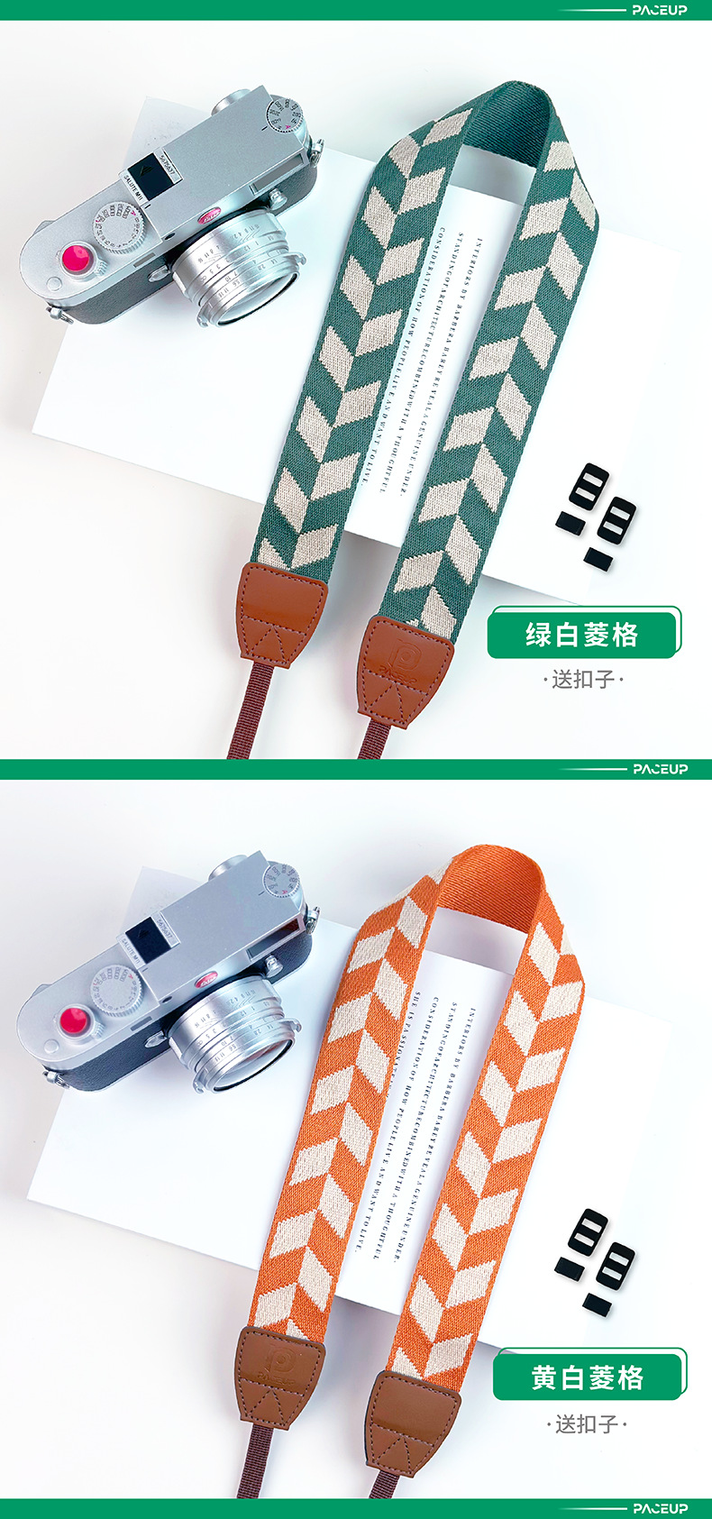 • [카메라 스트랩] 레트로 다이아몬드 모양의 짙은 녹색(버튼 포함)