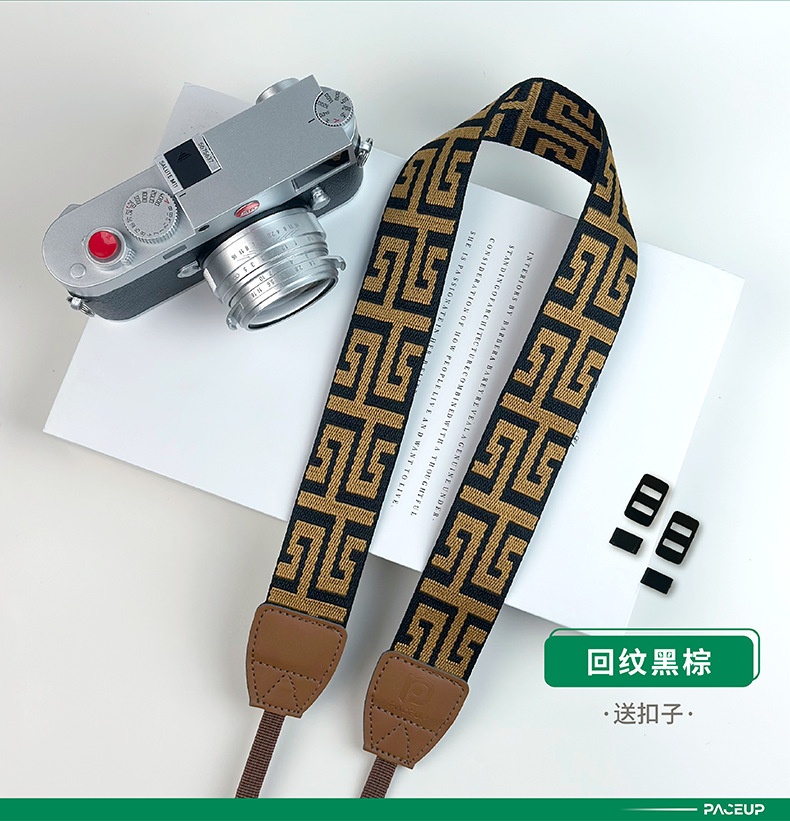 • [카메라 스트랩] 블랙, 브라운 패턴 (단추 포함)