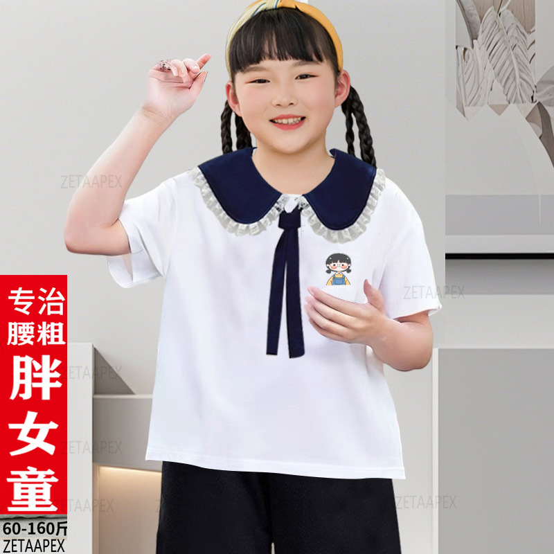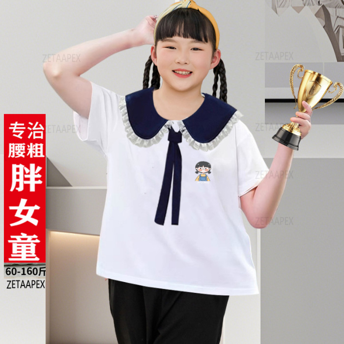 뚱뚱한 소녀의 중대형 어린이를 위한 반팔 티셔츠, 뚱뚱한 어린이를 위한 플러스 사이즈 루즈한 여름 캐주얼 스포츠 뚱뚱한 소녀 상의