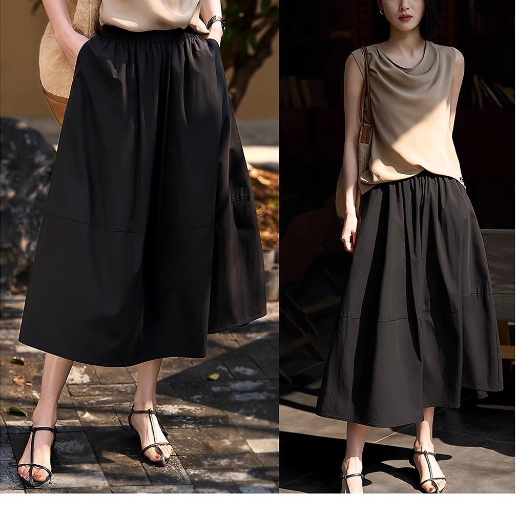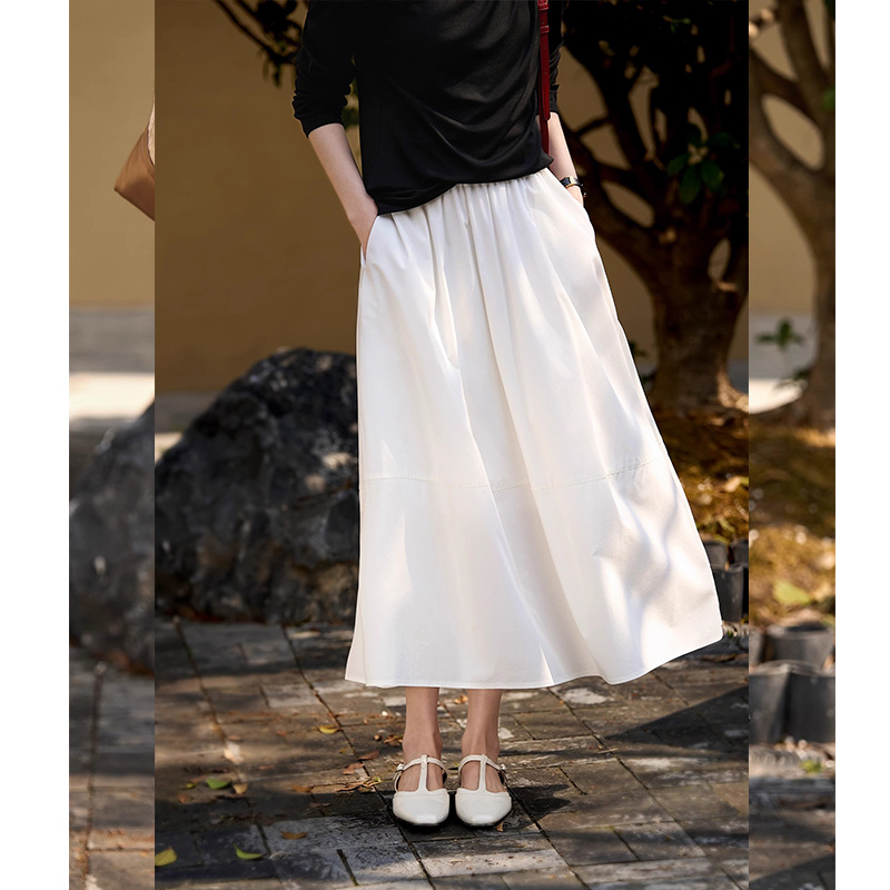 프랑스 스타일 스커트 여성의 봄과 여름 흑백 캐주얼 높은 허리 큰 우산 스커트 2025 새로운 스타일스토어 가기