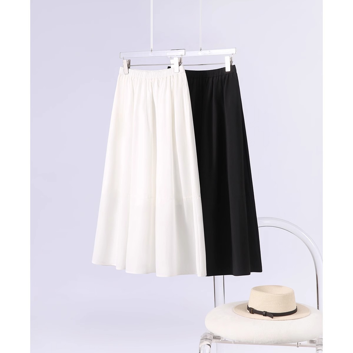 프랑스 스타일 스커트 여성의 봄과 여름 흑백 캐주얼 높은 허리 큰 우산 스커트 2025 새로운 스타일