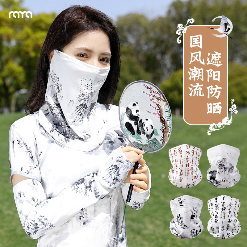 새로운 중국 스타일 레트로 국립 스타일 선 스크린 마스크 여성의 여름 야외 얼굴 커버 목 보호 스카프 얼음 감각 통기성 선 스크린 얼음 소매스토어 가기