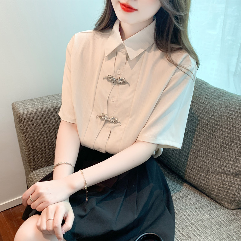 여름 디자인 센스 로즈 버튼 레트로 셔츠 여성의 2023 새로운 틈새 올 매치 간단한 우아한 탑