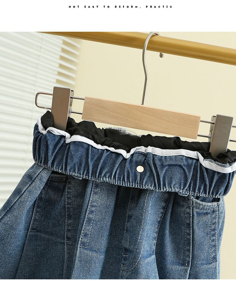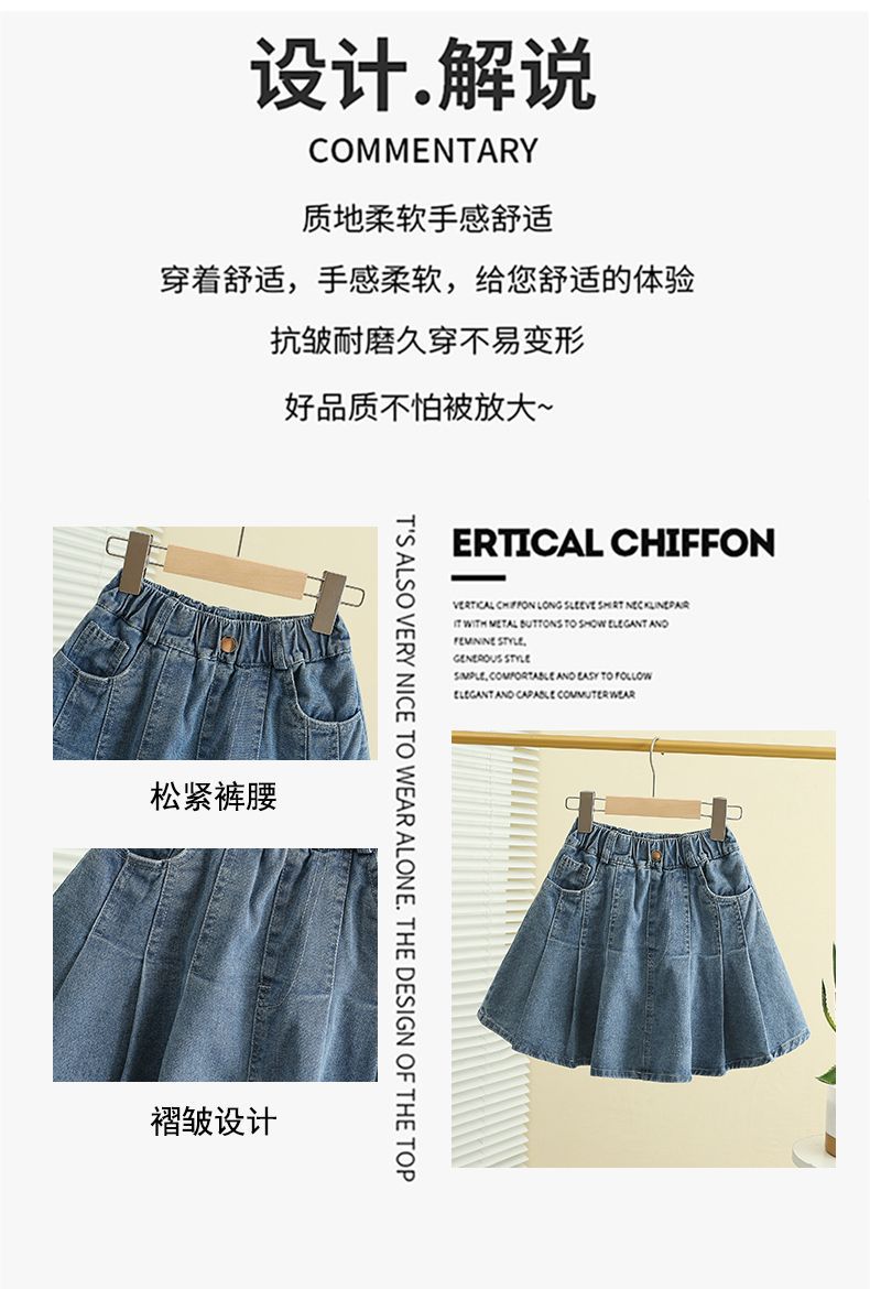 소녀 높은 허리 데님 치마 여름 2025 새로운 어린이 세련된 주름 치마 어린이 느슨한 유행 치마스토어 가기