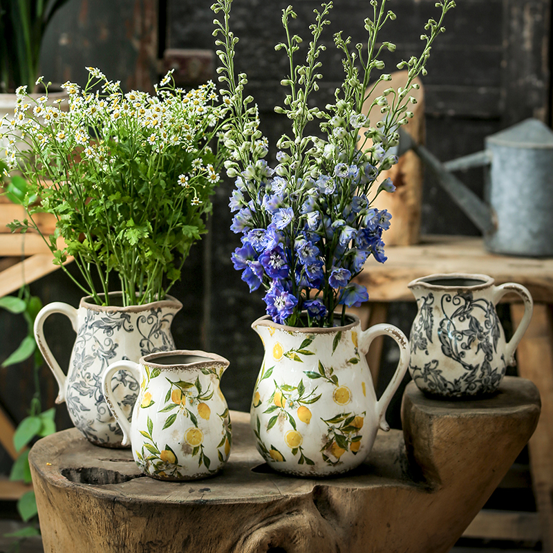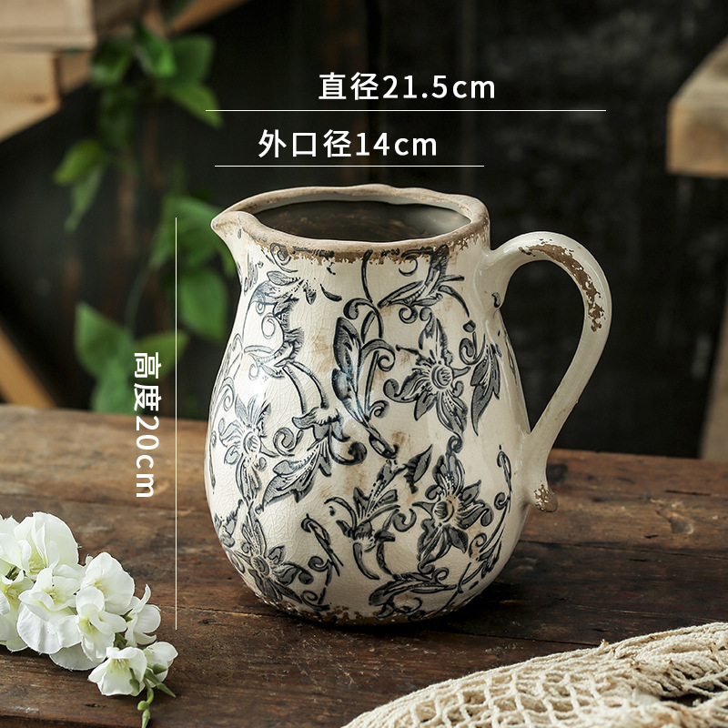 레트로 목가적 인 스타일의 세라믹 화분 창조적 인 꽃병 장식품 거실 꽃꽂이 도구 창조적 인 미국 예술스토어 가기