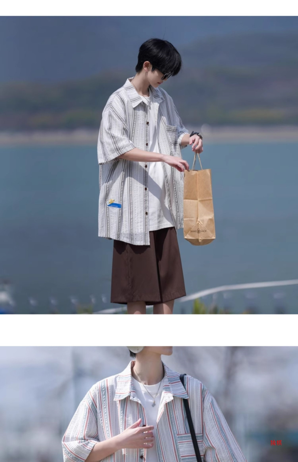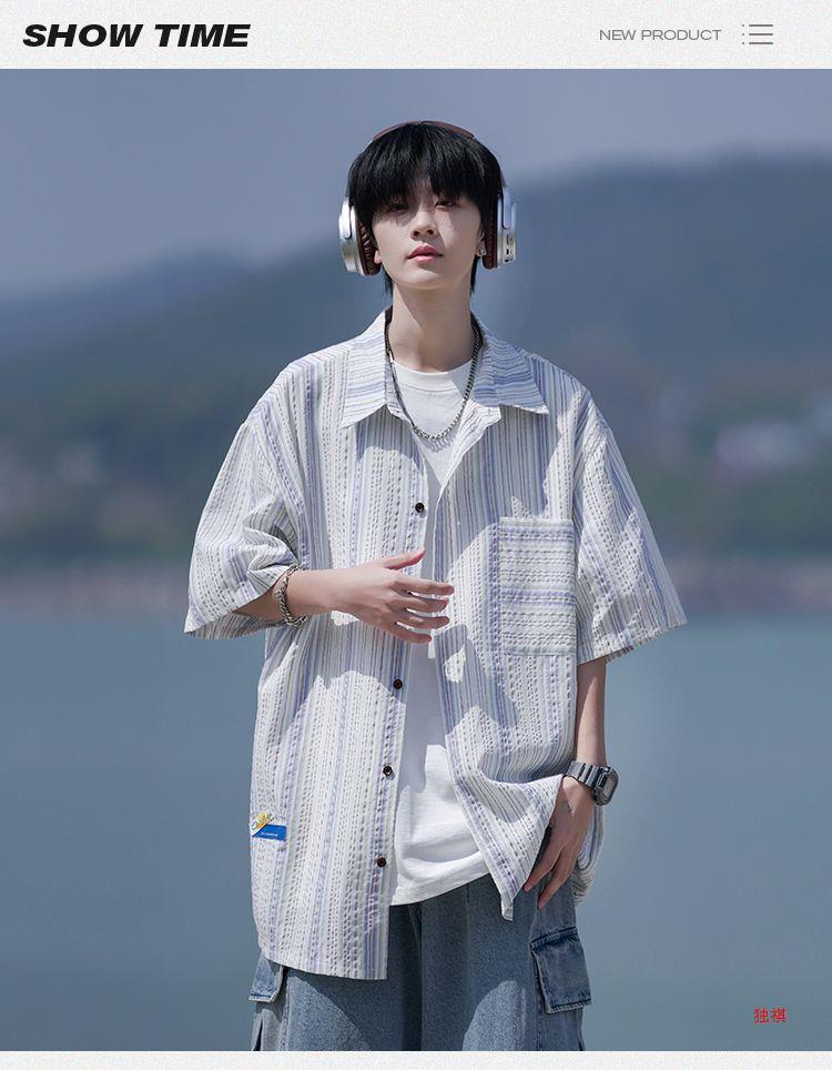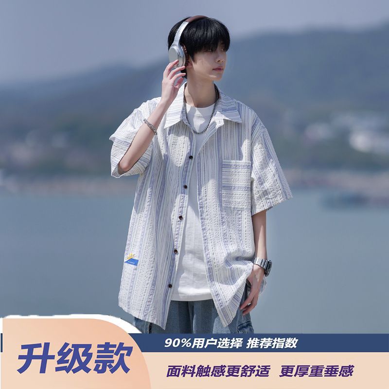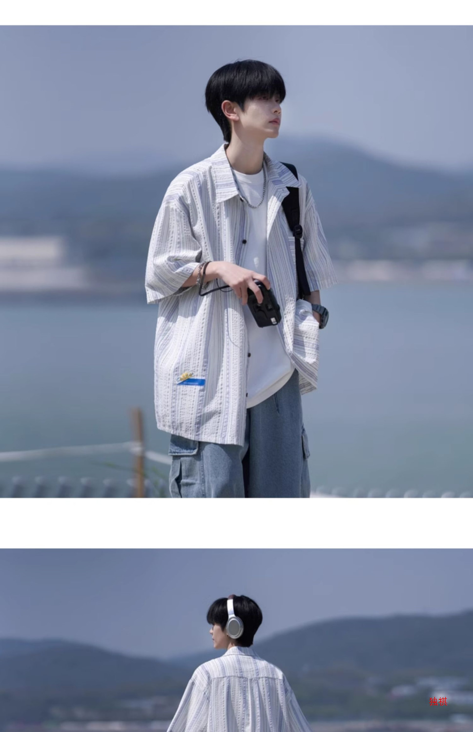 선샤인 클린 보이즈 스트라이프 셔츠 반팔 여름 2024 새로운 하이 엔드 아이스 실크 7부 소매 셔츠스토어 가기