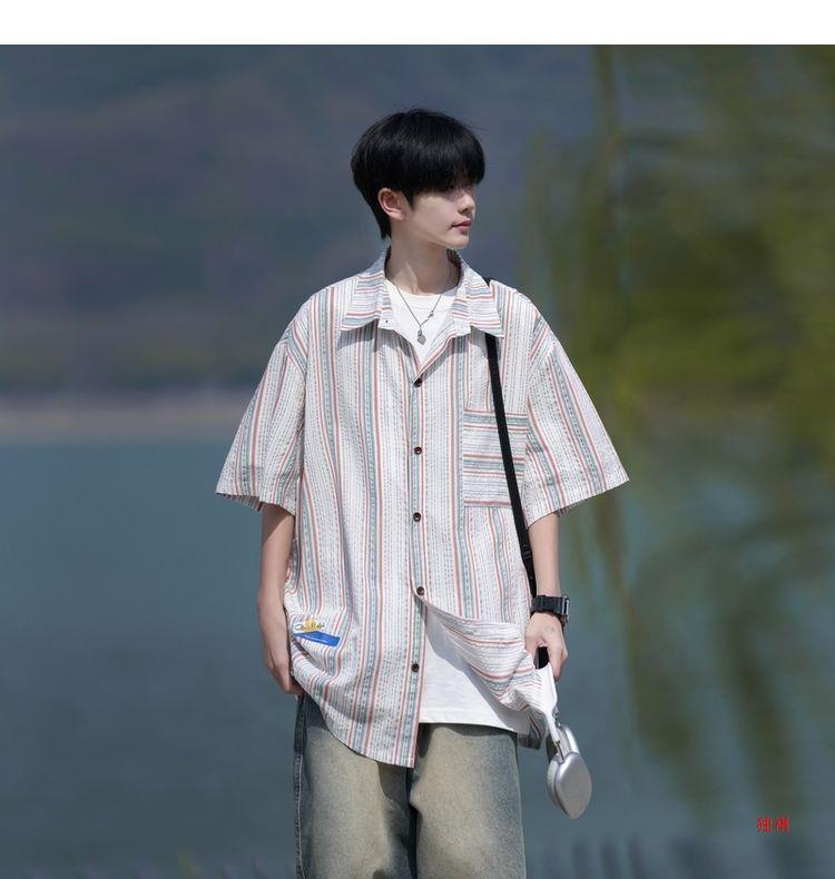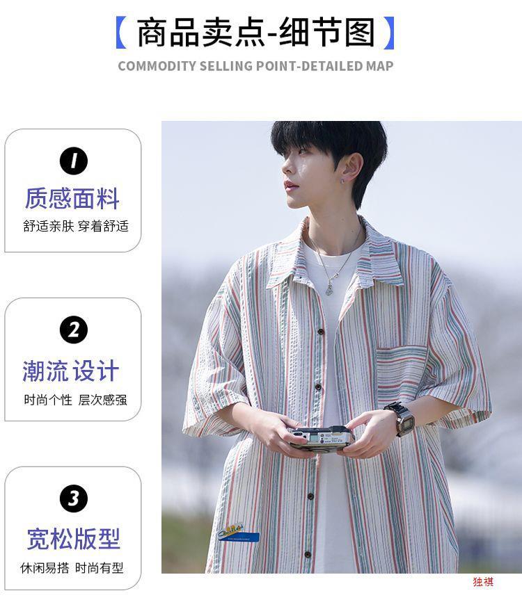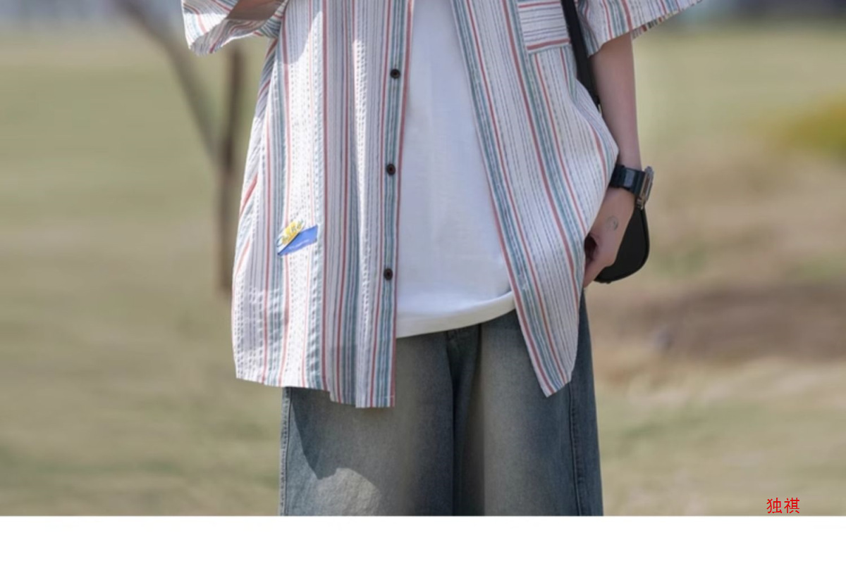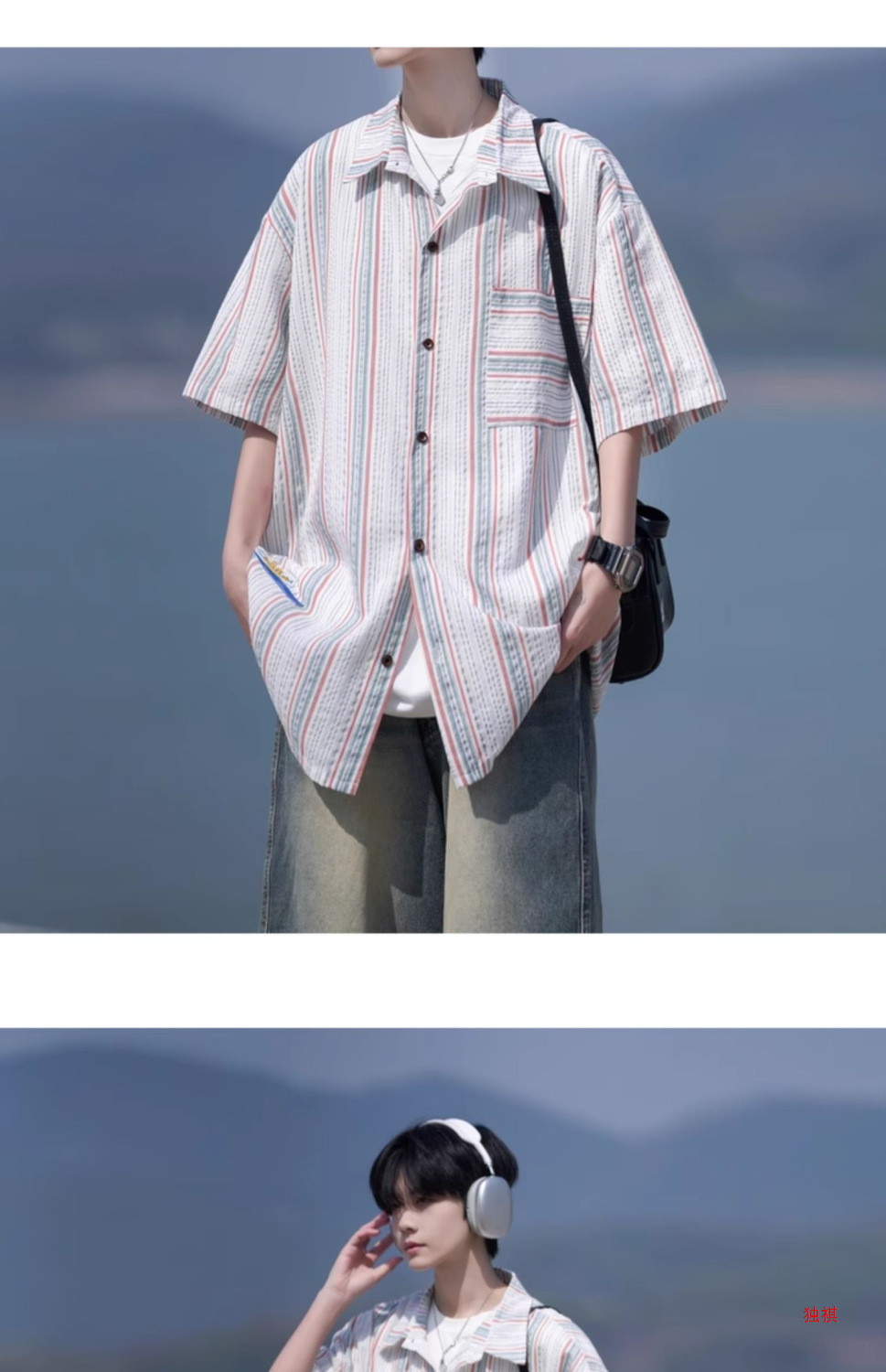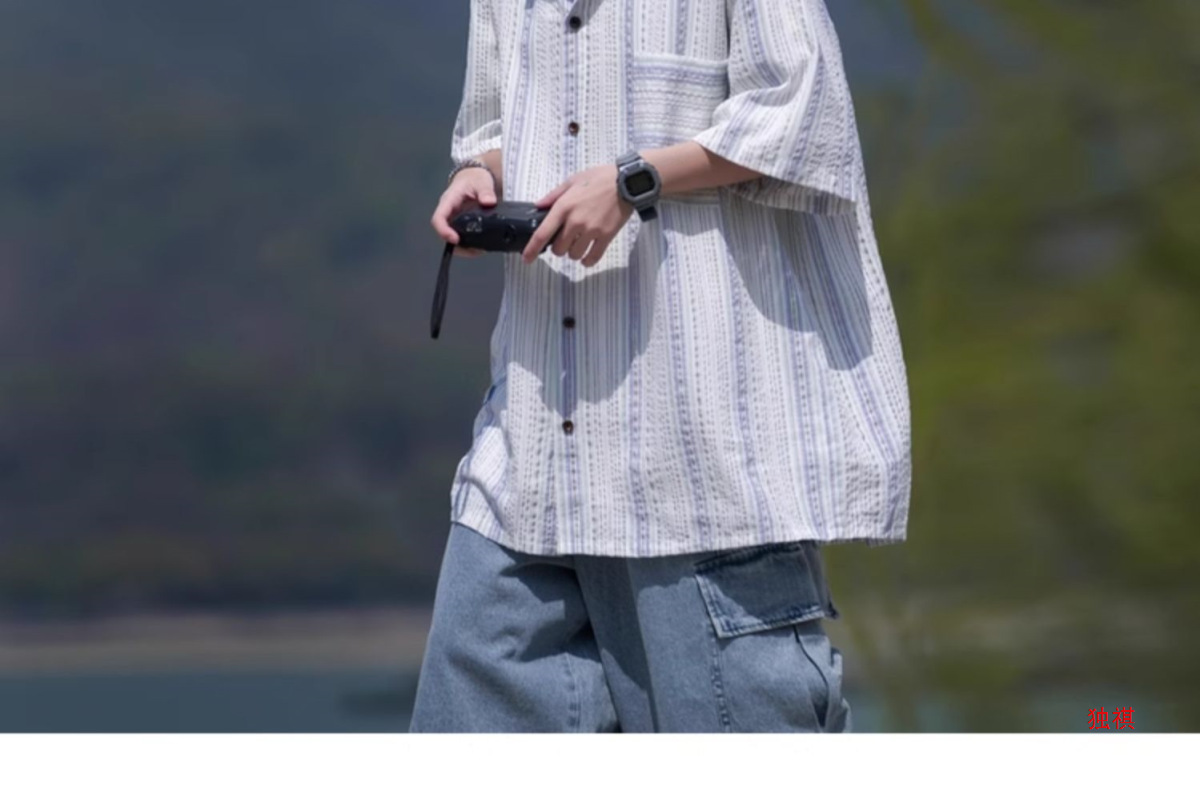 선샤인 클린 보이즈 스트라이프 셔츠 반팔 여름 2024 새로운 하이 엔드 아이스 실크 7부 소매 셔츠스토어 가기