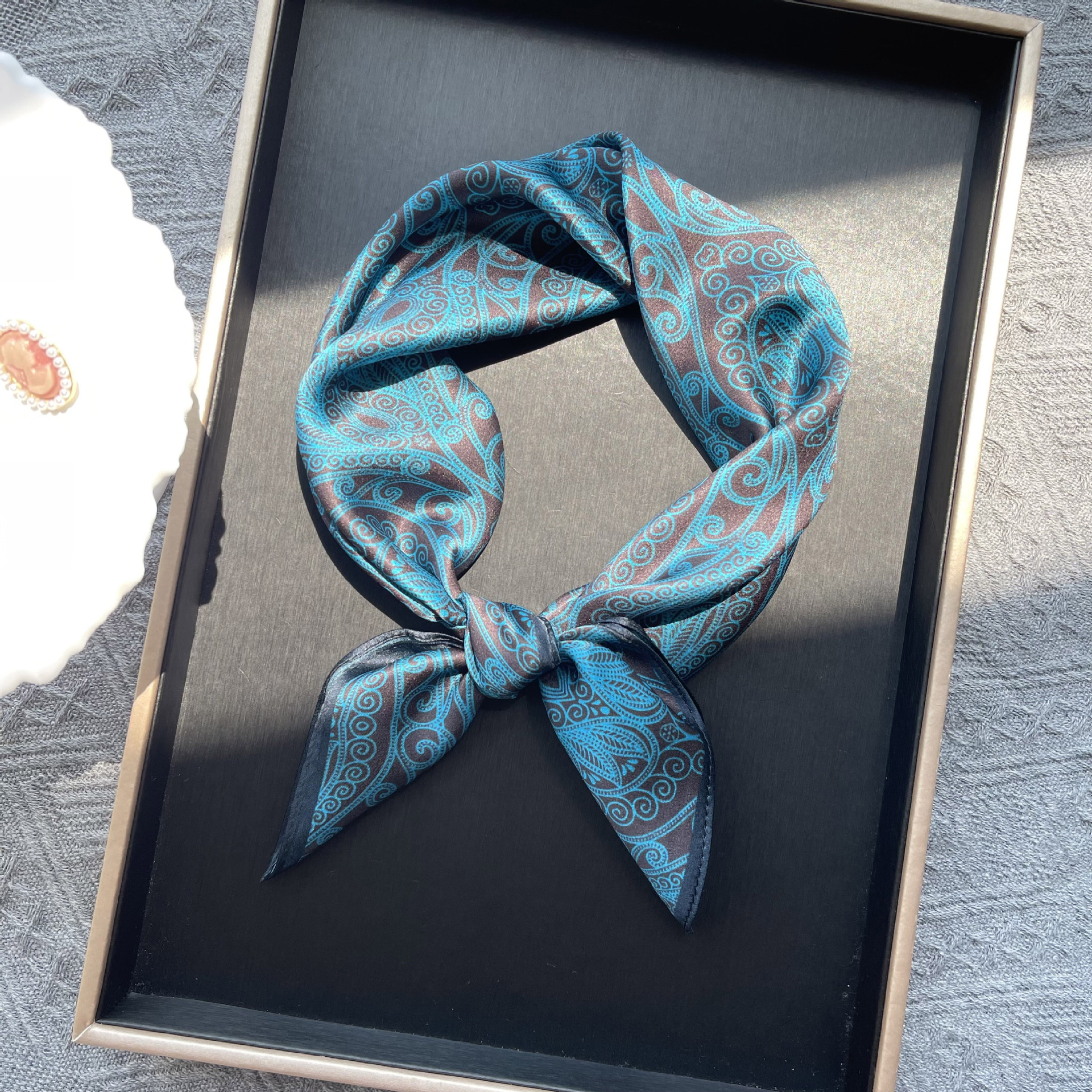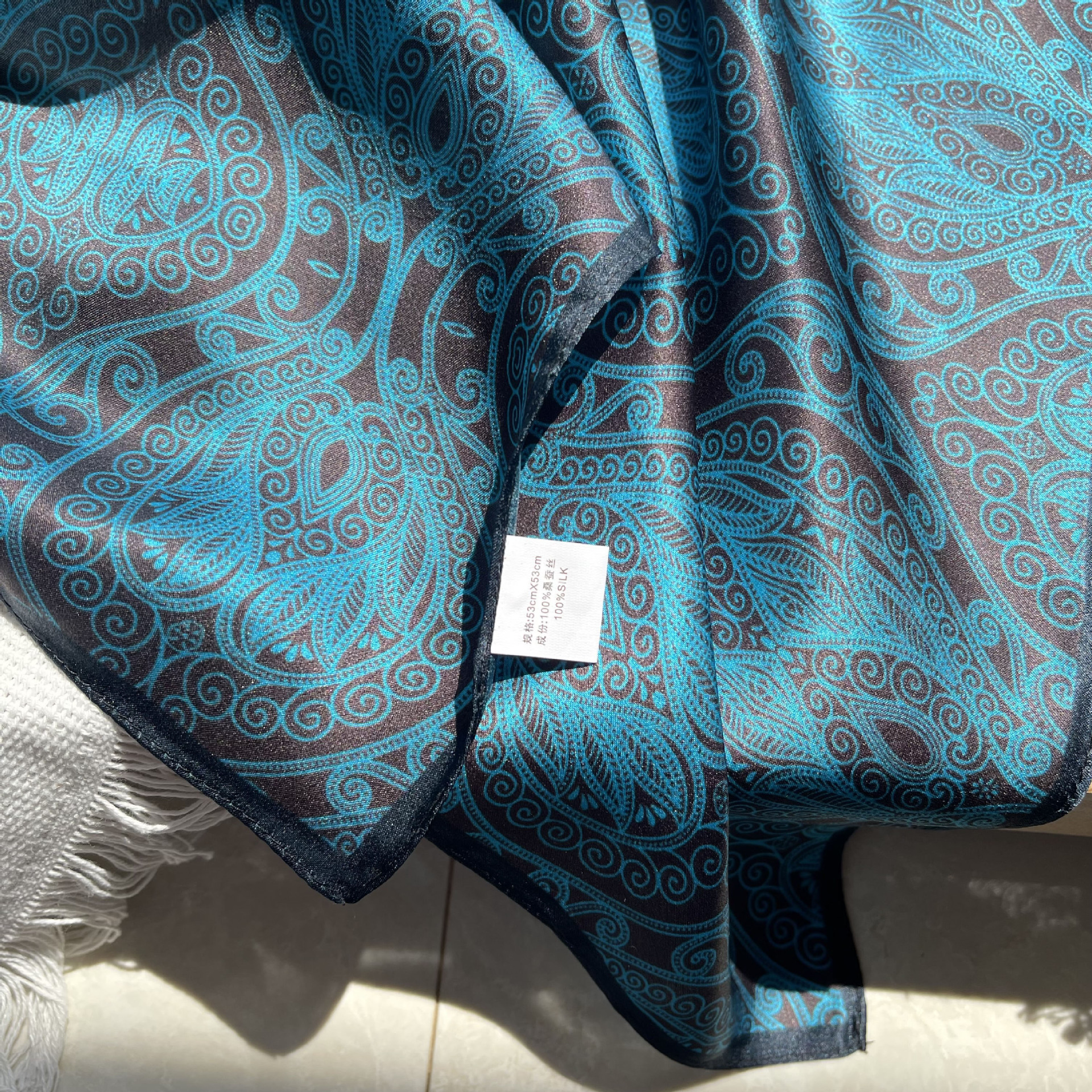 고급 사파이어 인쇄 실크 스카프 여성 고급 53 작은 광장 스카프 여름 선 스크린 스카프 패션 테이프