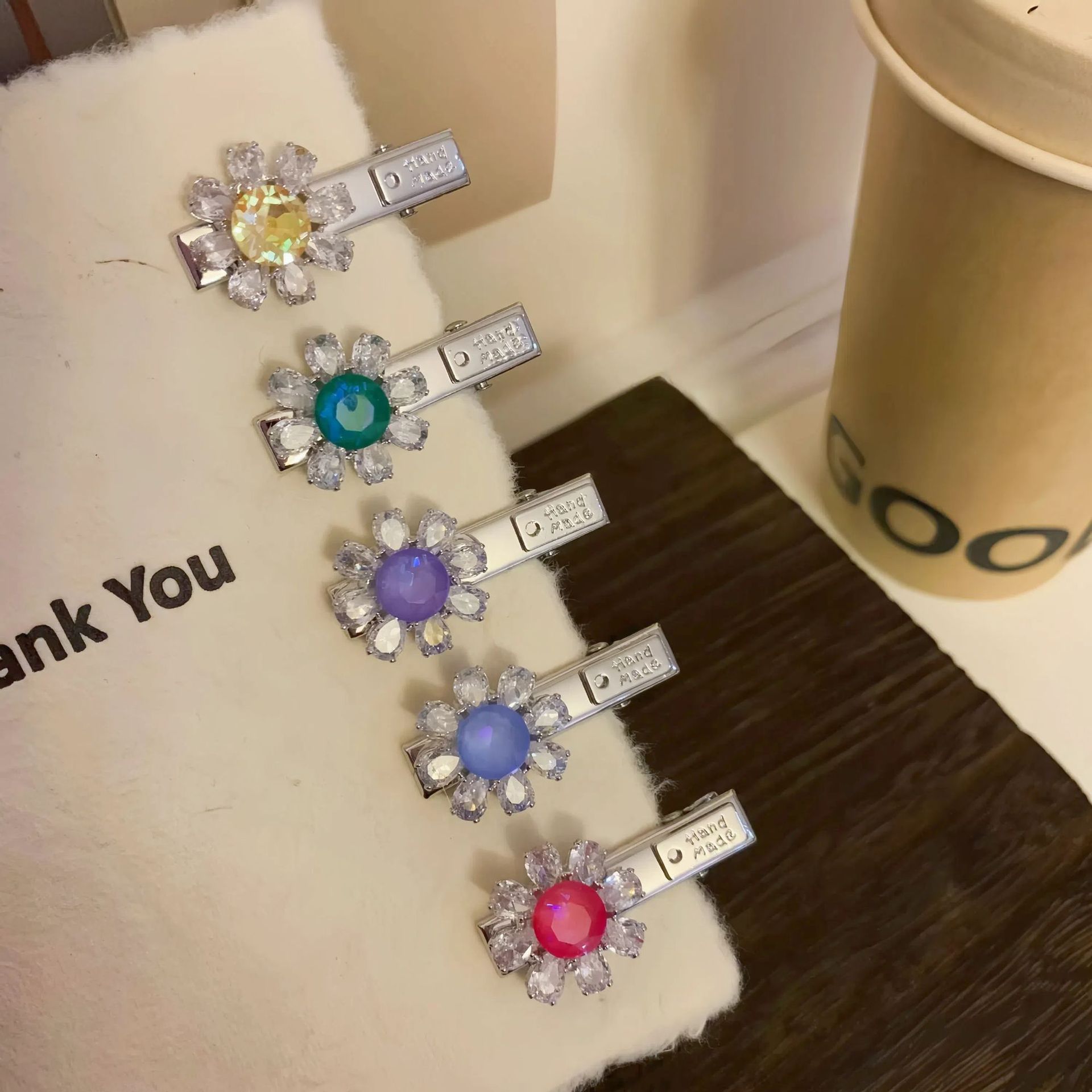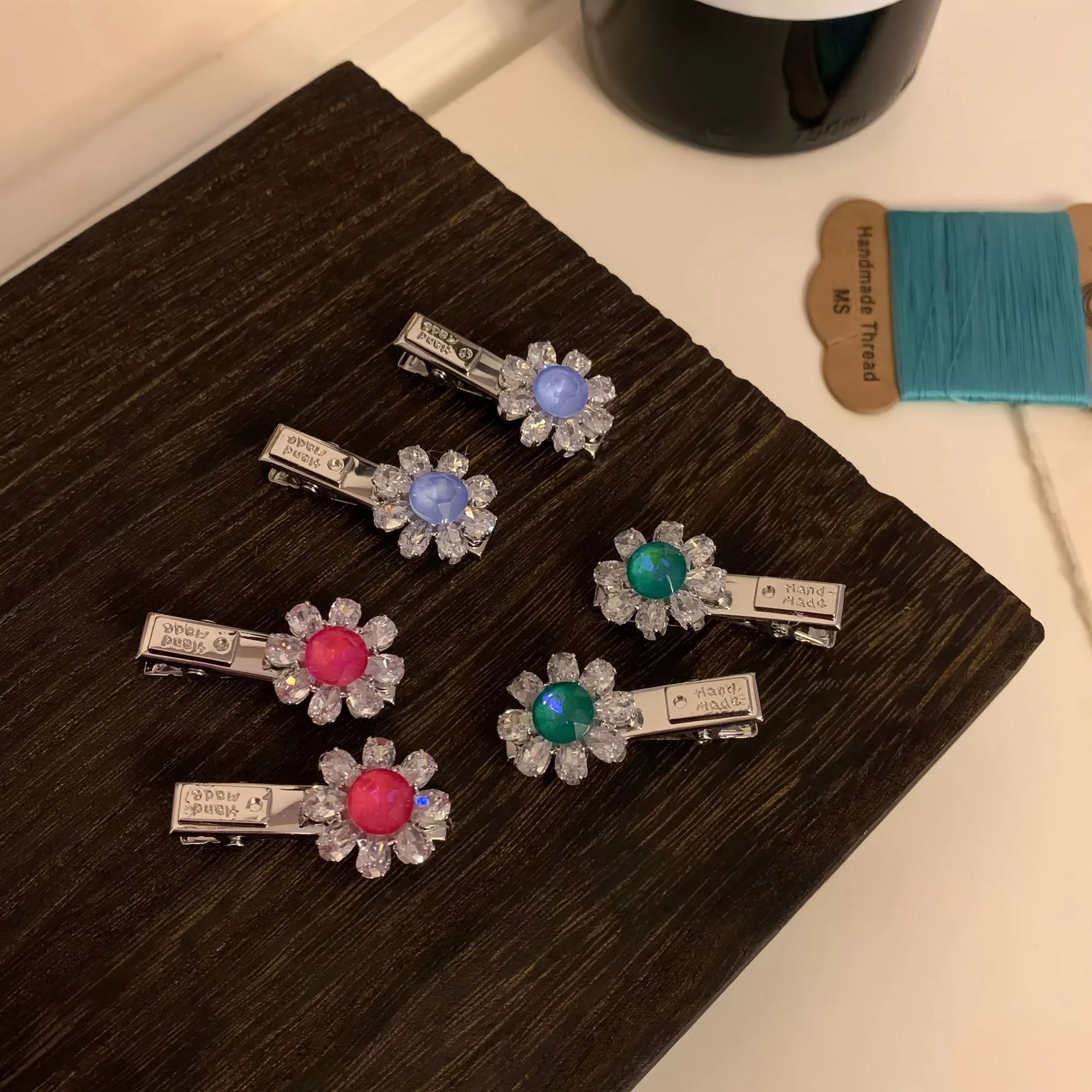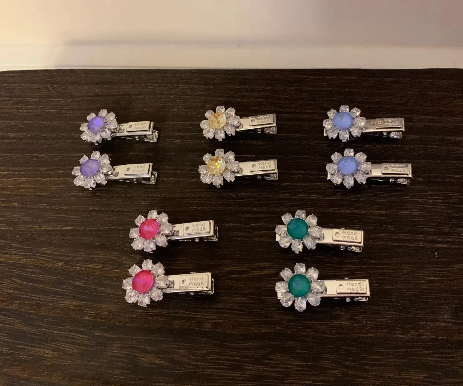 한국 동대문 새 해바라기 라인스톤 수제 헤어 클립 작고 절묘한 덕빌 클립 부러진 헤어 프린지 클립