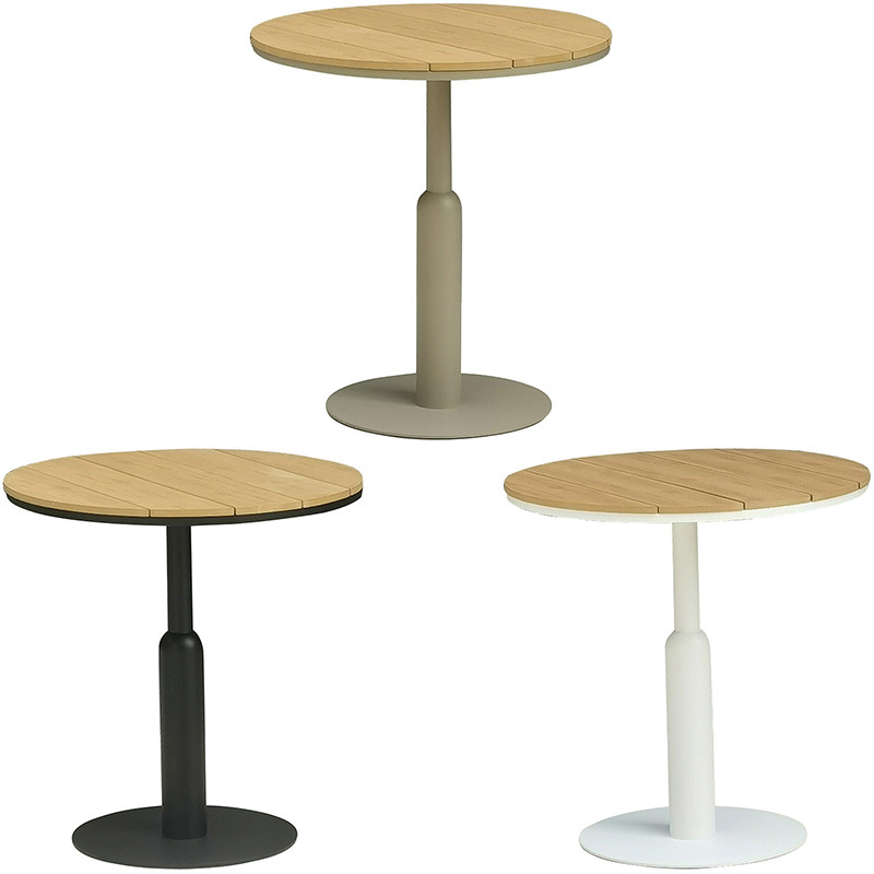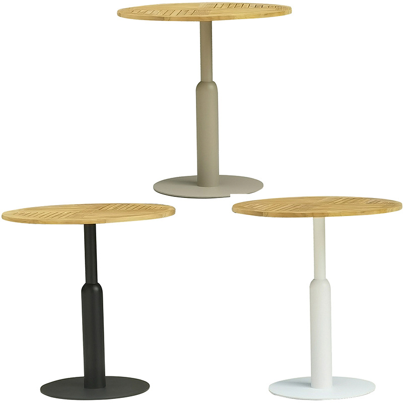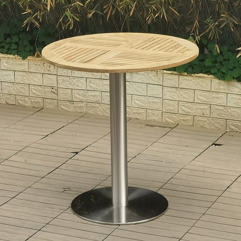 • 브러시드 스테인레스 스틸 l 둥근 바닥 센터 컬럼 70 티크 원형 테이블