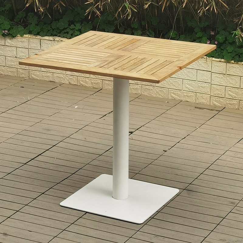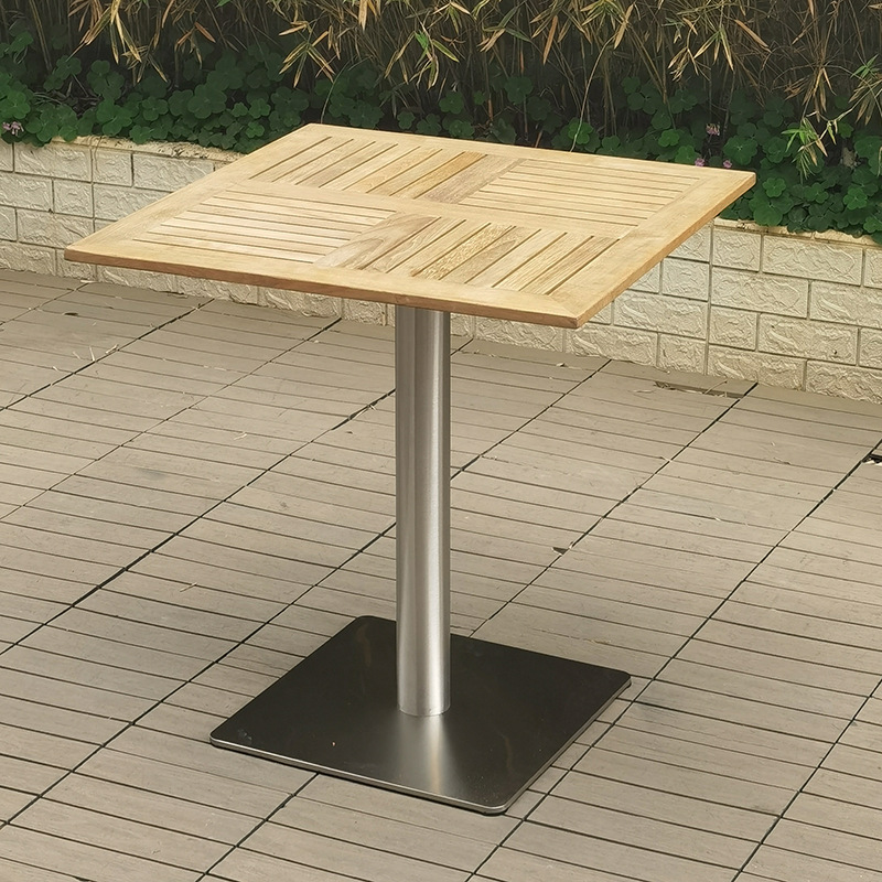• 브러시드 스테인레스 스틸 사각 바닥 센터 컬럼 70 티크 사각 테이블