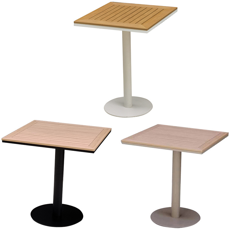야외 테이블 플라스틱-나무 철 테이블 티크 라운드 스퀘어 롱 블랙과 화이트 우드 그레인 컬러 커피 웨스턴 레스토랑 레저 테이블스토어 가기