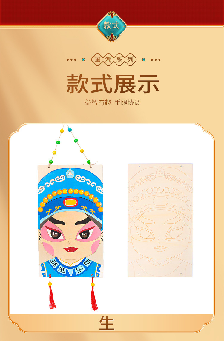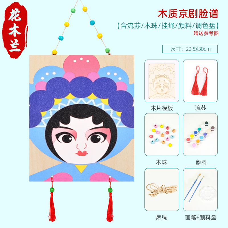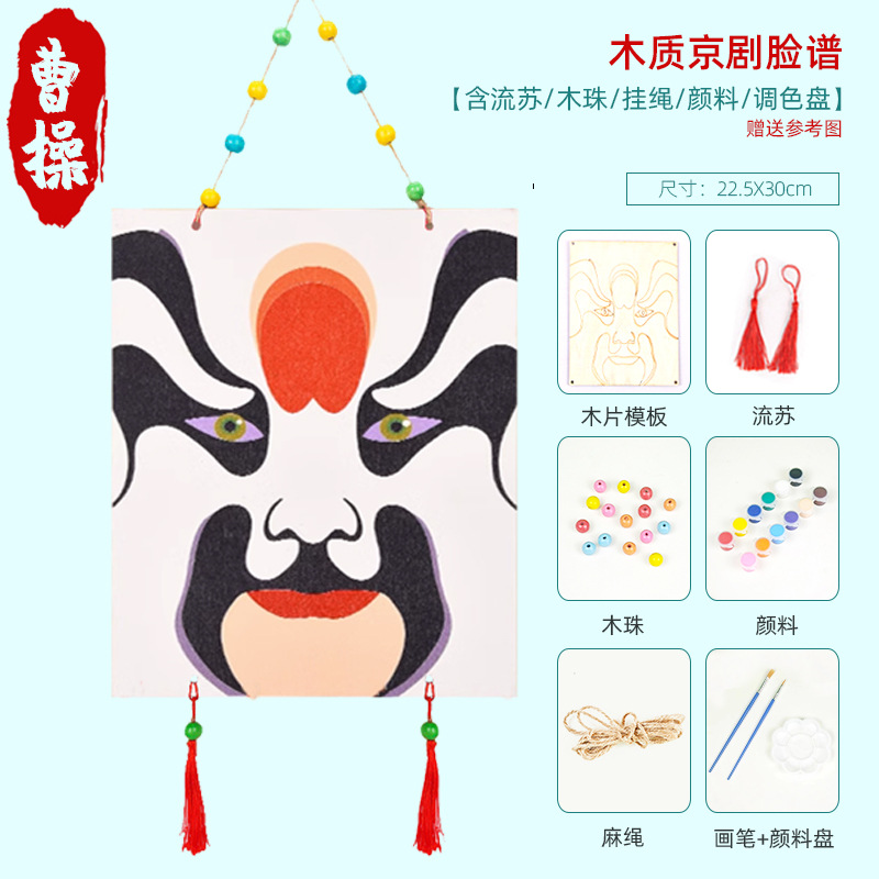 베이징 오페라 마스크 DIY 손으로 그린 그림 나무 제품 교수형 장식품 유치원 교실 중국 스타일 크리에이티브