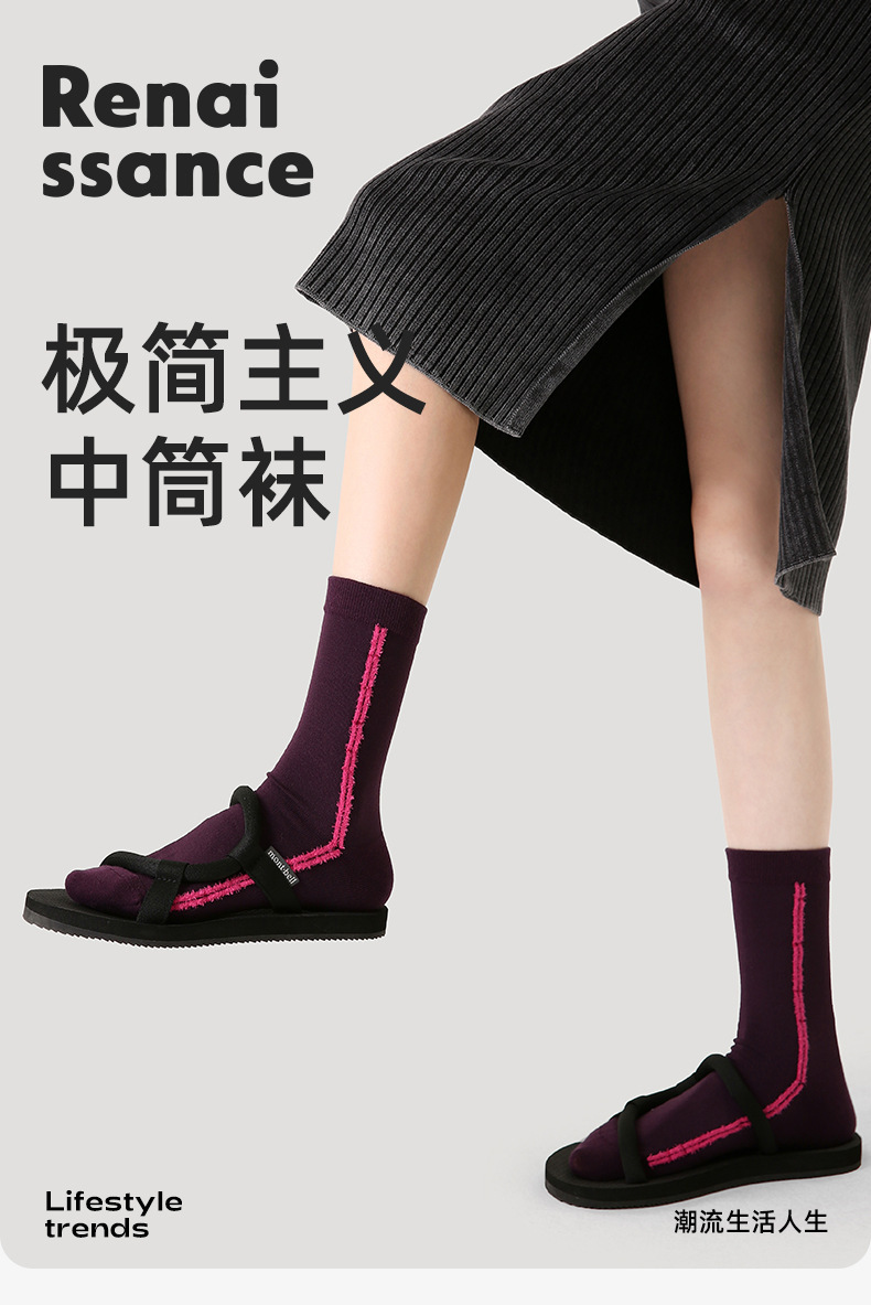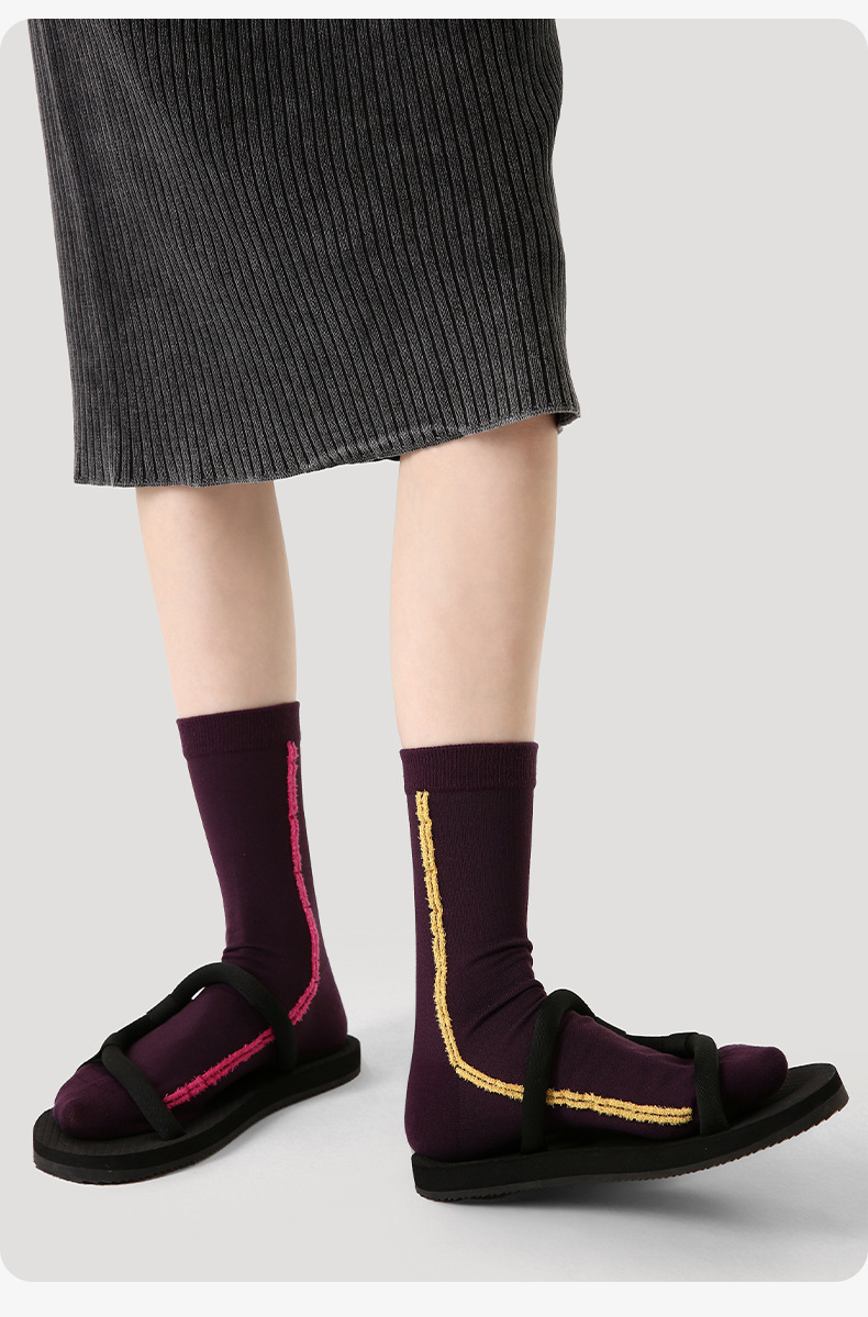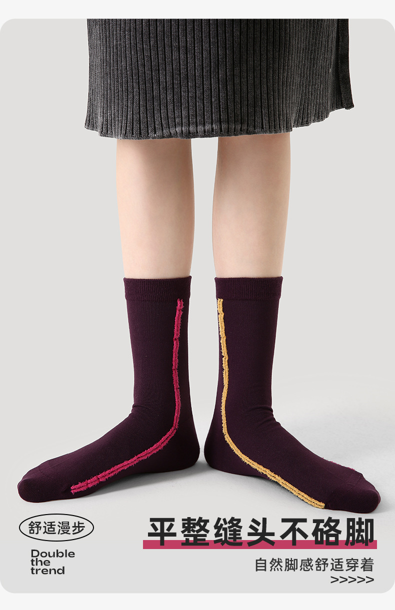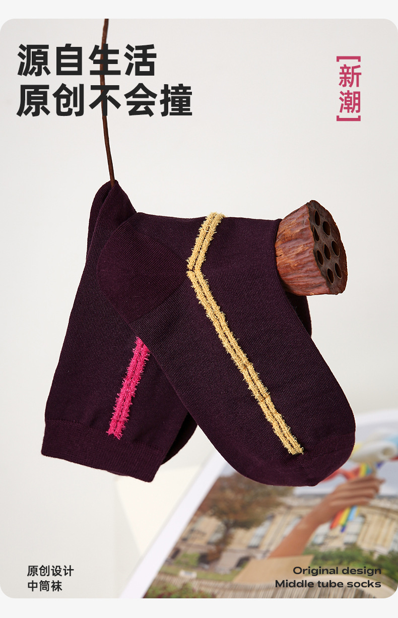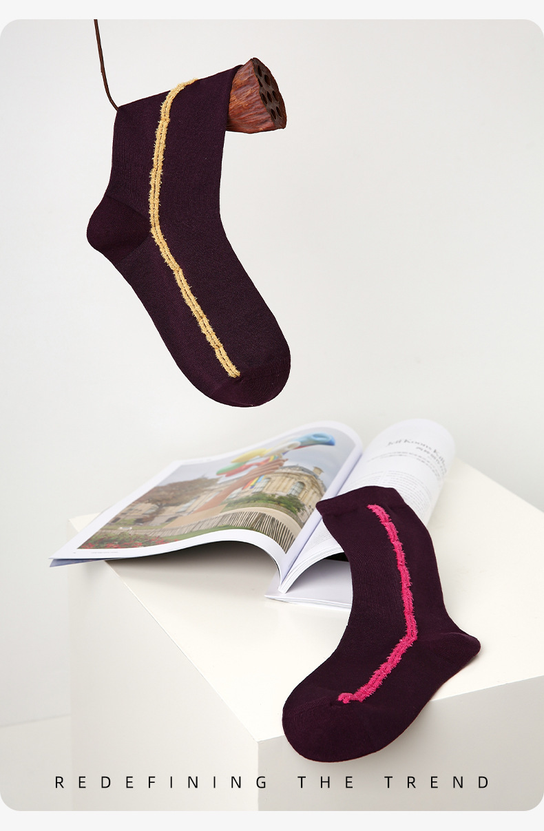 르네상스 봄과 가을 대비 검은 색과 붉은 양말 여성 수직 줄무늬 다재다능한 코튼 그린 통기성 중형 스타킹스토어 가기