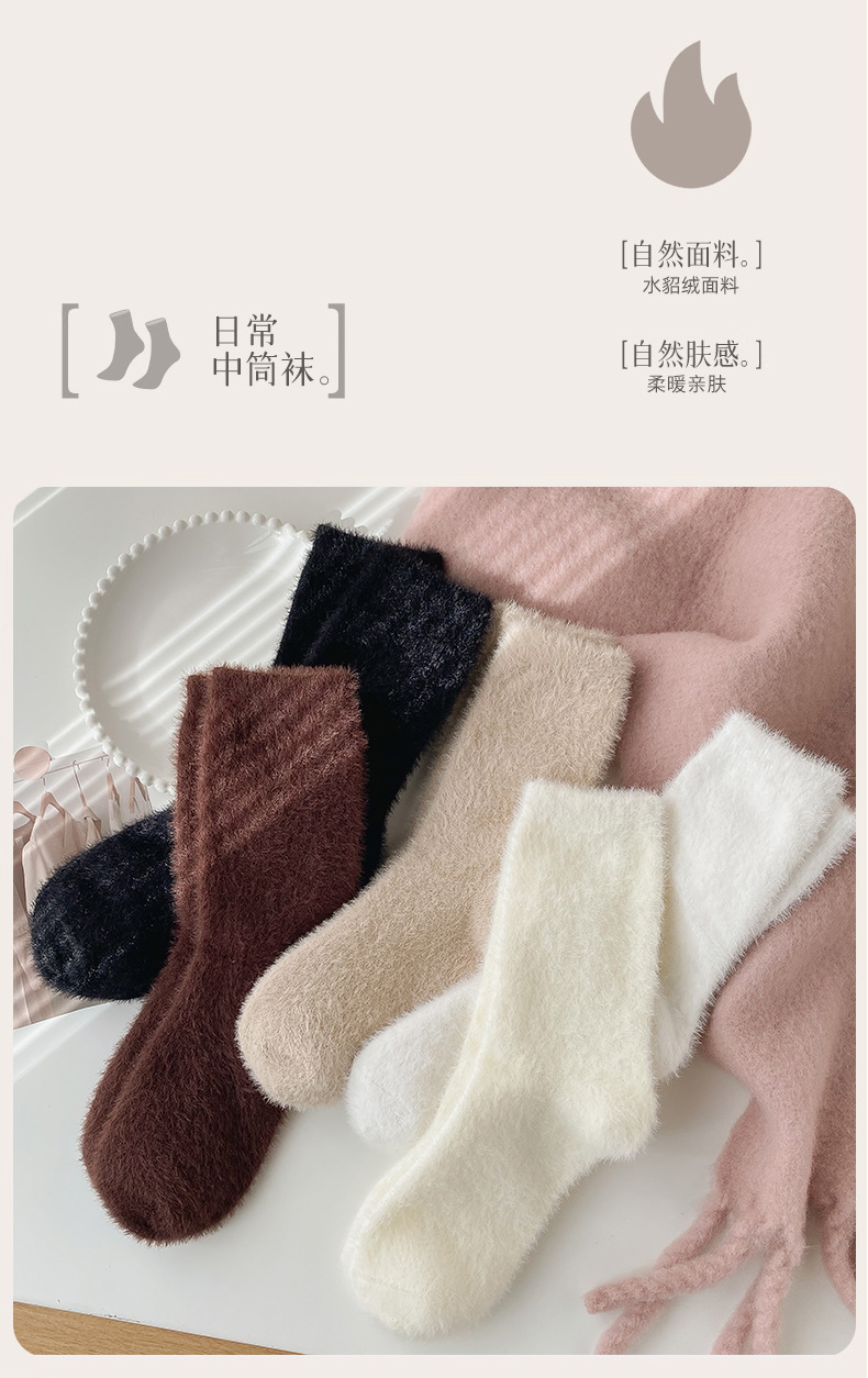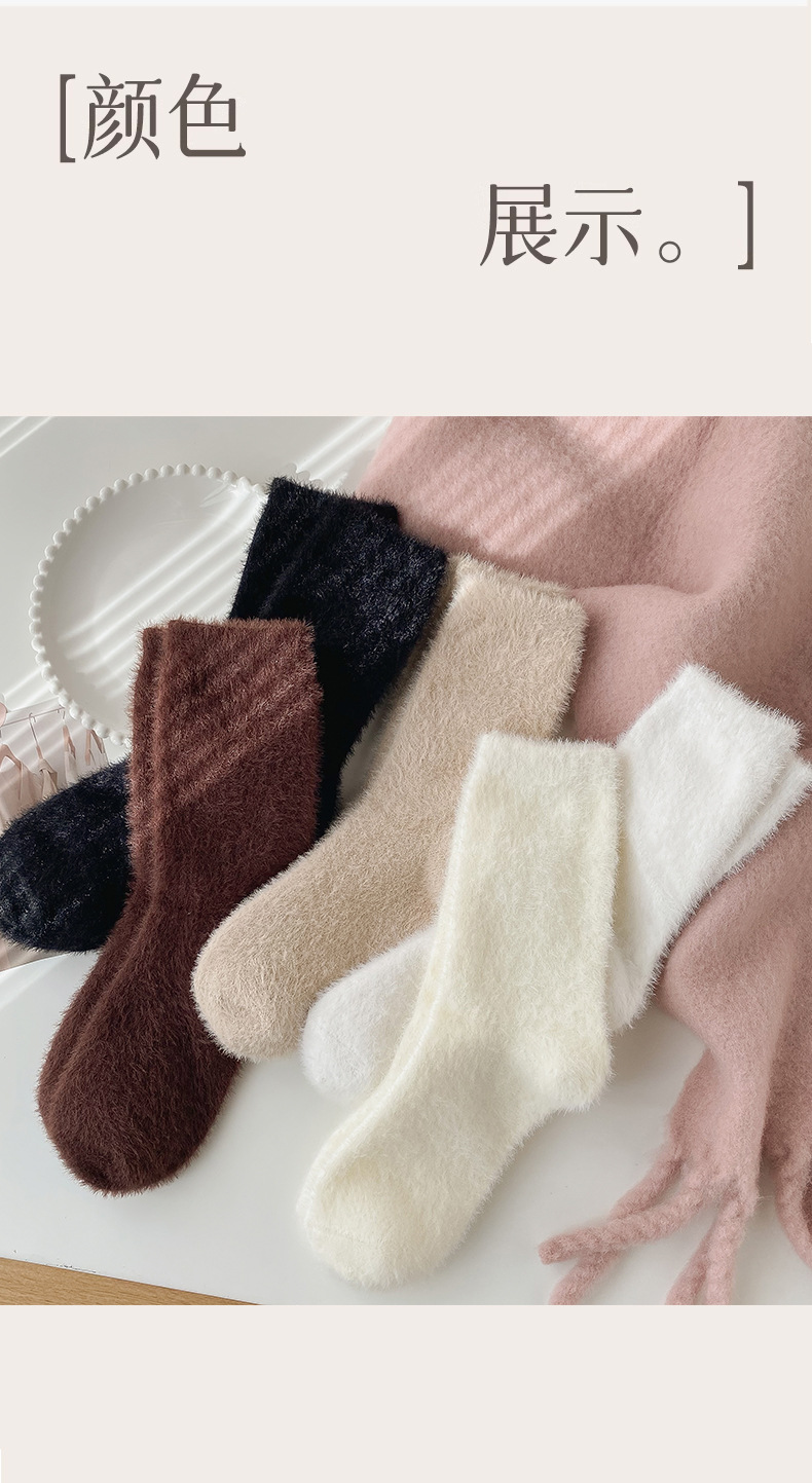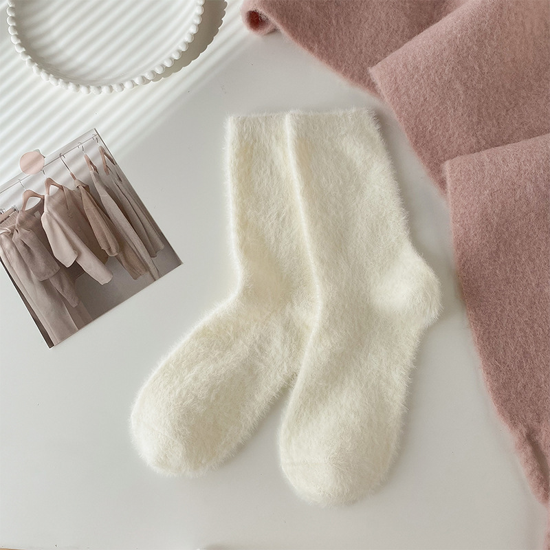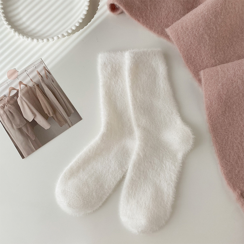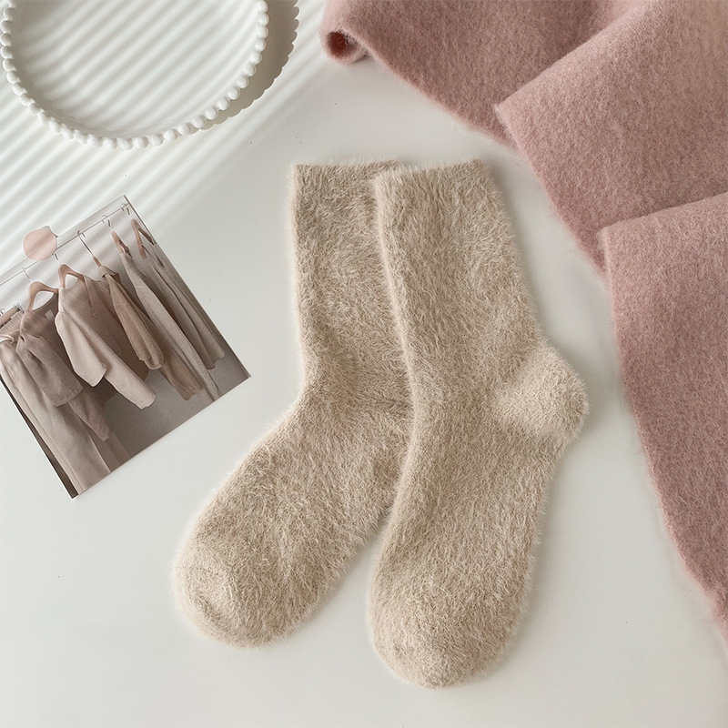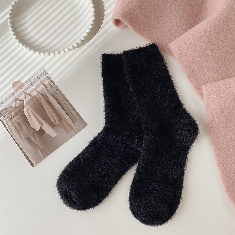 양말 여성의 가을과 겨울 기모 두꺼운 미드 튜브 양말 솔리드 컬러 밍크 벨벳 따뜻한 귀여운 Ins 유행 홈 플로어 양말스토어 가기