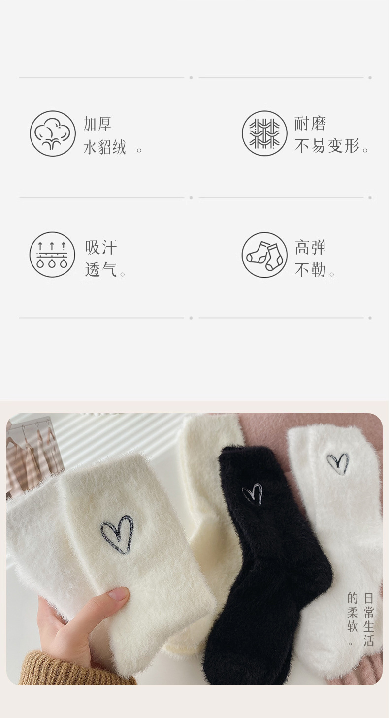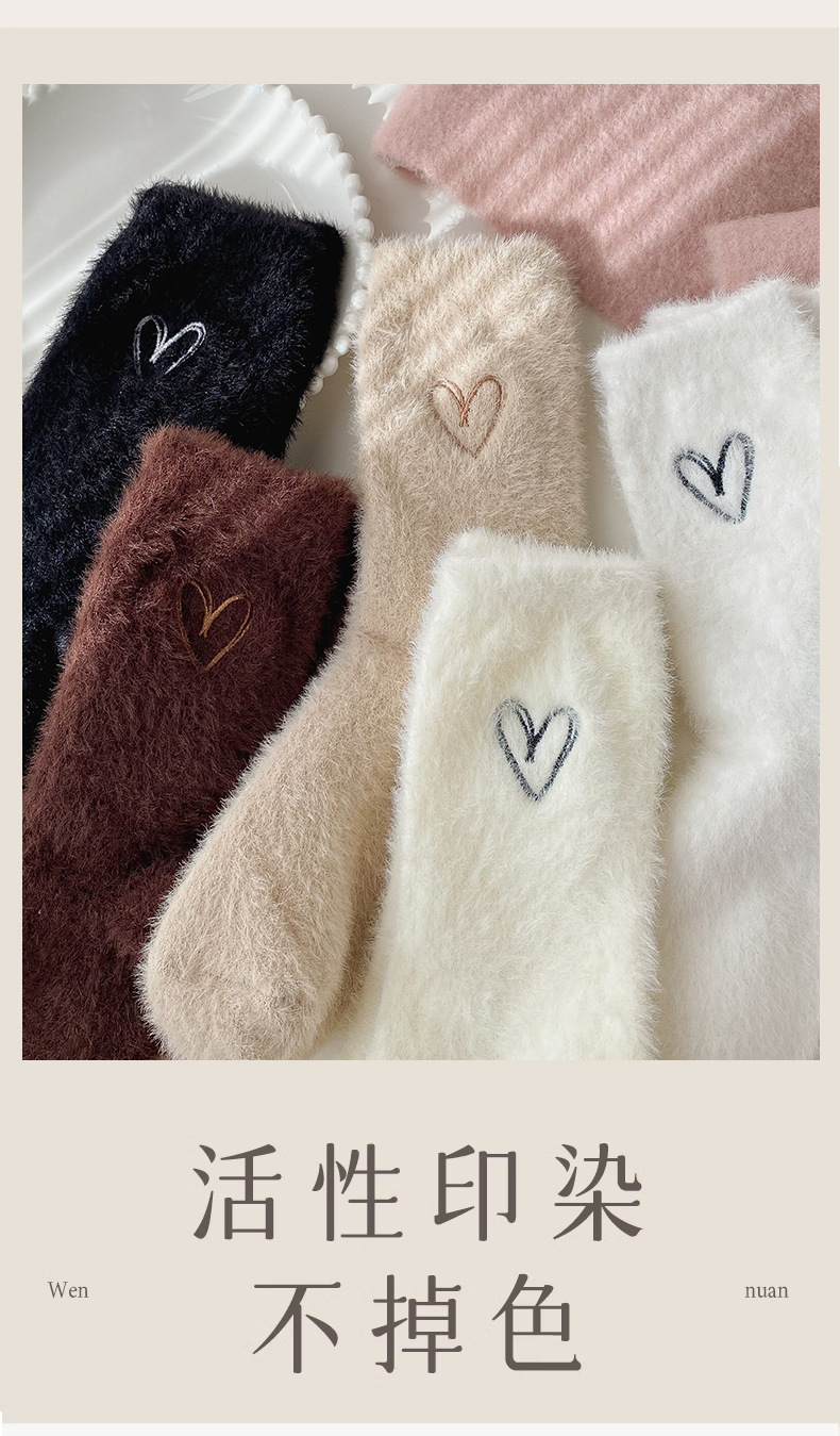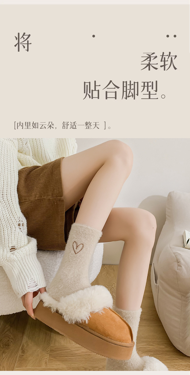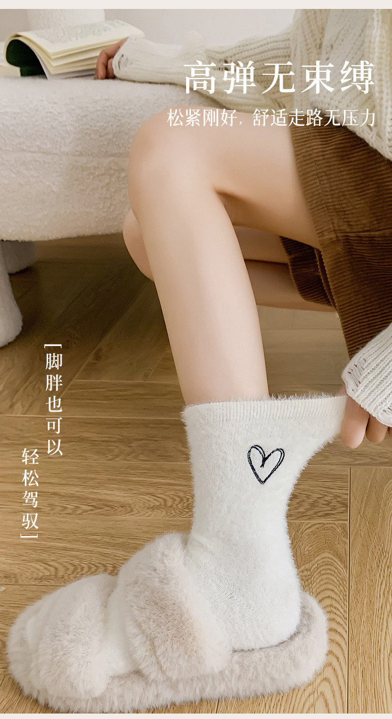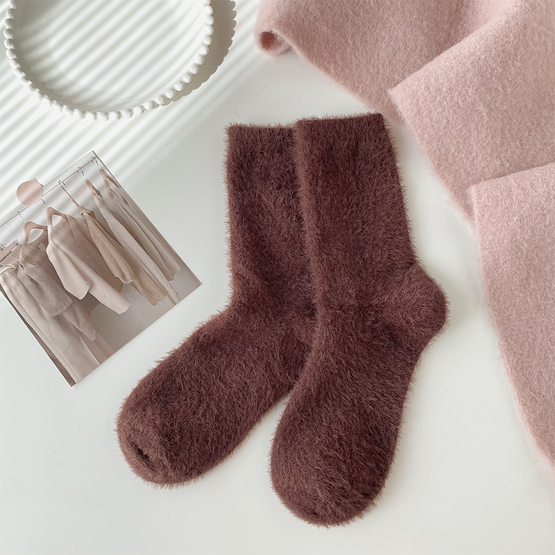 양말 여성의 가을과 겨울 기모 두꺼운 미드 튜브 양말 솔리드 컬러 밍크 벨벳 따뜻한 귀여운 Ins 유행 홈 플로어 양말스토어 가기