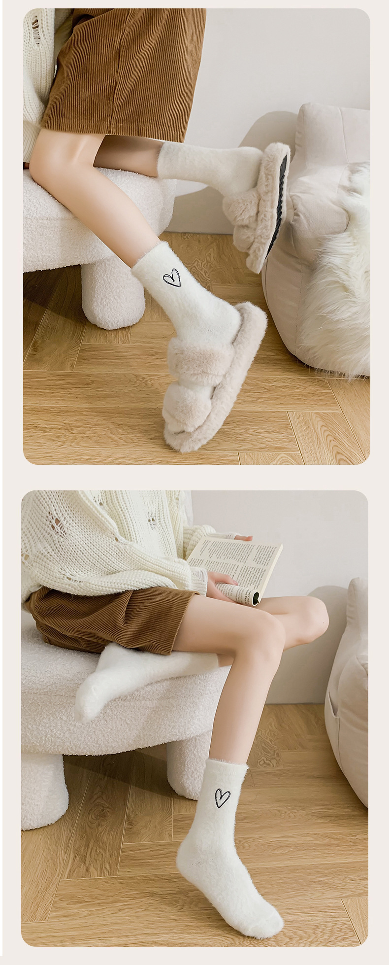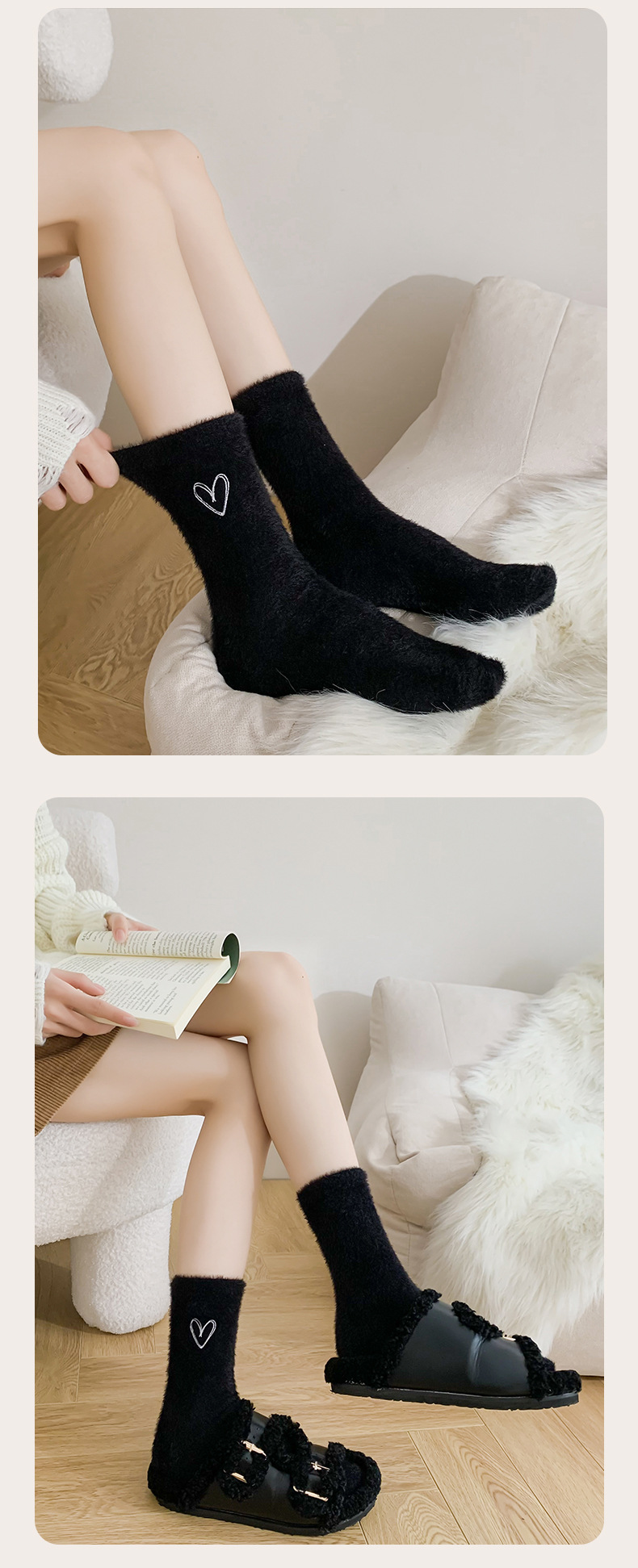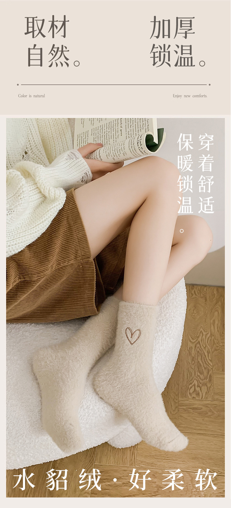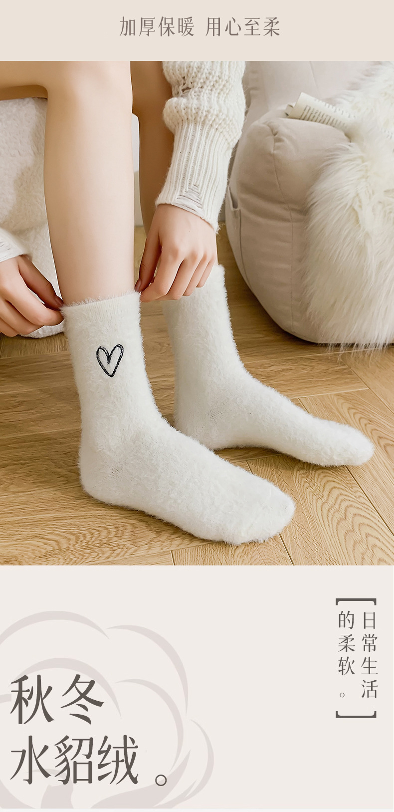 양말 여성의 가을과 겨울 기모 두꺼운 미드 튜브 양말 솔리드 컬러 밍크 벨벳 따뜻한 귀여운 Ins 유행 홈 플로어 양말스토어 가기
