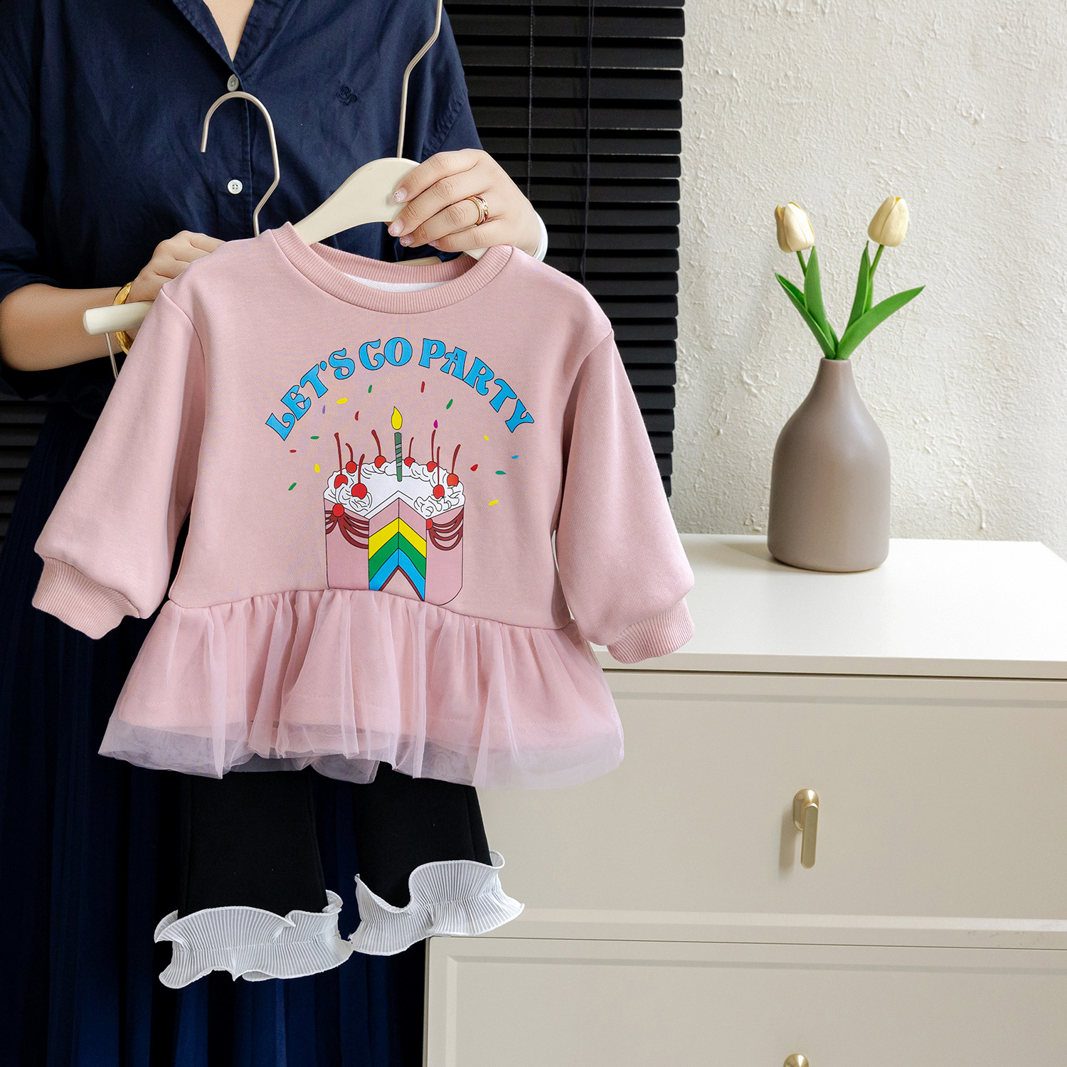 어린이 가을 새로운 아기 어린이 스웨터 한국 스타일 2024 가을 만화 긴 소매 풀오버 아기 소녀 의상