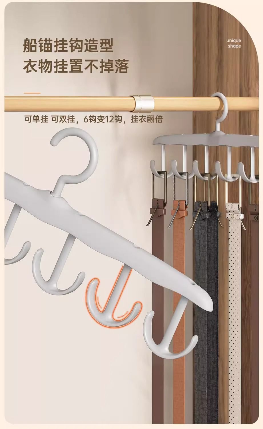 플라스틱 두꺼운 멀티 후크 옷걸이, 회전식 넥타이 걸이, 다기능 코트 걸이, 속옷 및 조끼 보관함스토어 가기