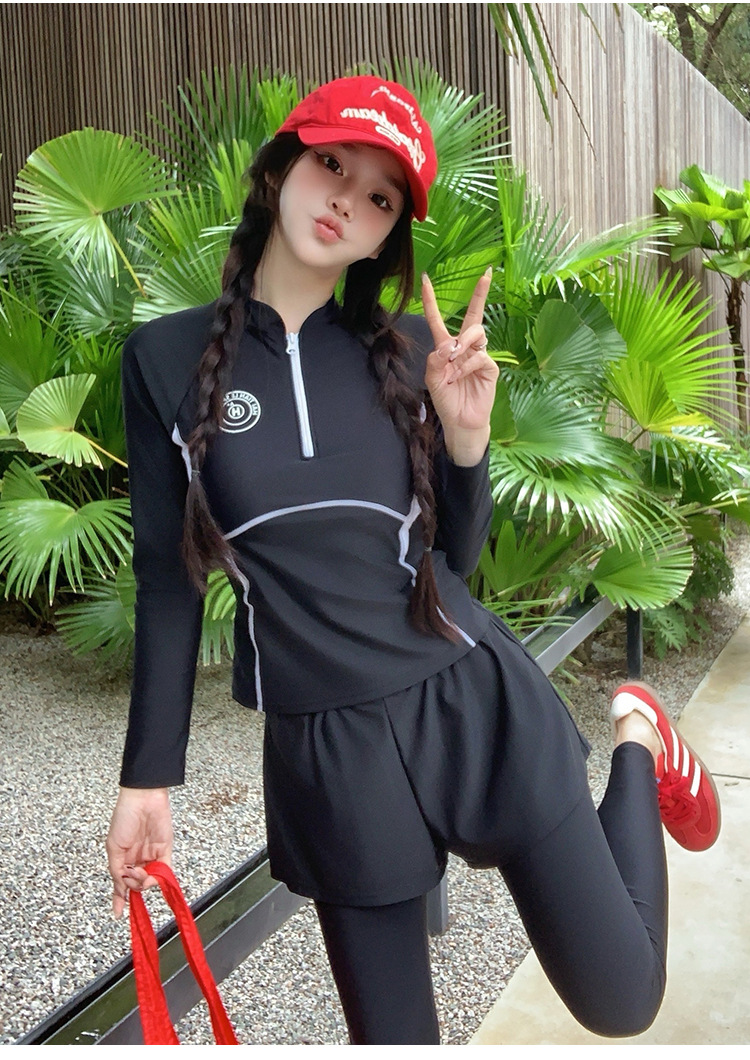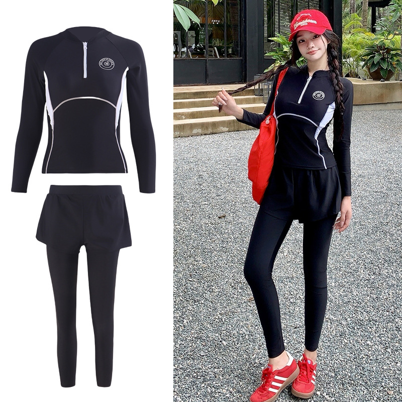 여성용 잠수복, 긴팔 긴바지, 자외선 차단, 스노클링 해파리복, 배를 덮는 보수적인 슬리밍 온천 해변 수영복스토어 가기