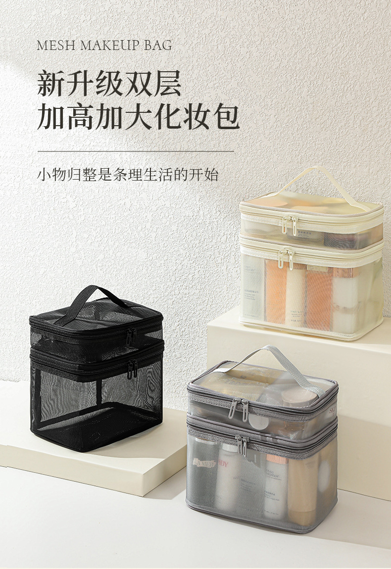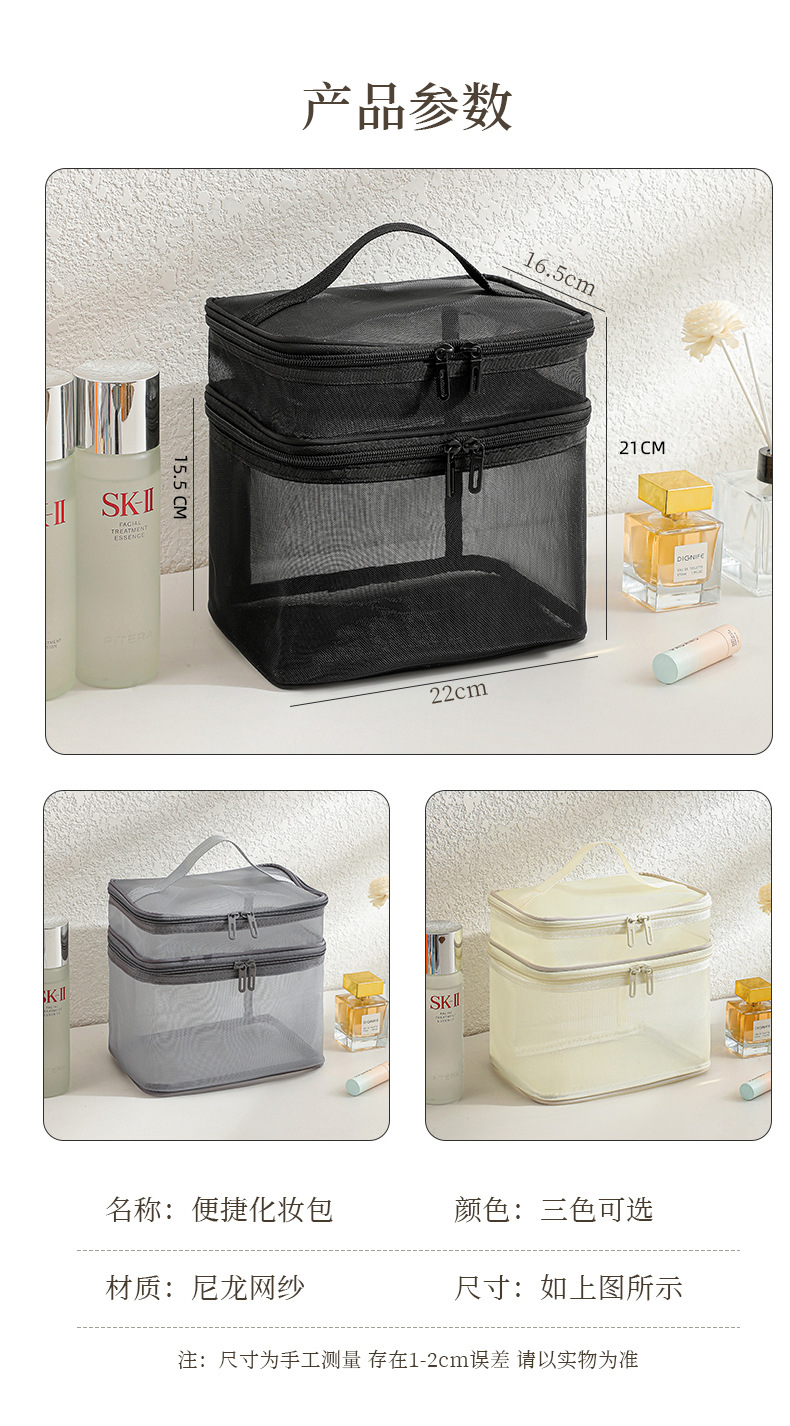 국경 간 새로운 메쉬 화장품 가방 여행 화장품 보관 가방 대용량 더블 레이어 메쉬 세면 용품 가방 도매스토어 가기