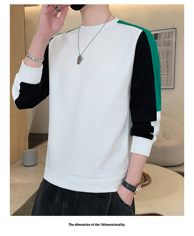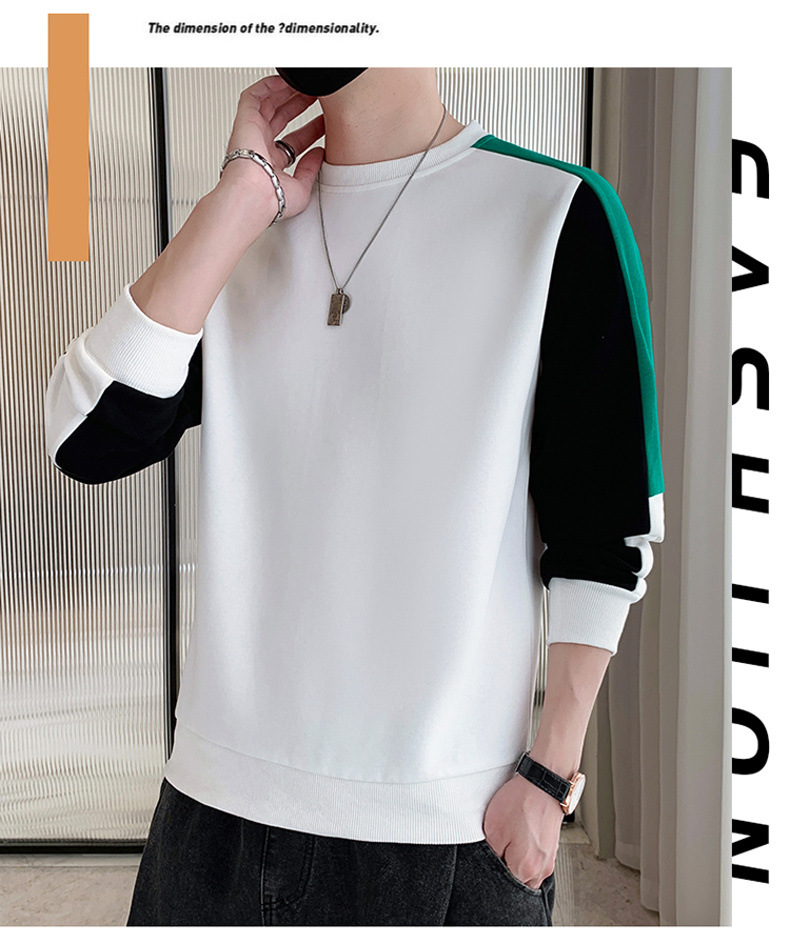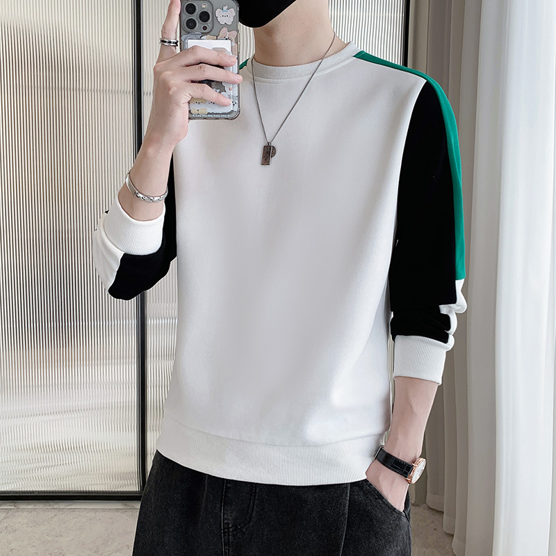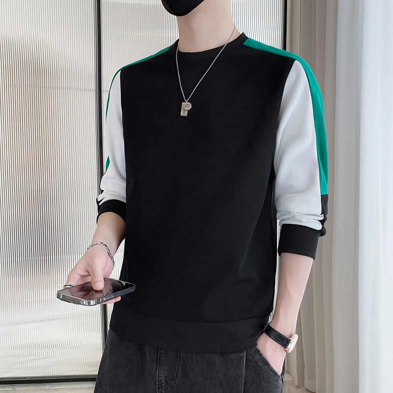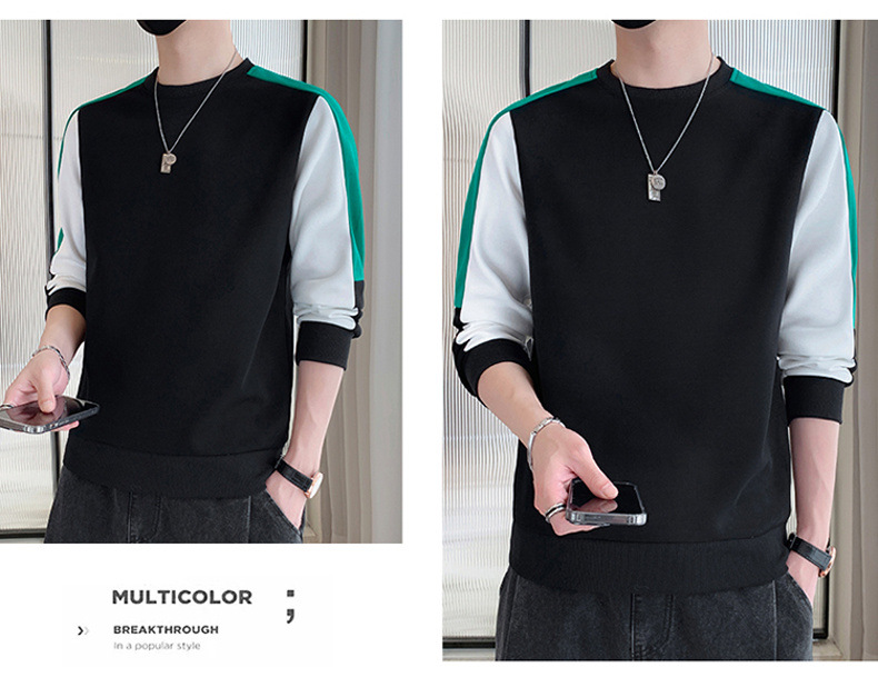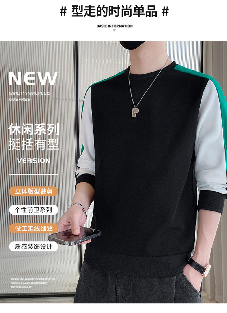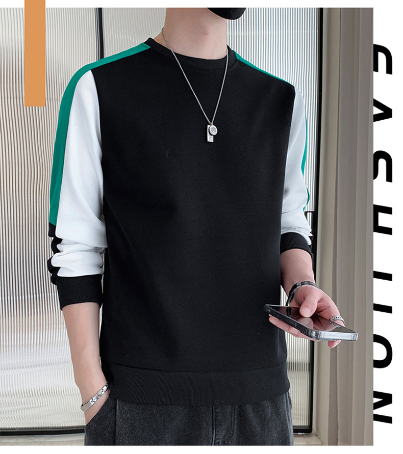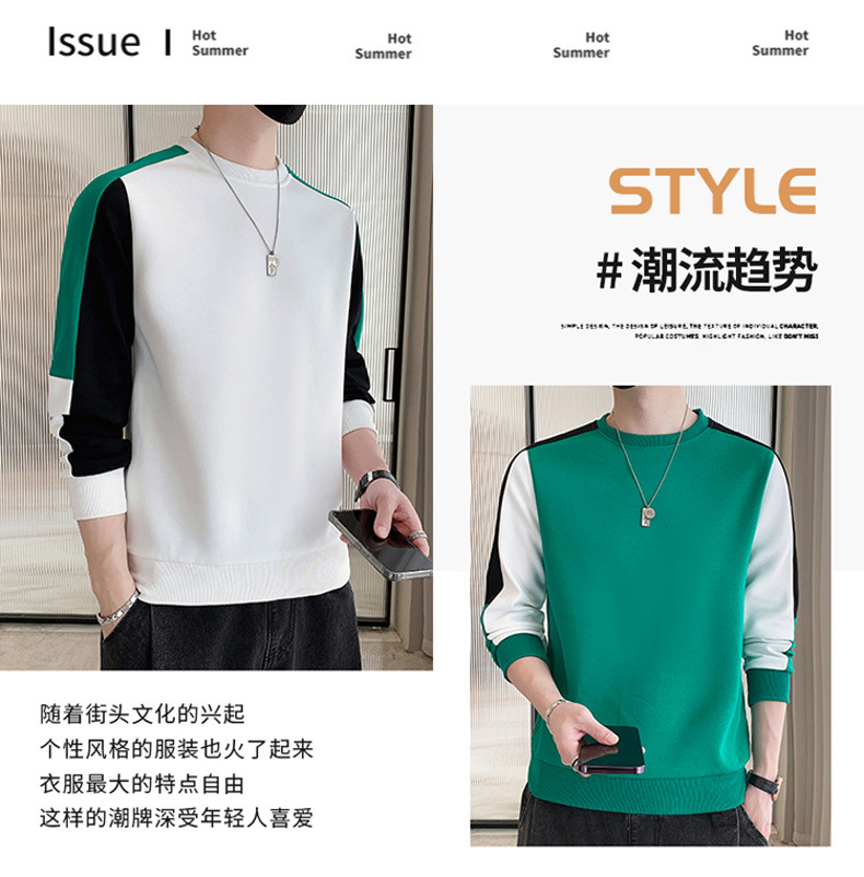 스웨트셔츠 남성용 봄과 가을 라운드 넥 트렌디 브랜드 남성용 콘트라스트 컬러 스티칭 의류 루즈베이스 의류 남성용 긴 소매 티셔츠