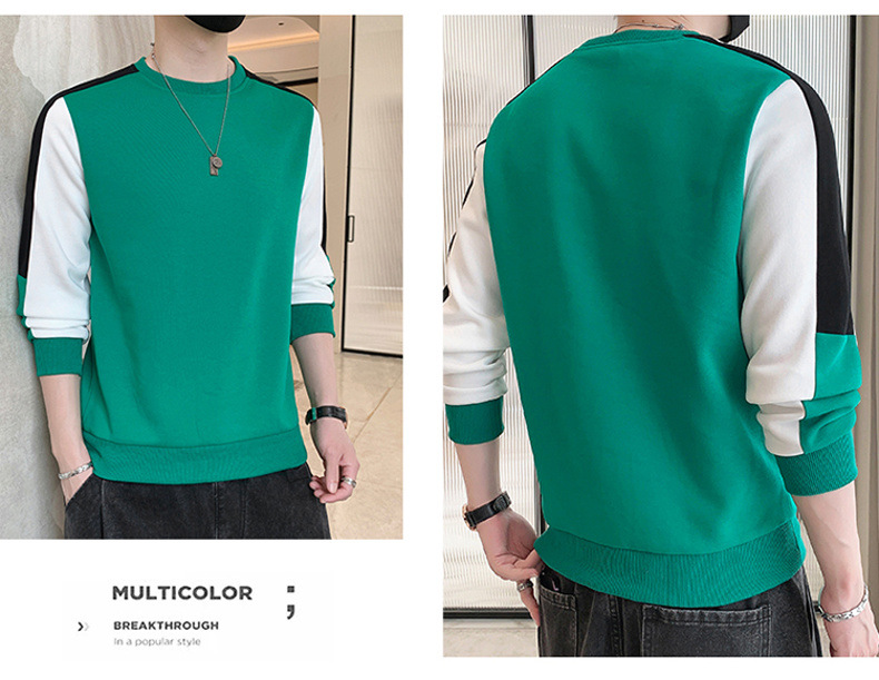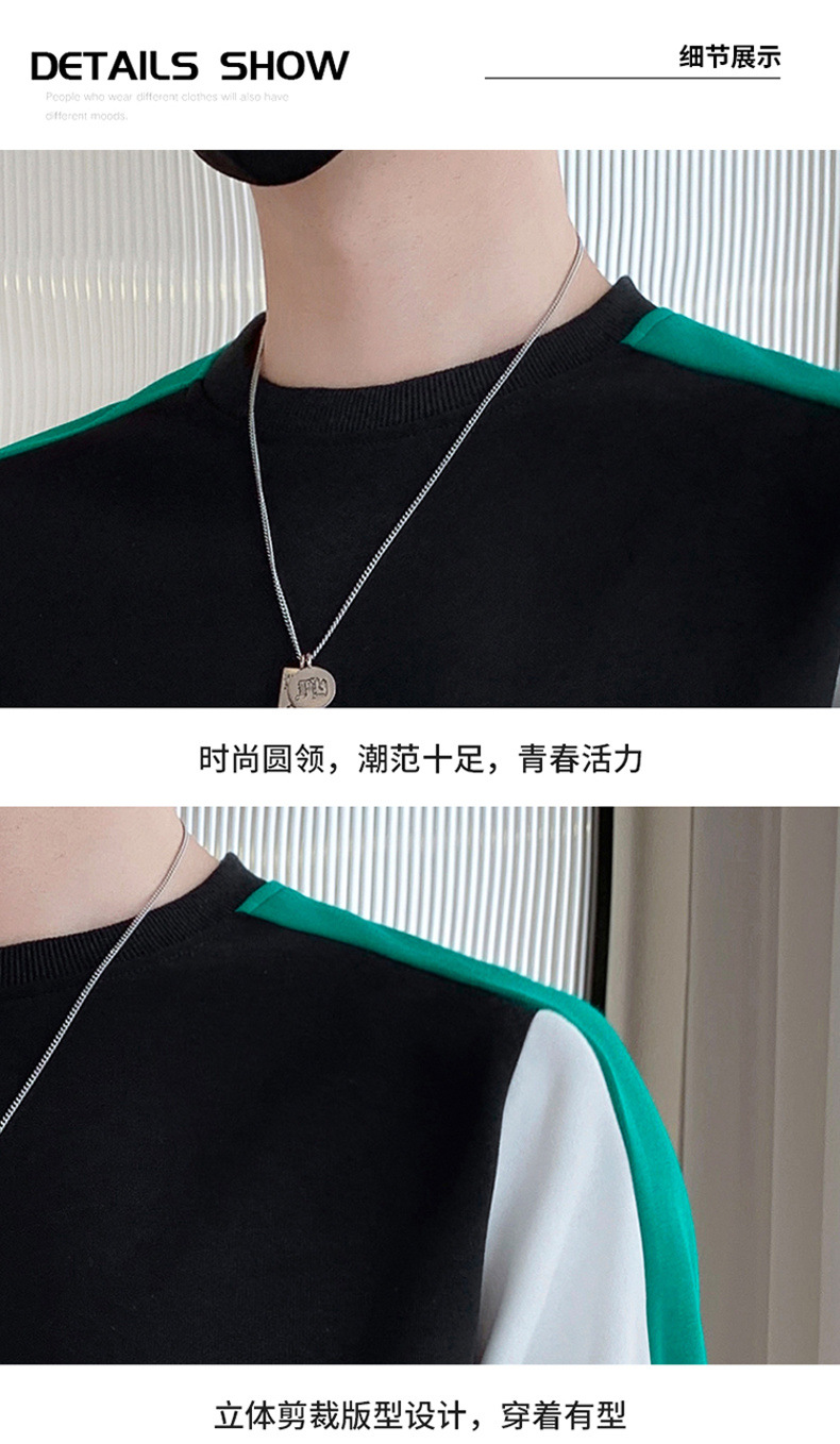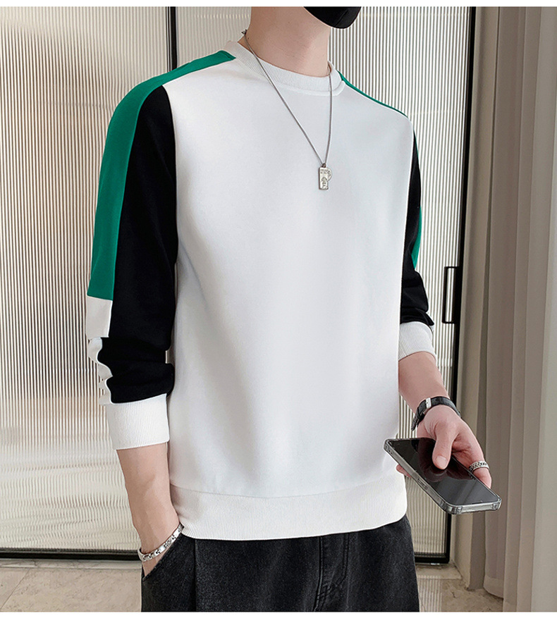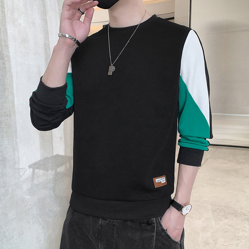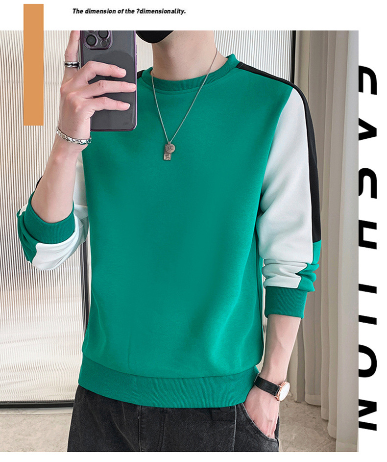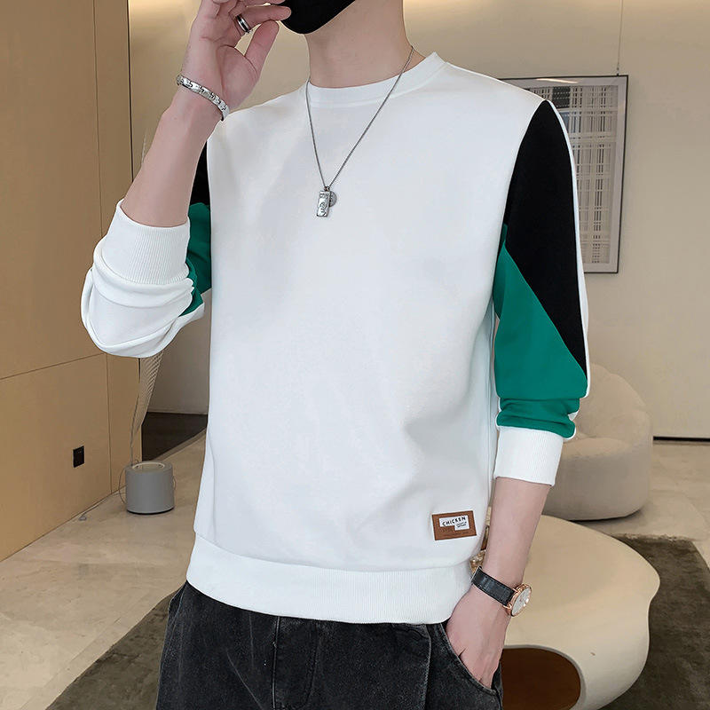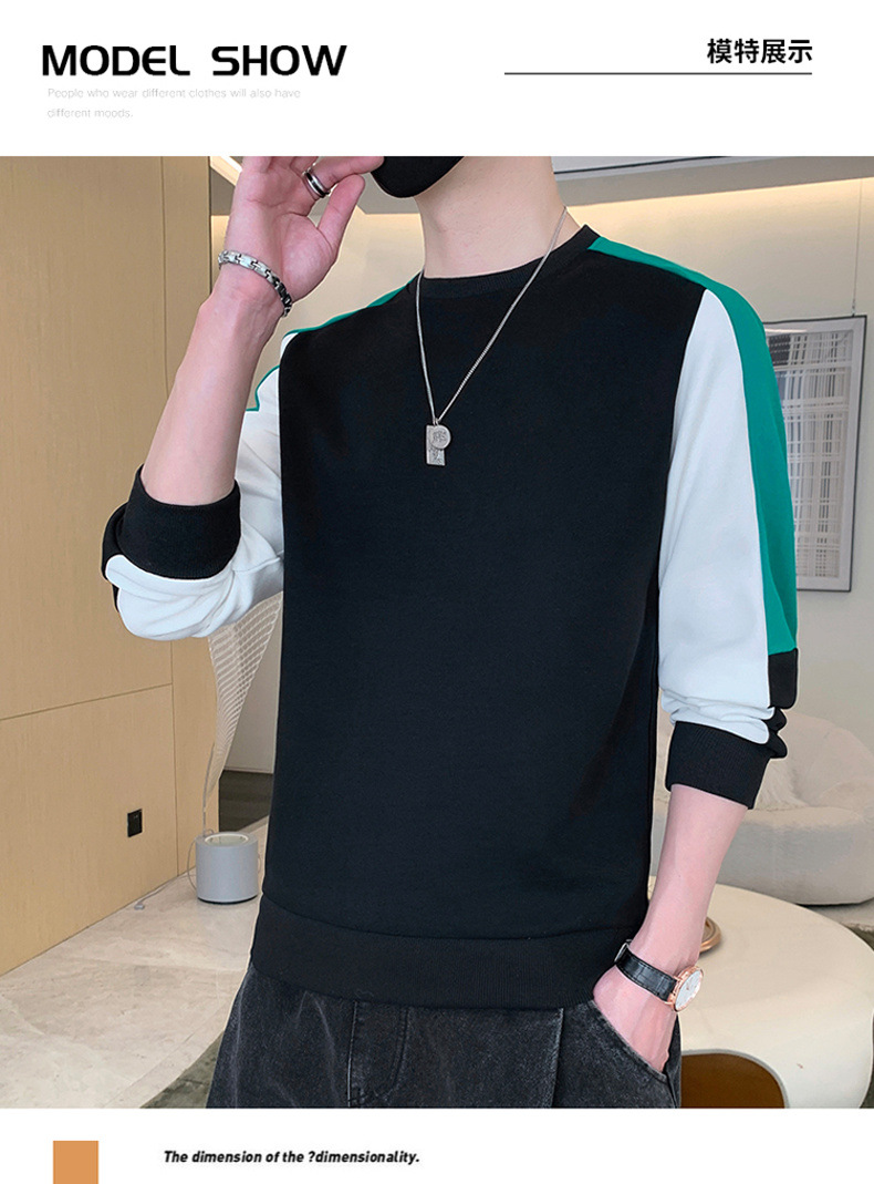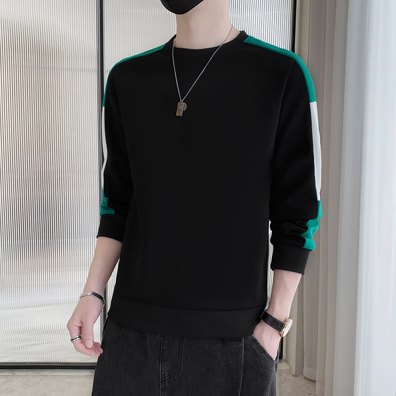 스웨트셔츠 남성용 봄과 가을 라운드 넥 트렌디 브랜드 남성용 콘트라스트 컬러 스티칭 의류 루즈베이스 의류 남성용 긴 소매 티셔츠