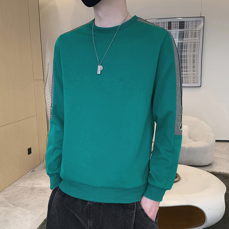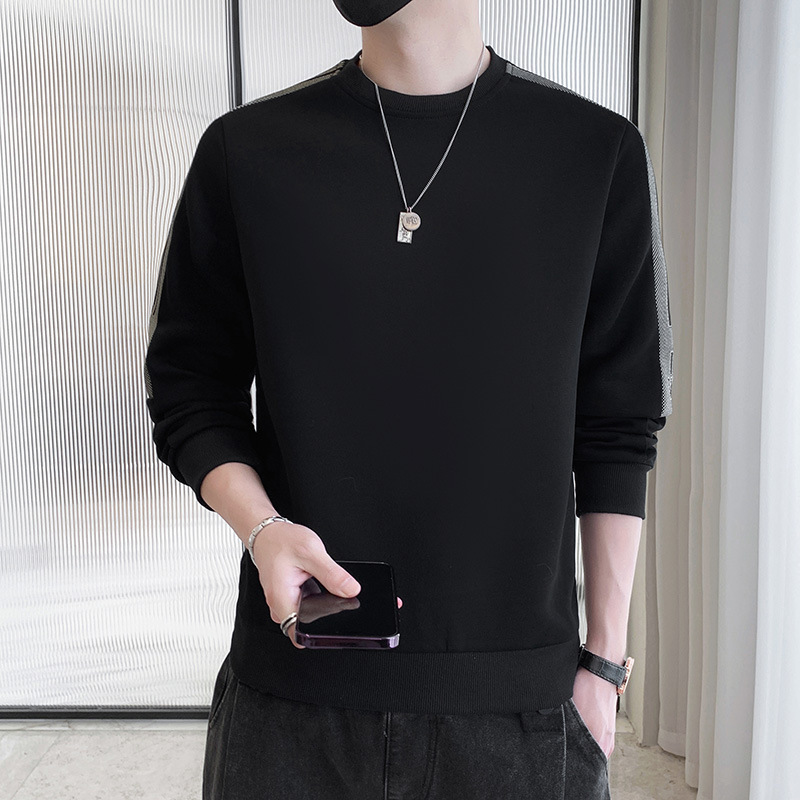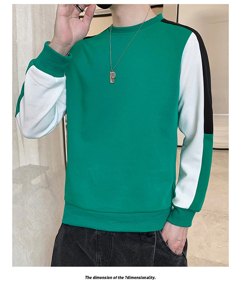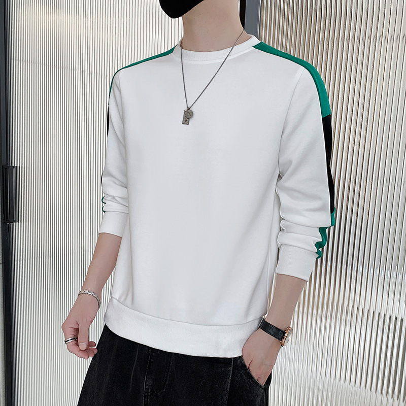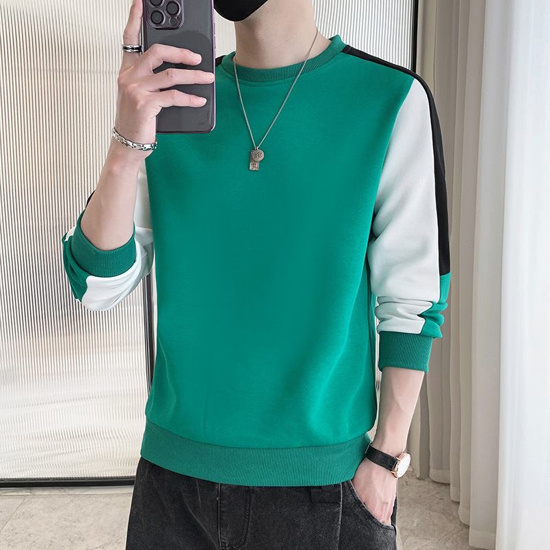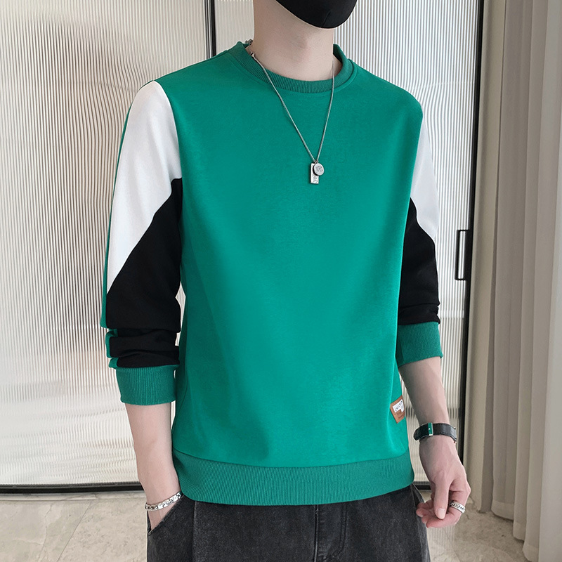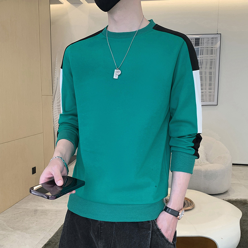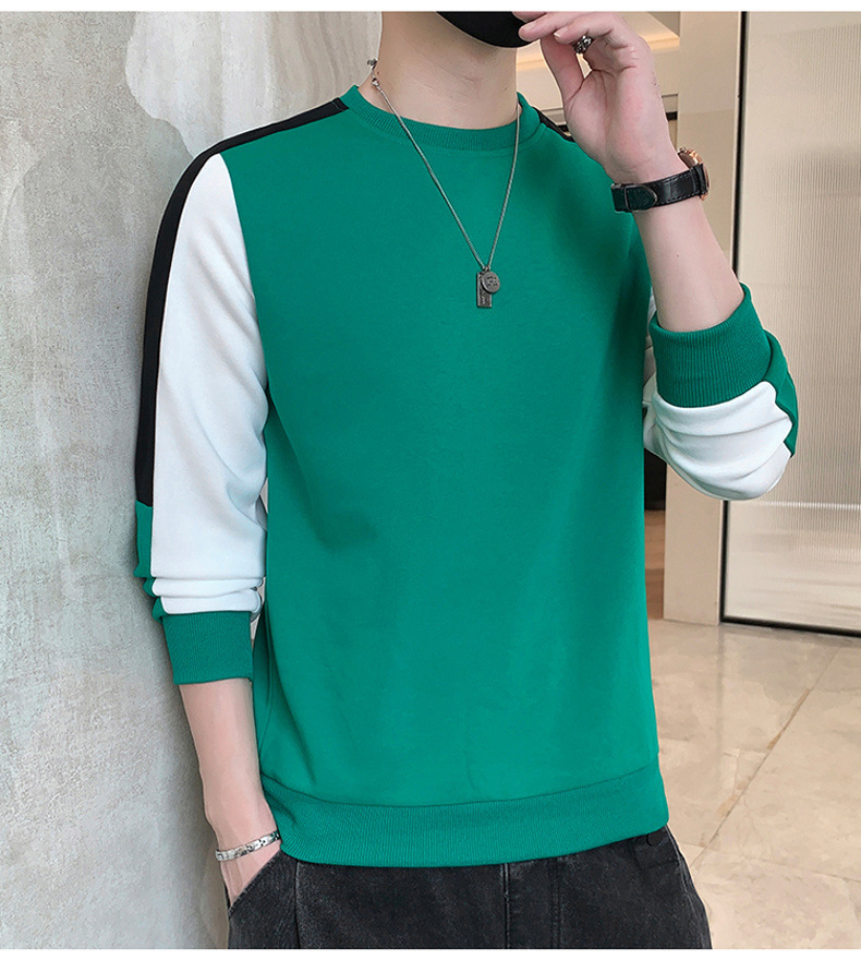 스웨트셔츠 남성용 봄과 가을 라운드 넥 트렌디 브랜드 남성용 콘트라스트 컬러 스티칭 의류 루즈베이스 의류 남성용 긴 소매 티셔츠