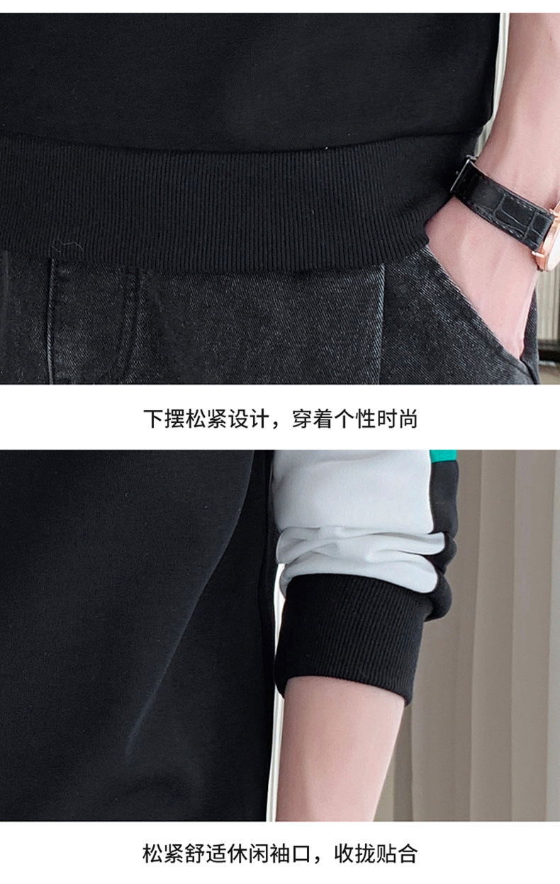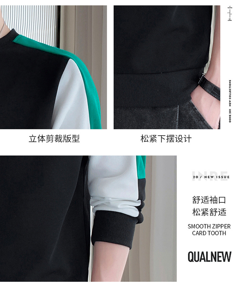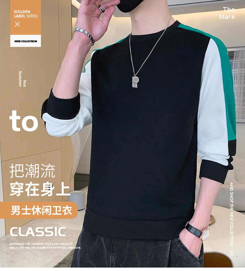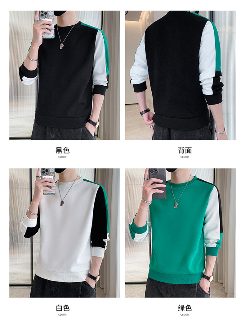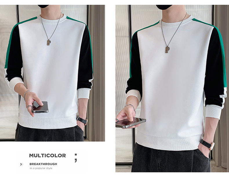 스웨트셔츠 남성용 봄과 가을 라운드 넥 트렌디 브랜드 남성용 콘트라스트 컬러 스티칭 의류 루즈베이스 의류 남성용 긴 소매 티셔츠스토어 가기