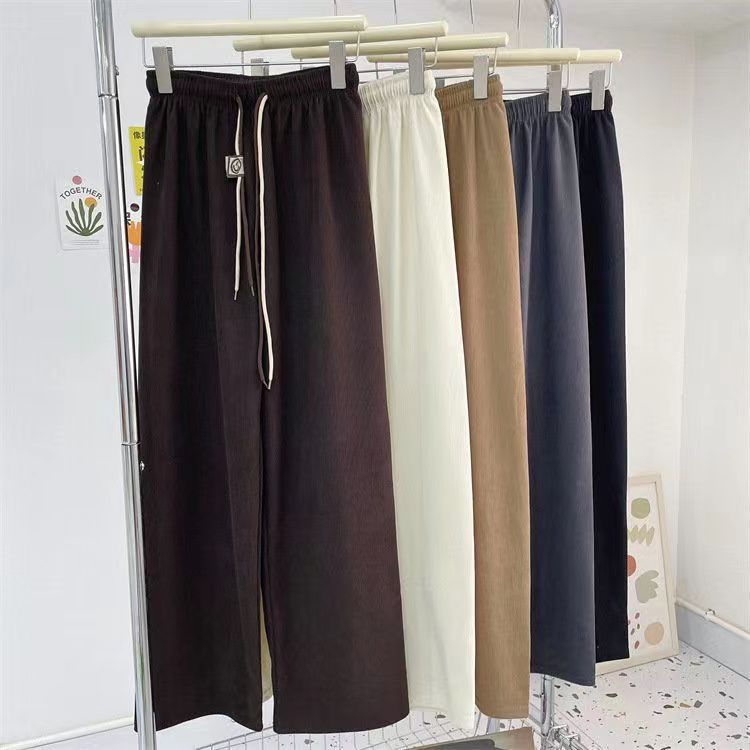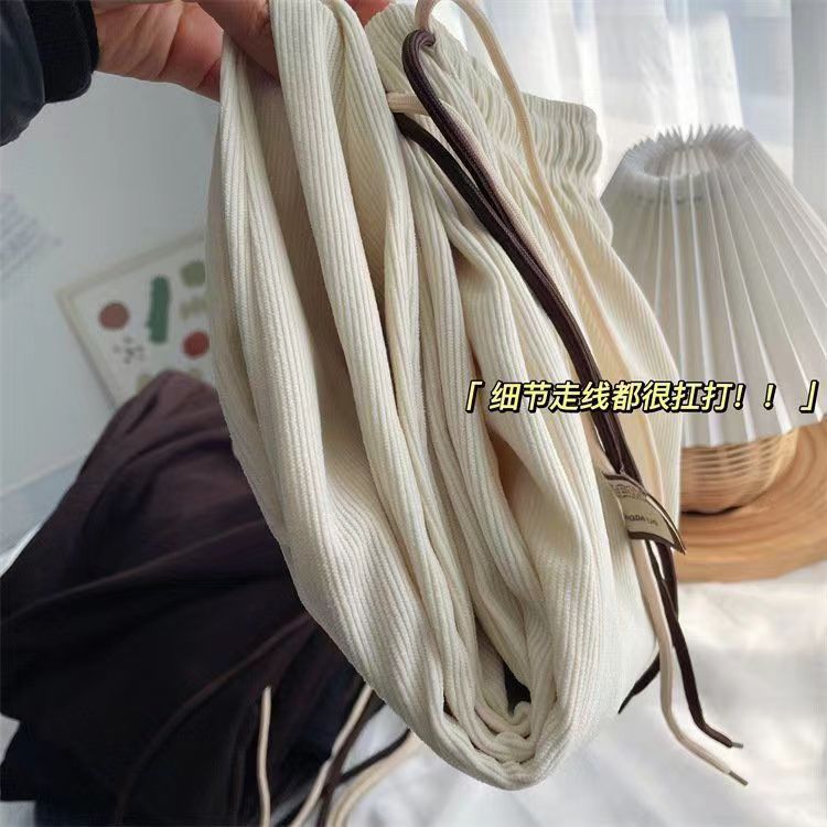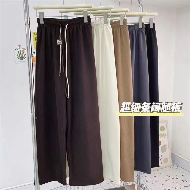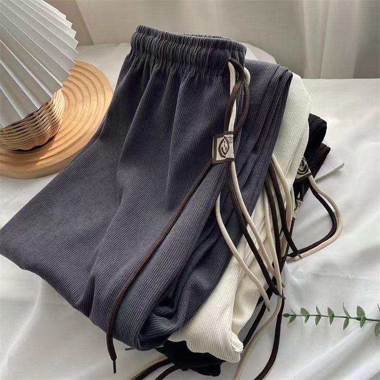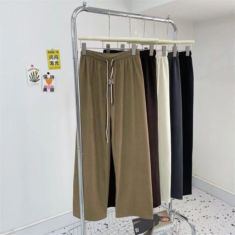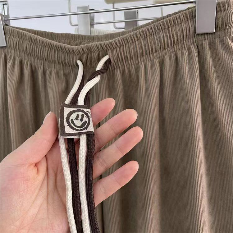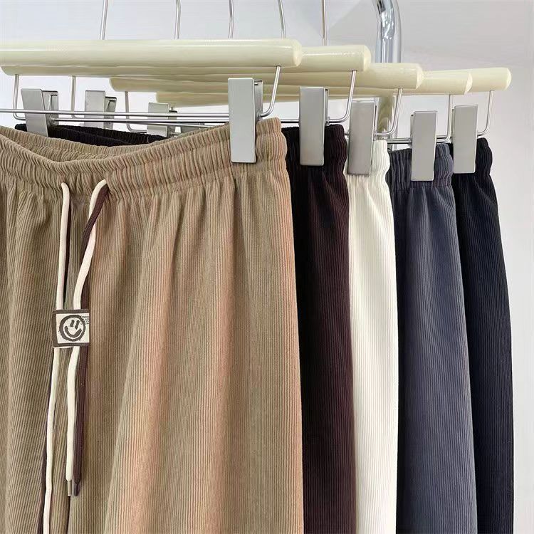 초정밀 와이드 레그 바지 여성용 2024 새로운 코듀로이 캐주얼 바지 스키니 스마일리 더블 벨트 스트레이트 바지스토어 가기