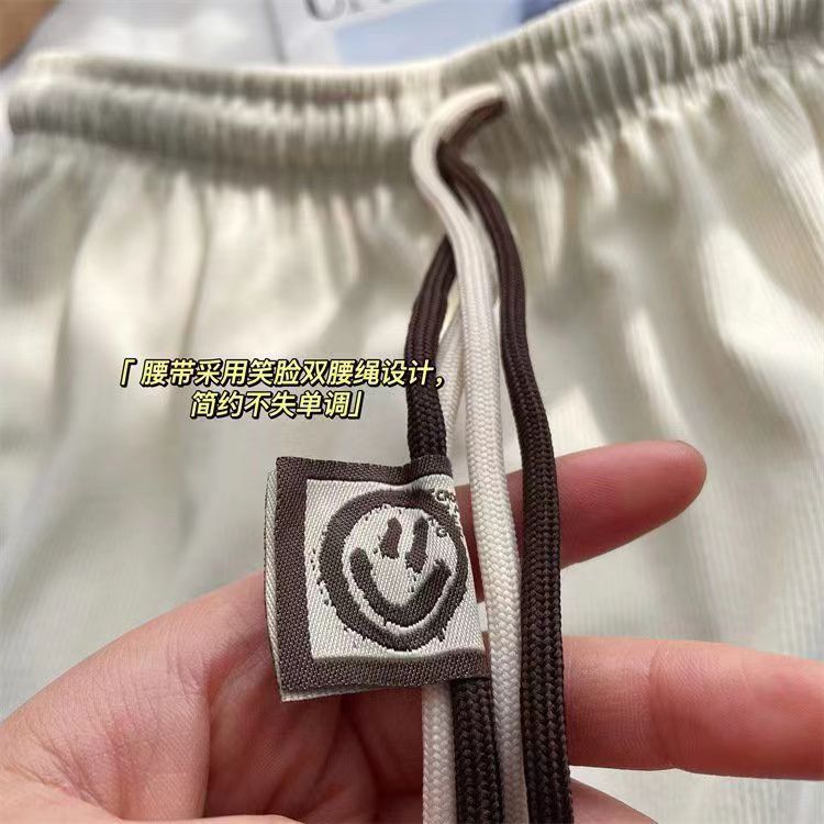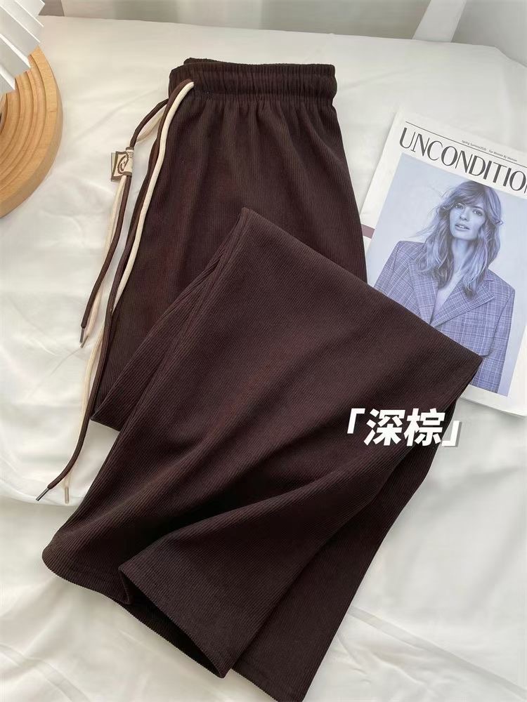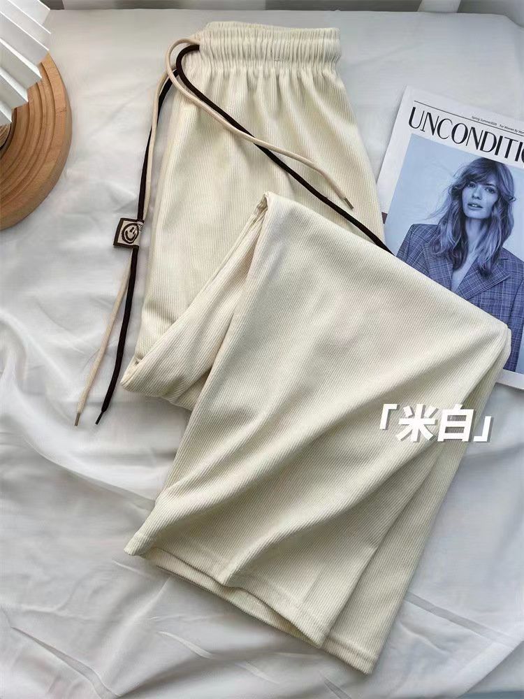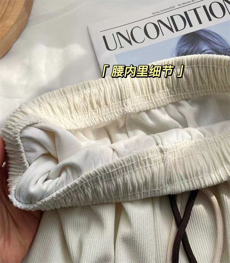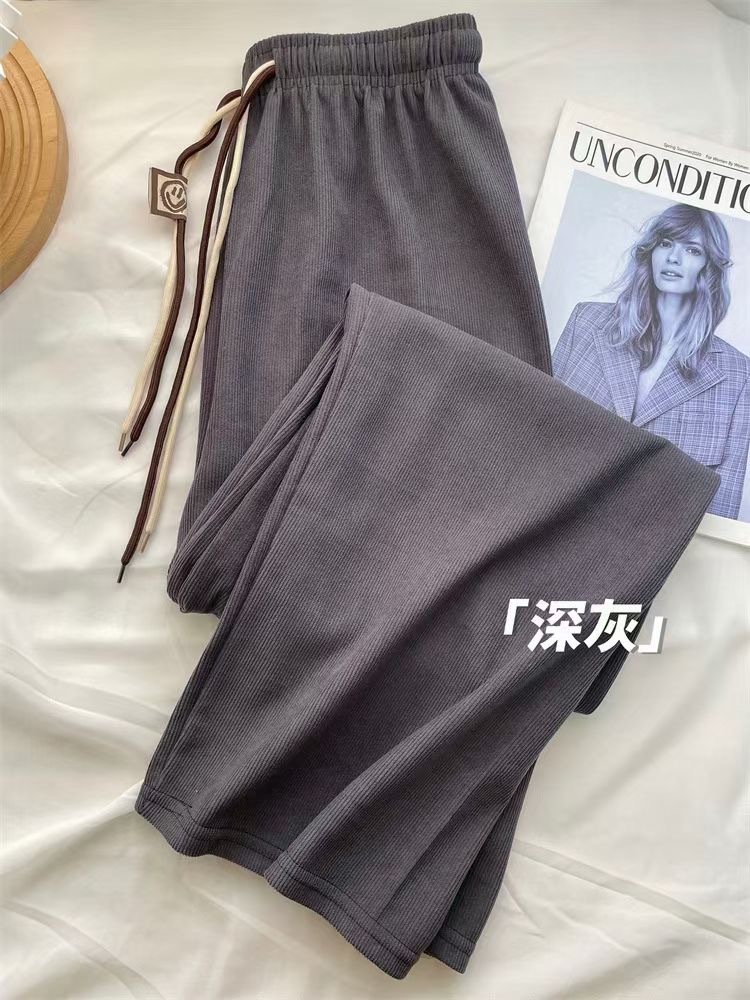 초정밀 와이드 레그 바지 여성용 2024 새로운 코듀로이 캐주얼 바지 스키니 스마일리 더블 벨트 스트레이트 바지스토어 가기