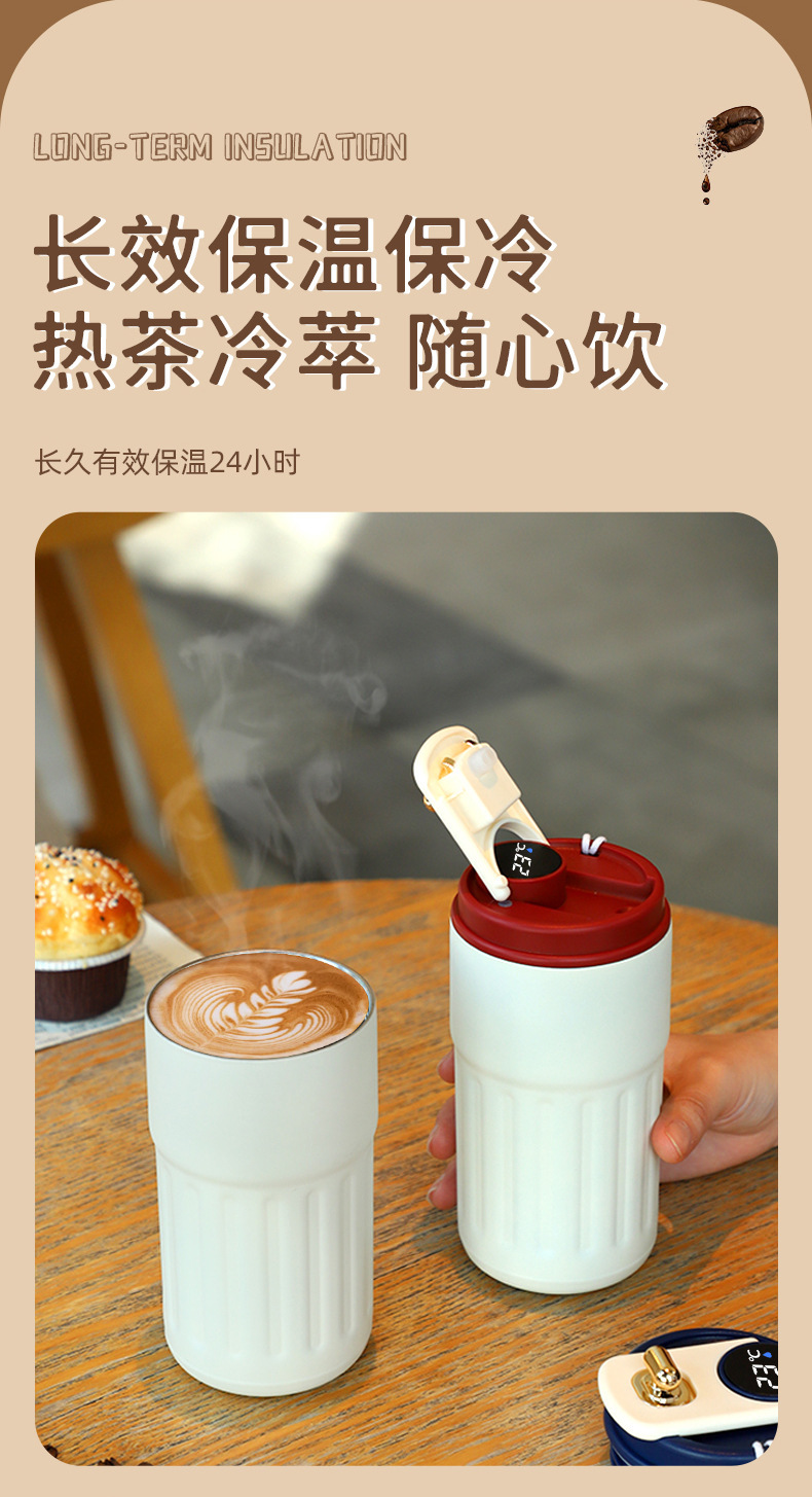 새로운 따뜻한 지능형 커피 컵 316 머그 스테인레스 스틸 남성과 여성의 높은 색상 가치 물 컵 휴대용 동반 컵 컵