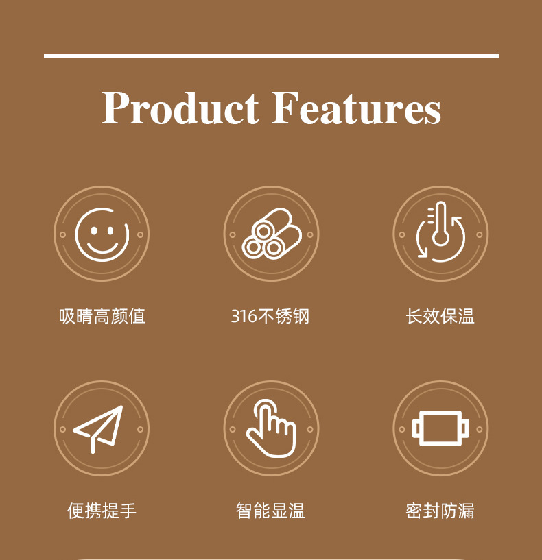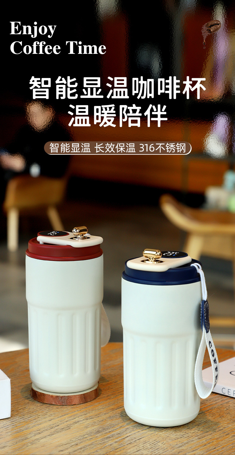 새로운 따뜻한 지능형 커피 컵 316 머그 스테인레스 스틸 남성과 여성의 높은 색상 가치 물 컵 휴대용 동반 컵 컵스토어 가기