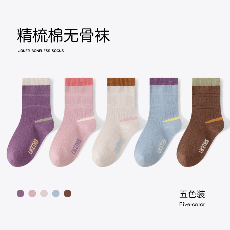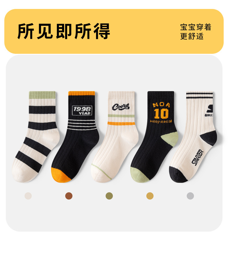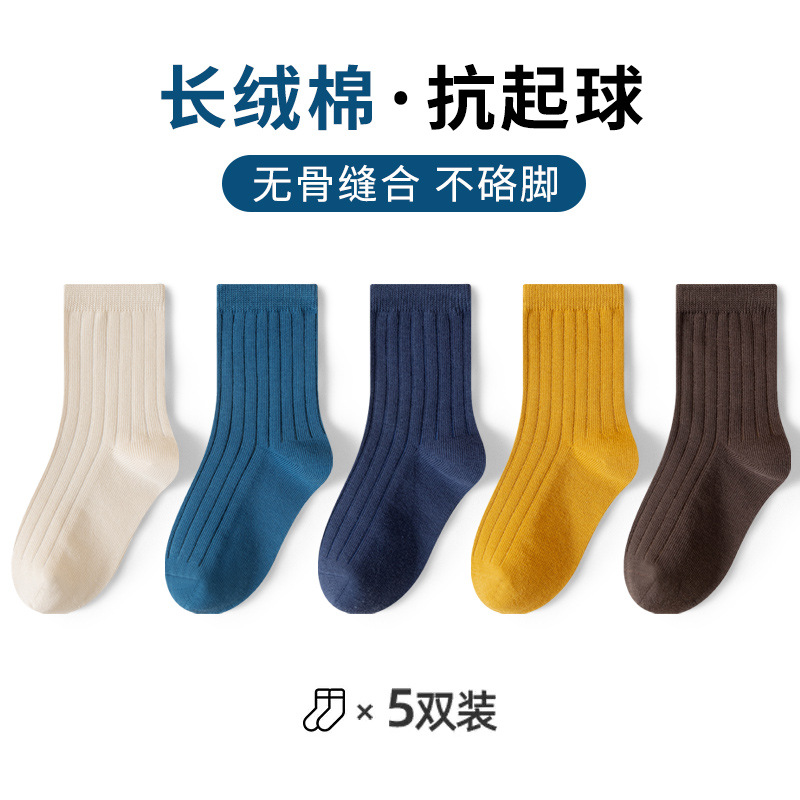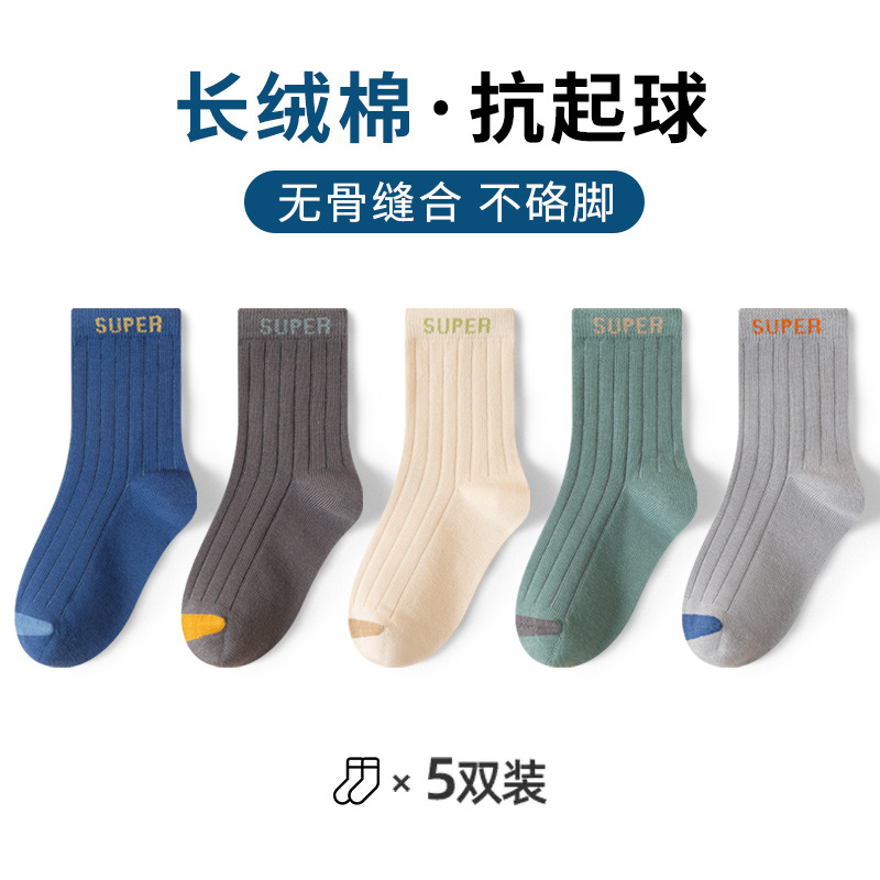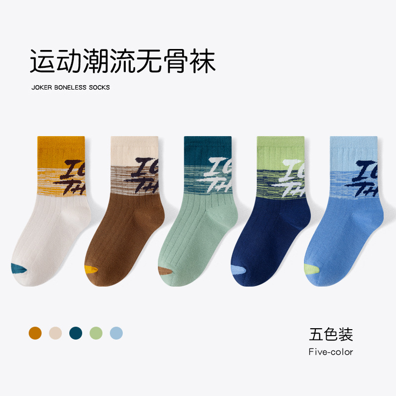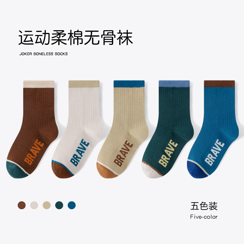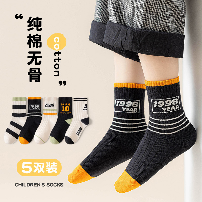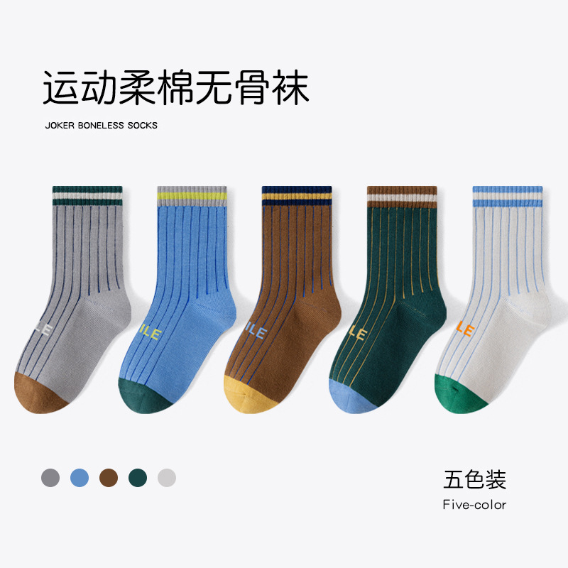 유행 줄무늬 색상 일치 어린이 양말 소년 가을과 겨울 한국 버전 소년 청소년 학생 면 양말 유행 중간 튜브 양말스토어 가기