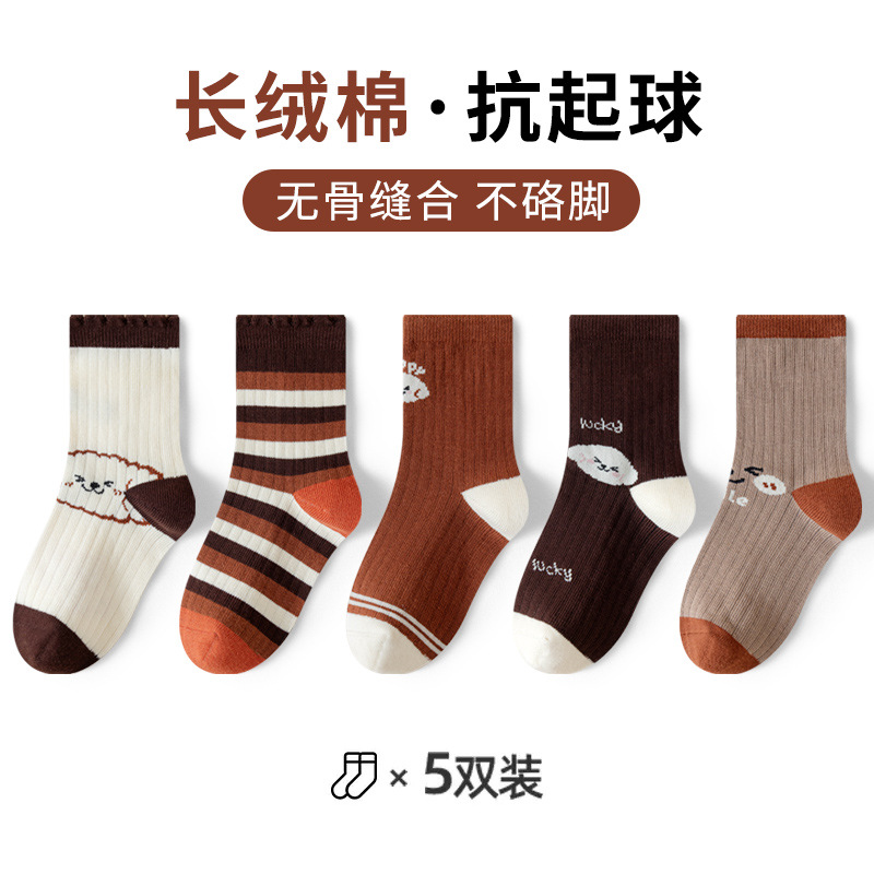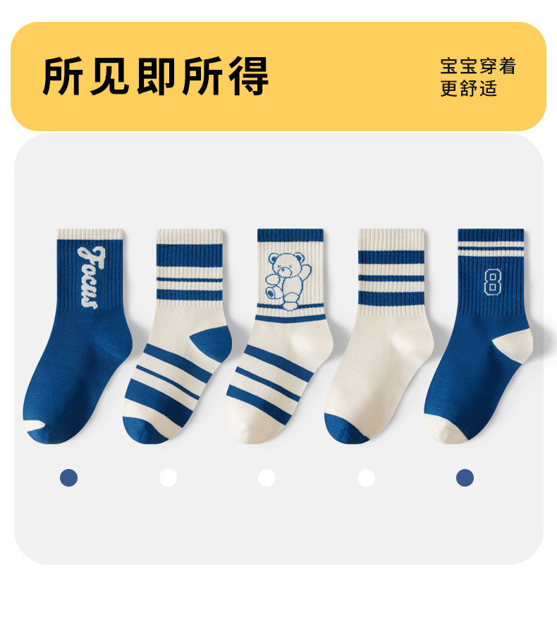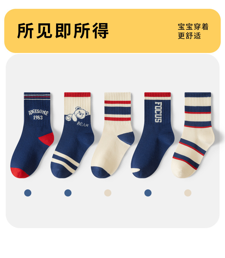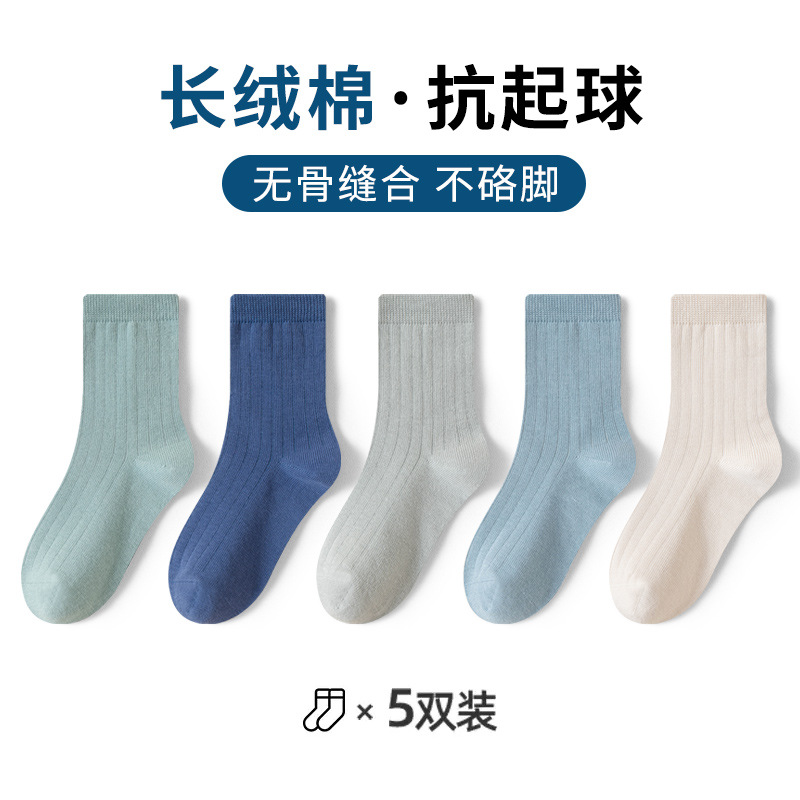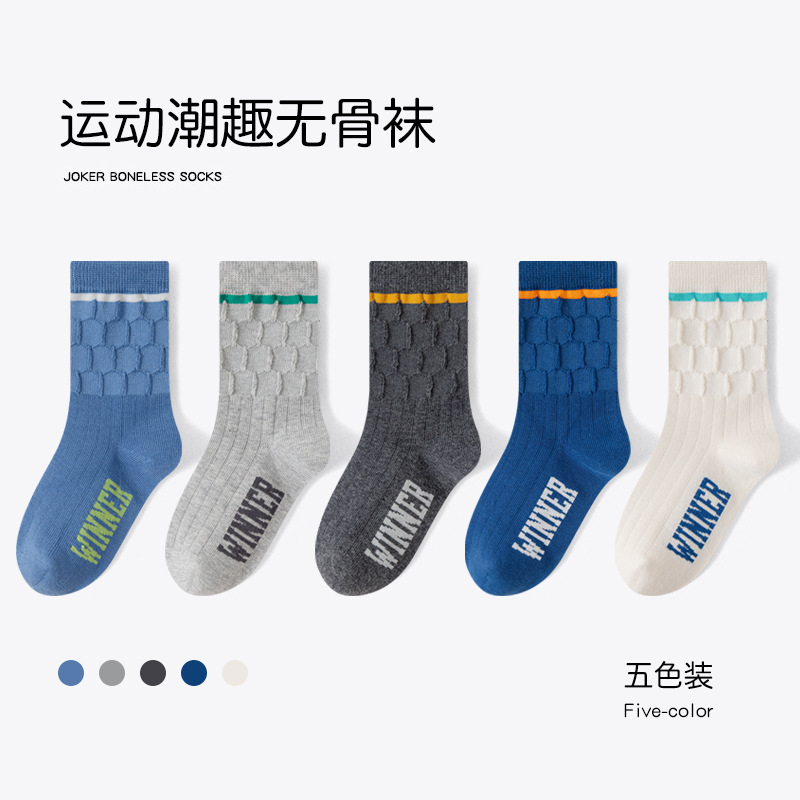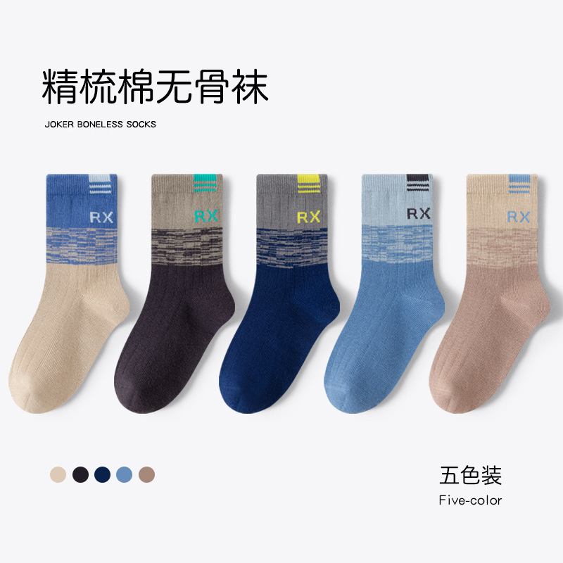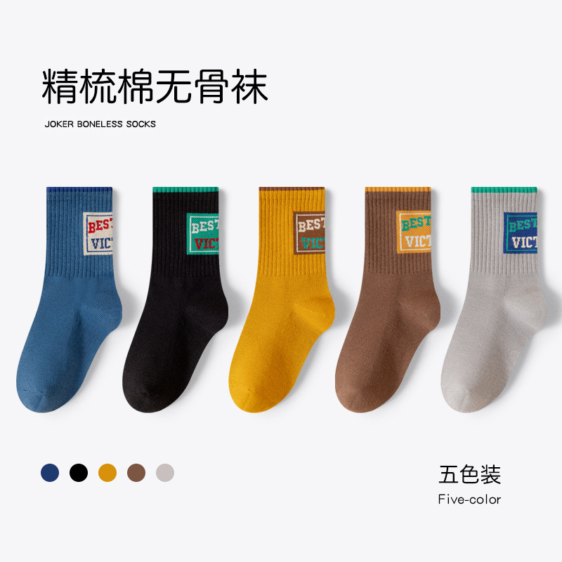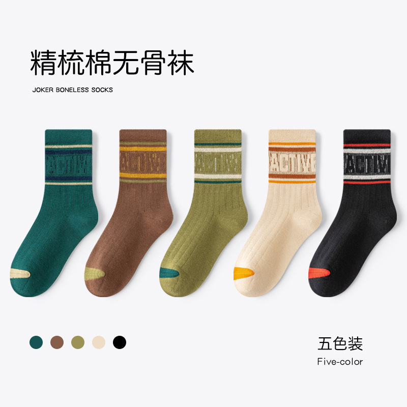 유행 줄무늬 색상 일치 어린이 양말 소년 가을과 겨울 한국 버전 소년 청소년 학생 면 양말 유행 중간 튜브 양말스토어 가기