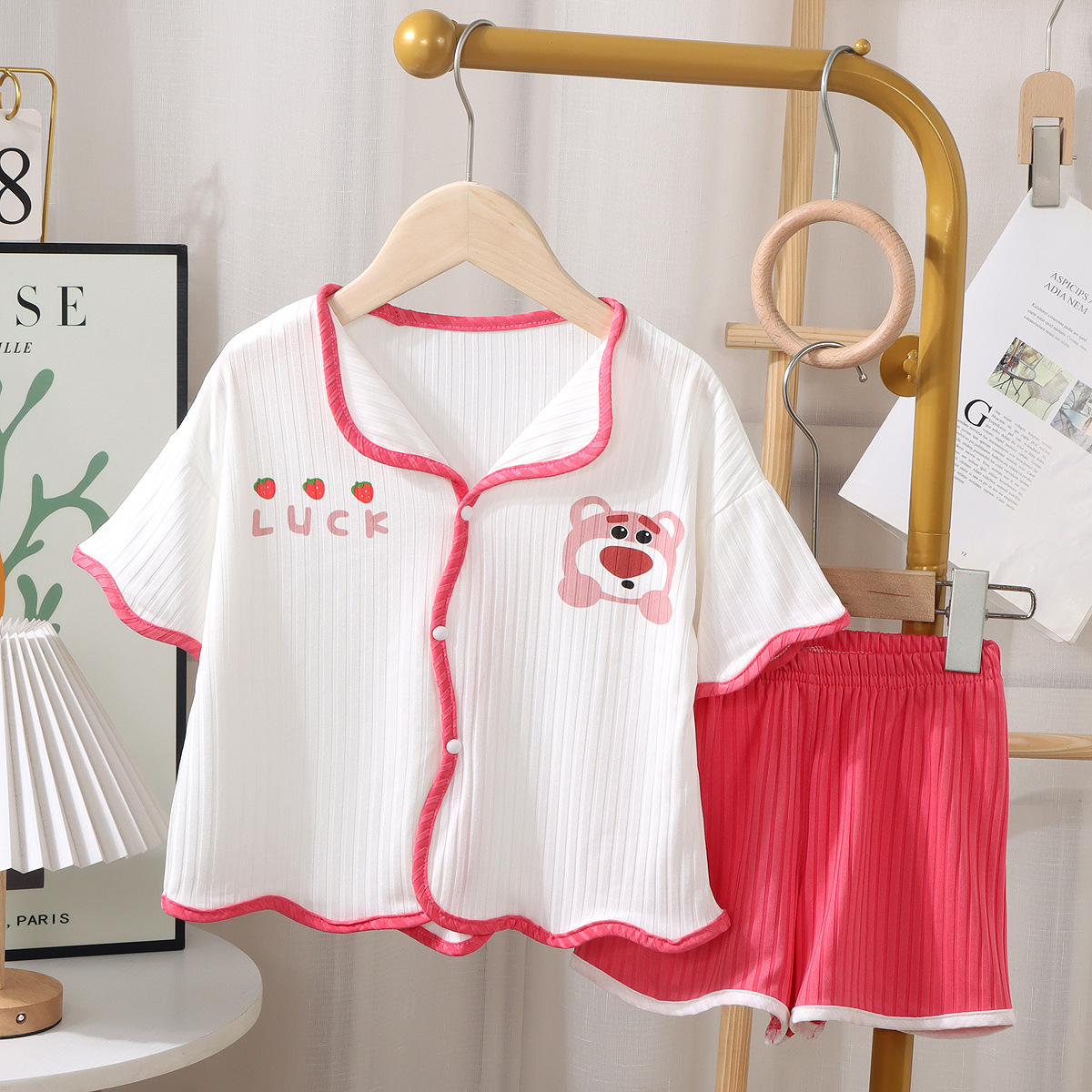 어린이용 가디건 홈웨어 세트 2025 여름 만화 캐릭터 아이스 실크 반팔 반바지 투피스 세트 카라 디자인 캐주얼 다용도스토어 가기