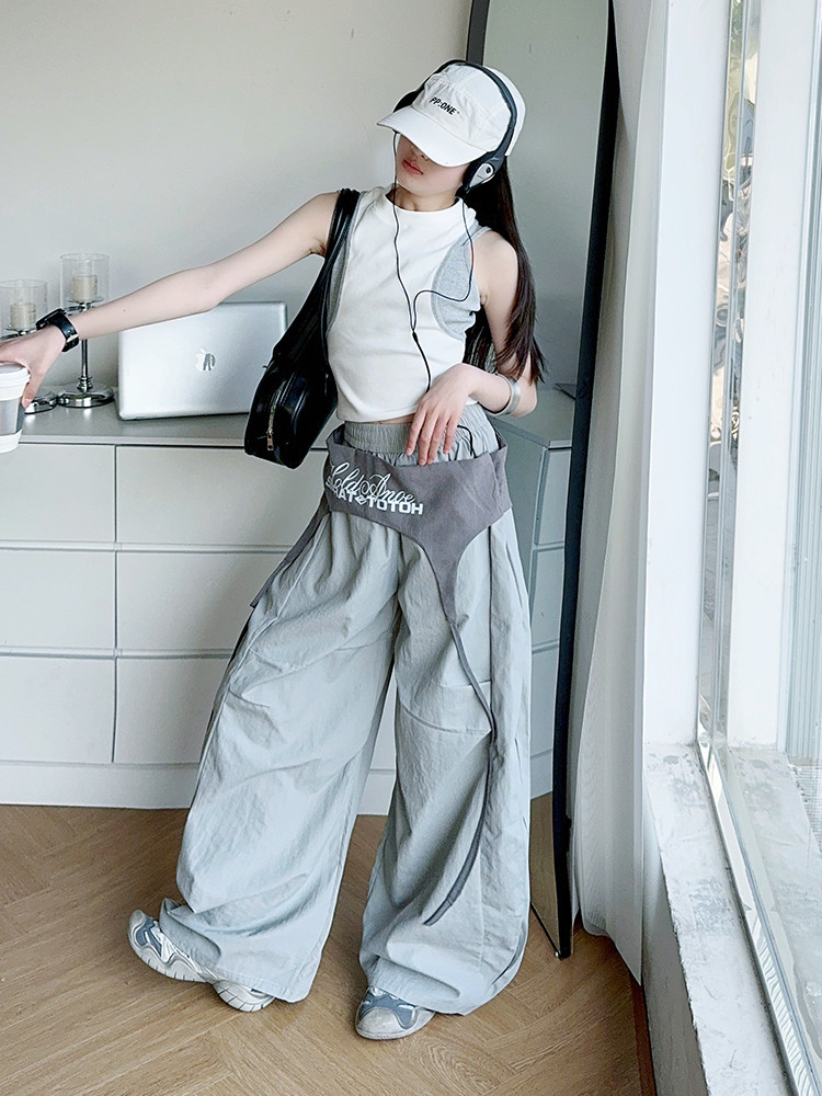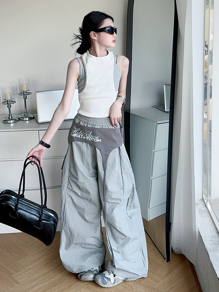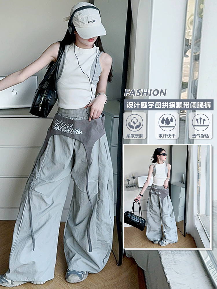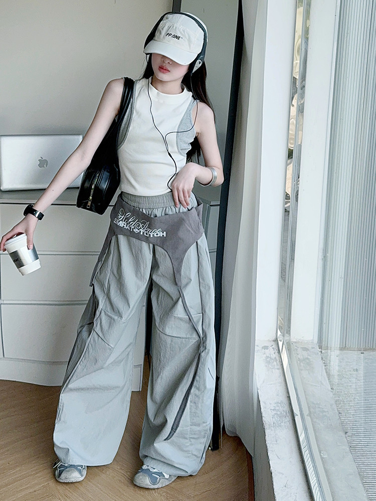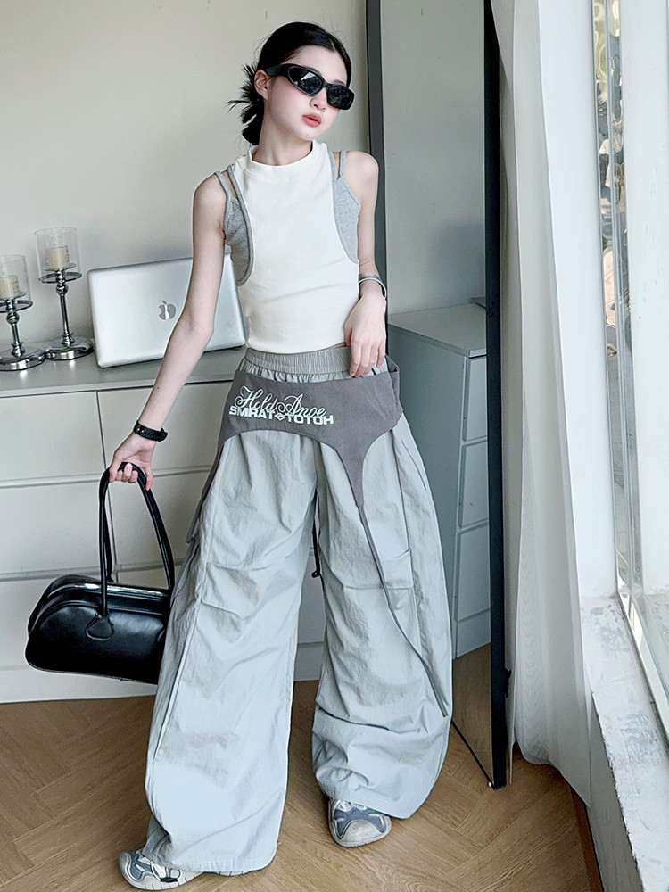 여아 아메리칸 하이 스트리트 레이어드 디자인 스트랩 채플린 팬츠 여름 스트리트 재즈 팬츠 파라글라이더 캐주얼 스포츠스토어 가기