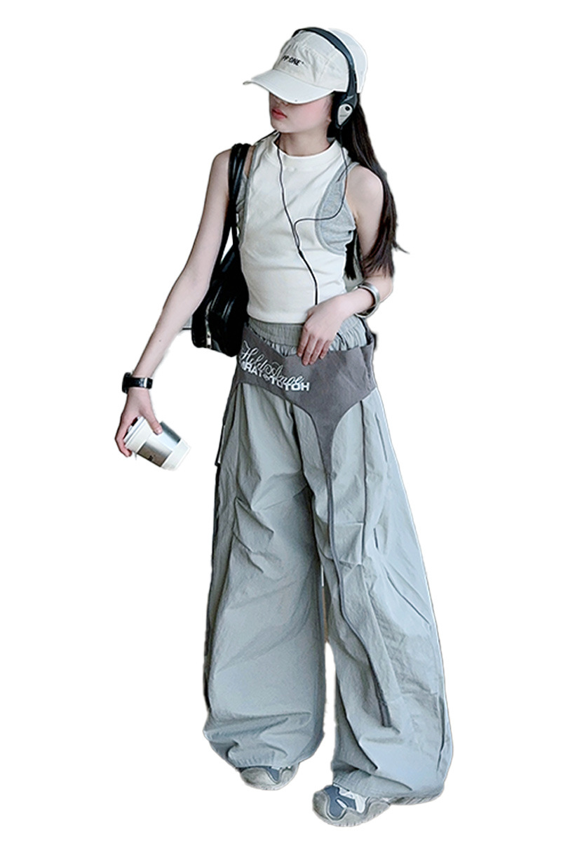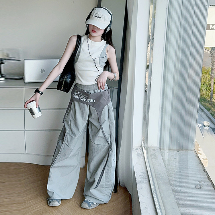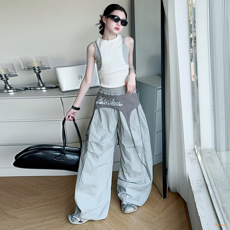 여아 아메리칸 하이 스트리트 레이어드 디자인 스트랩 채플린 팬츠 여름 스트리트 재즈 팬츠 파라글라이더 캐주얼 스포츠