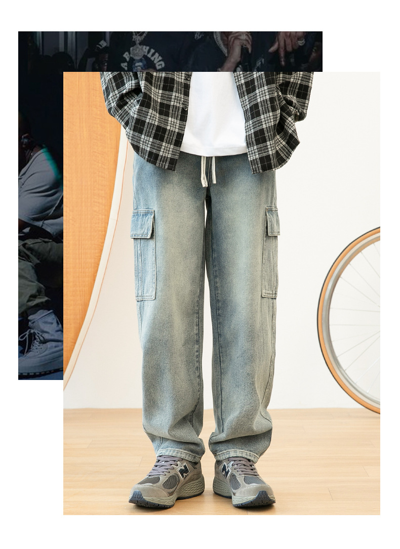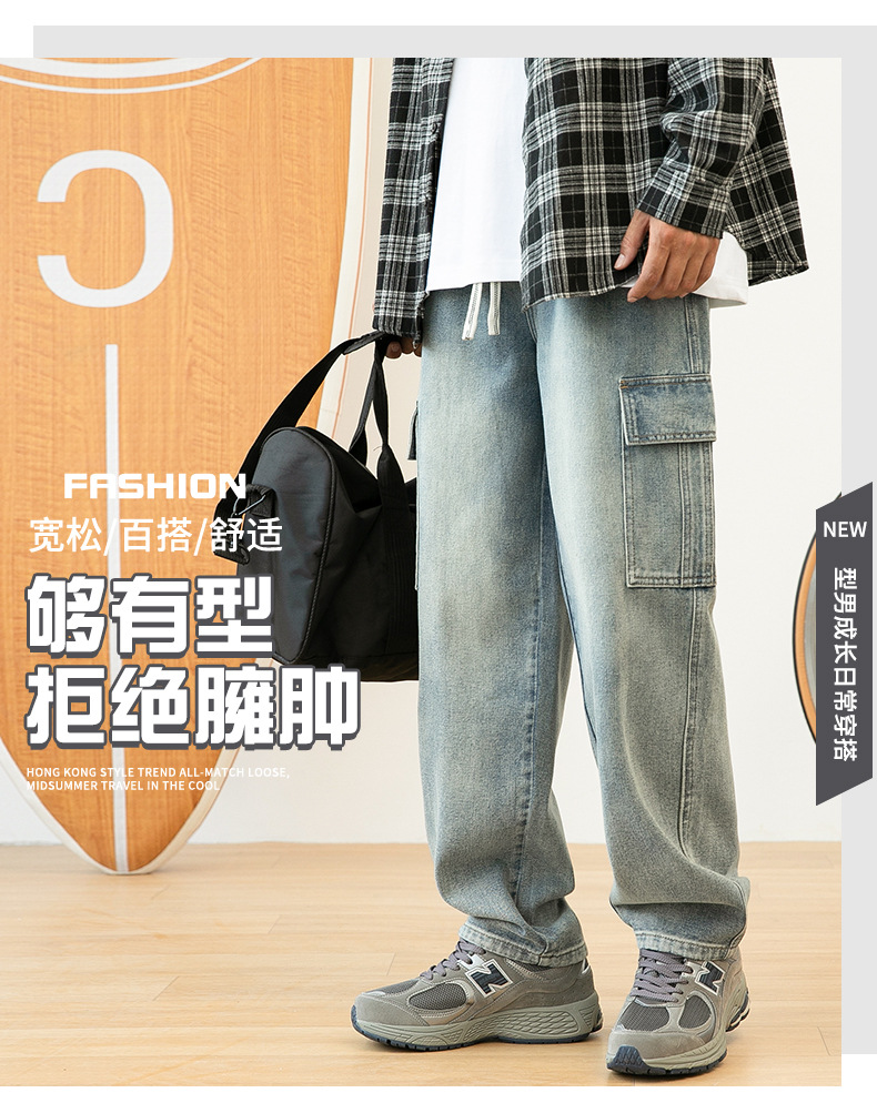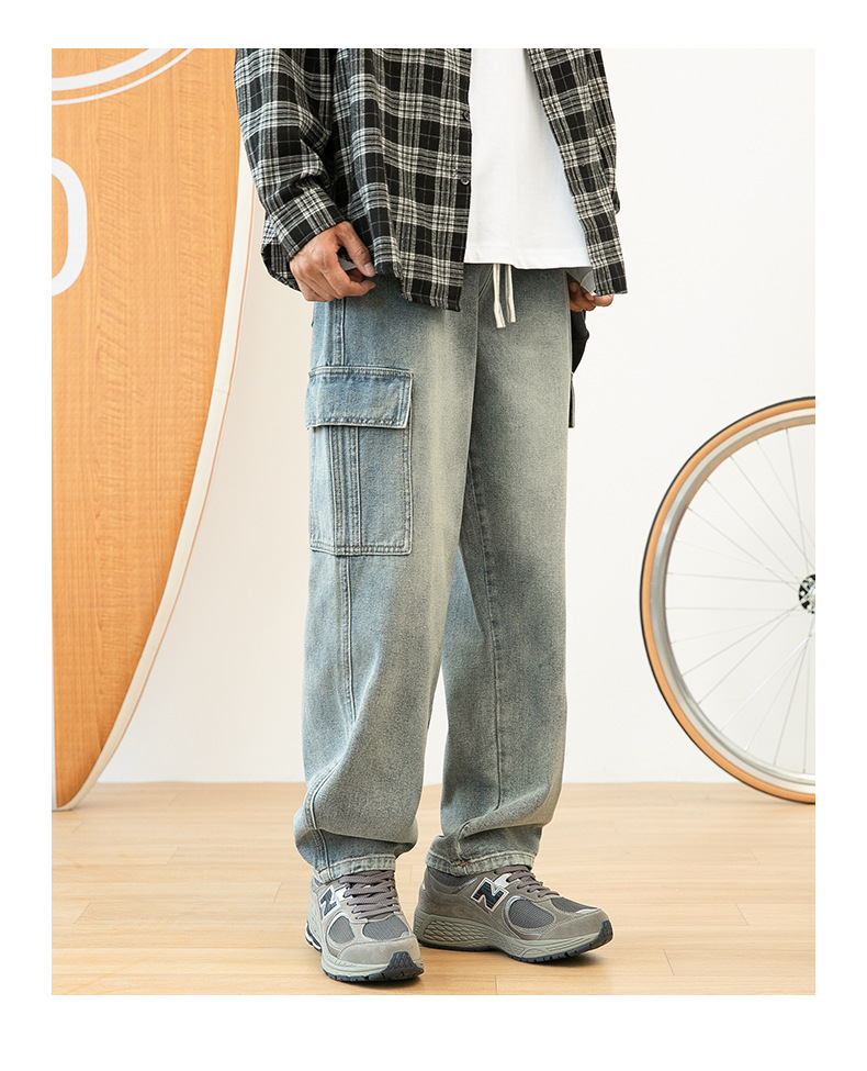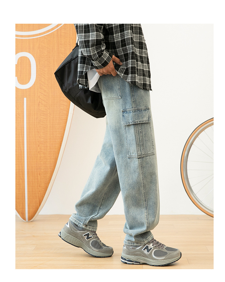 무거운 청바지 남자 가을 새로운 올 매치 유행 브랜드 스트레이트 바지 2023 미국 느슨한 하이 스트리트 워크 바지스토어 가기