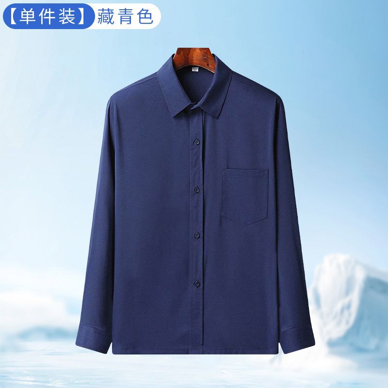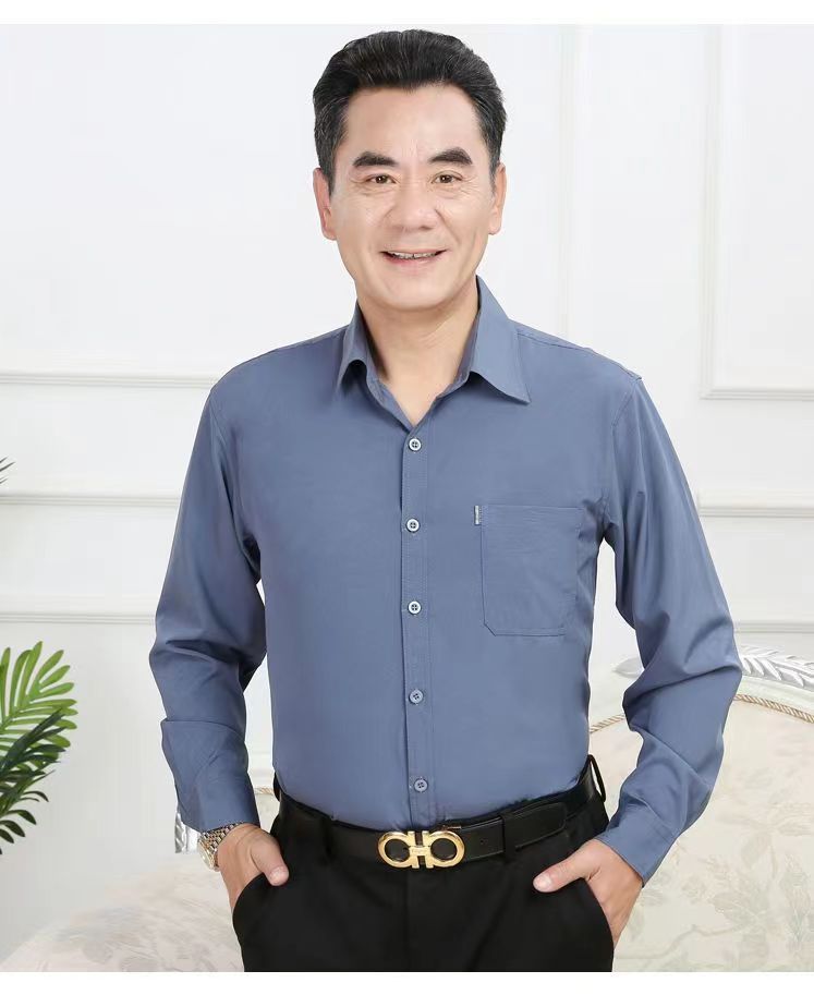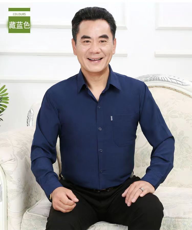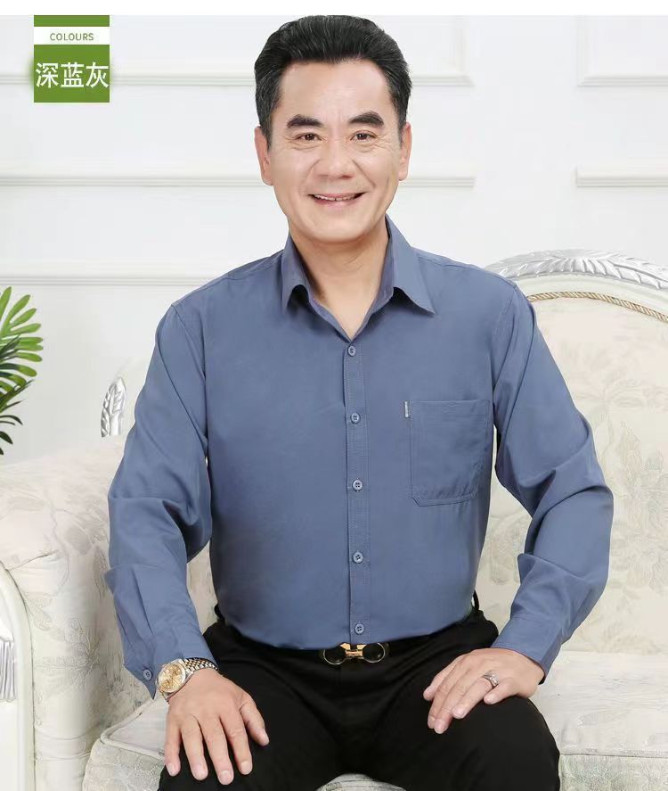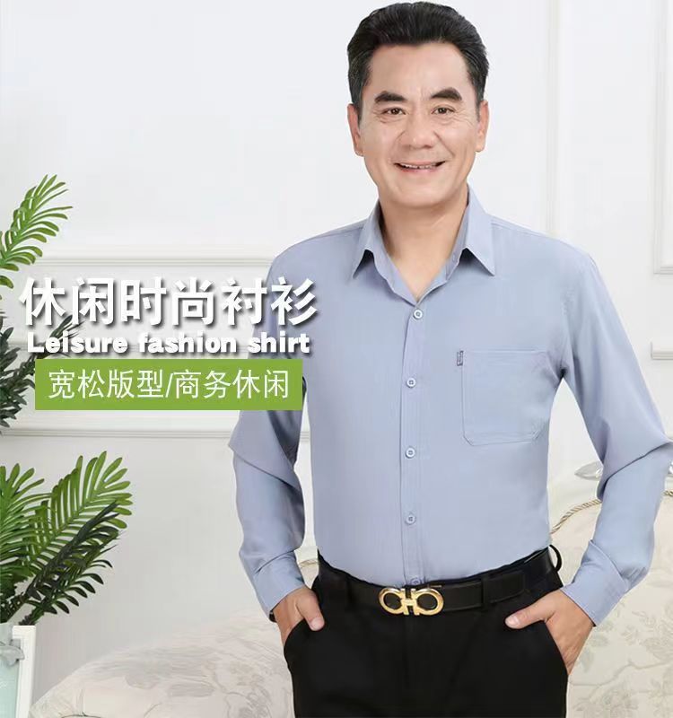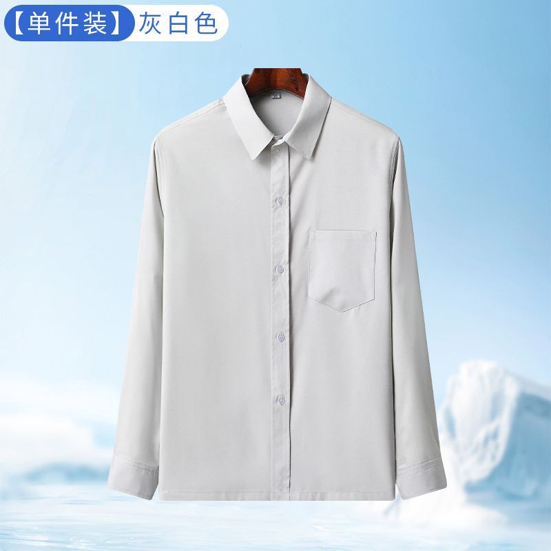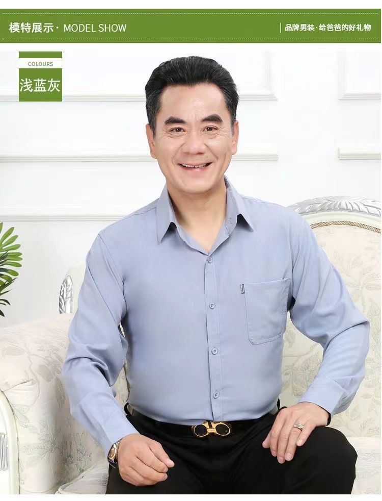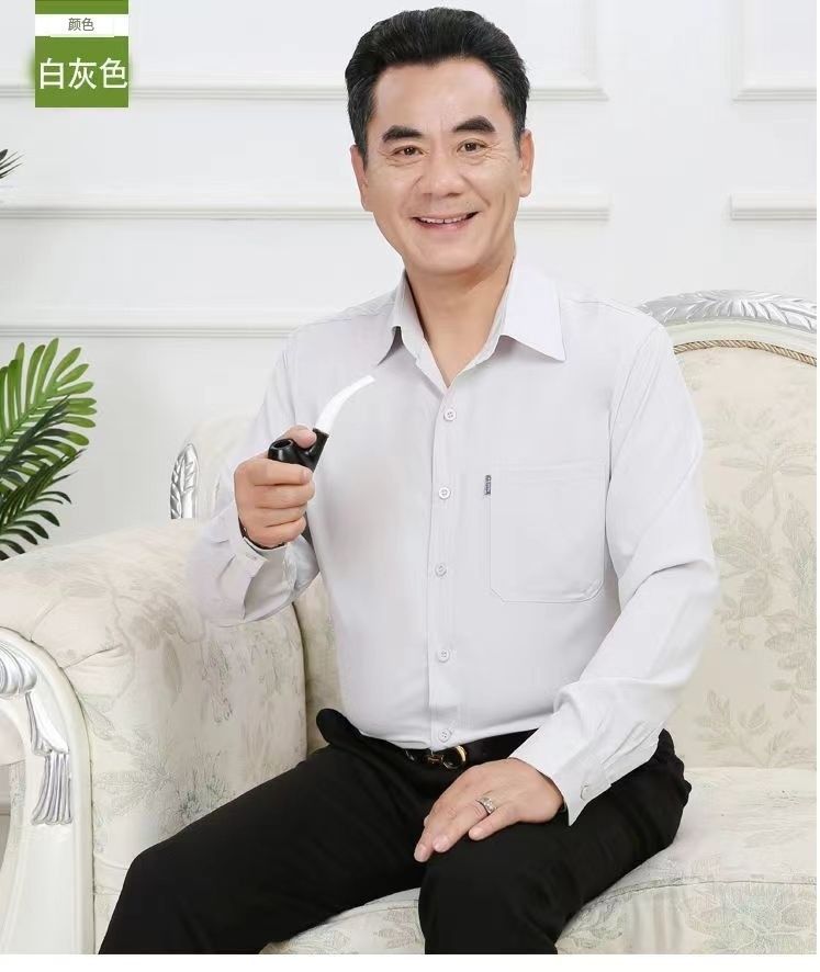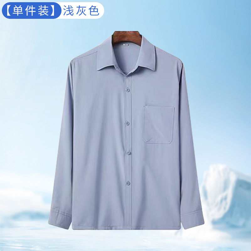 중년 및 노인 셔츠 여름 얇은 얼음 실크 긴팔 남성 여름 단색 캐주얼 셔츠 아빠 할아버지 노인 옷스토어 가기