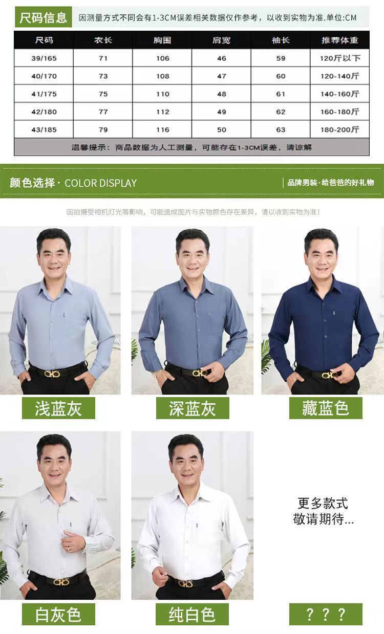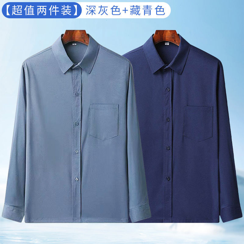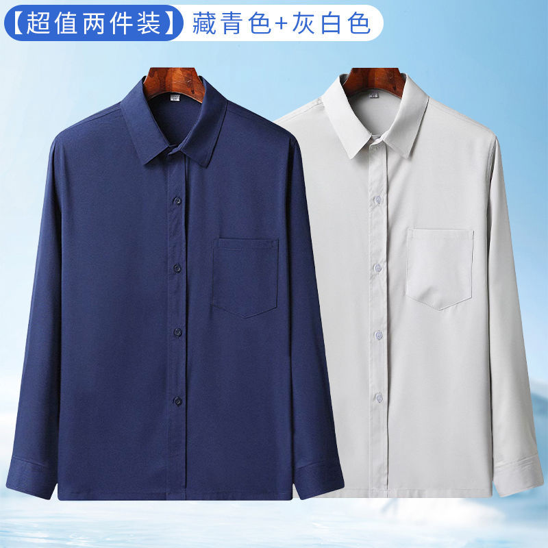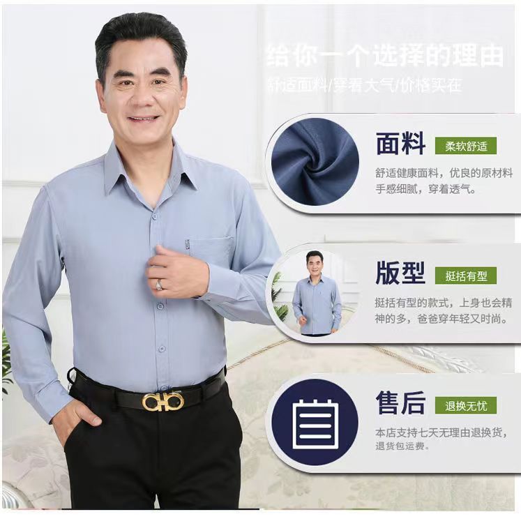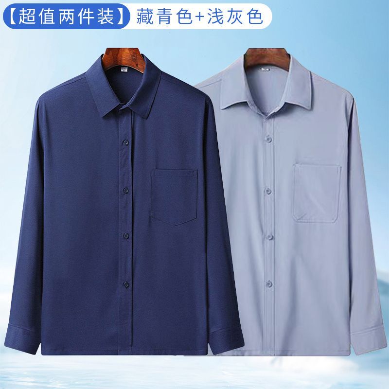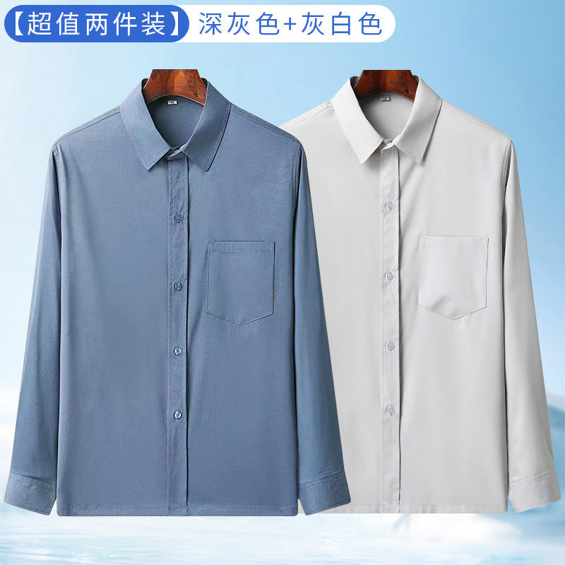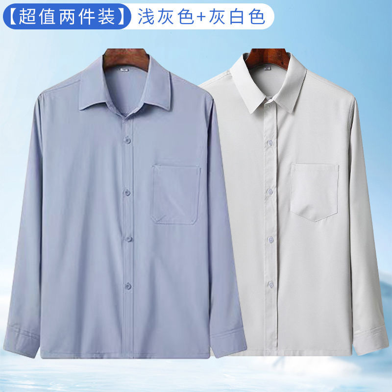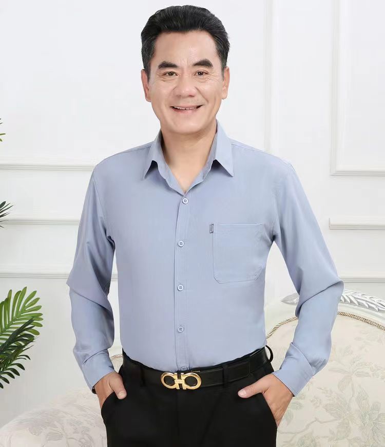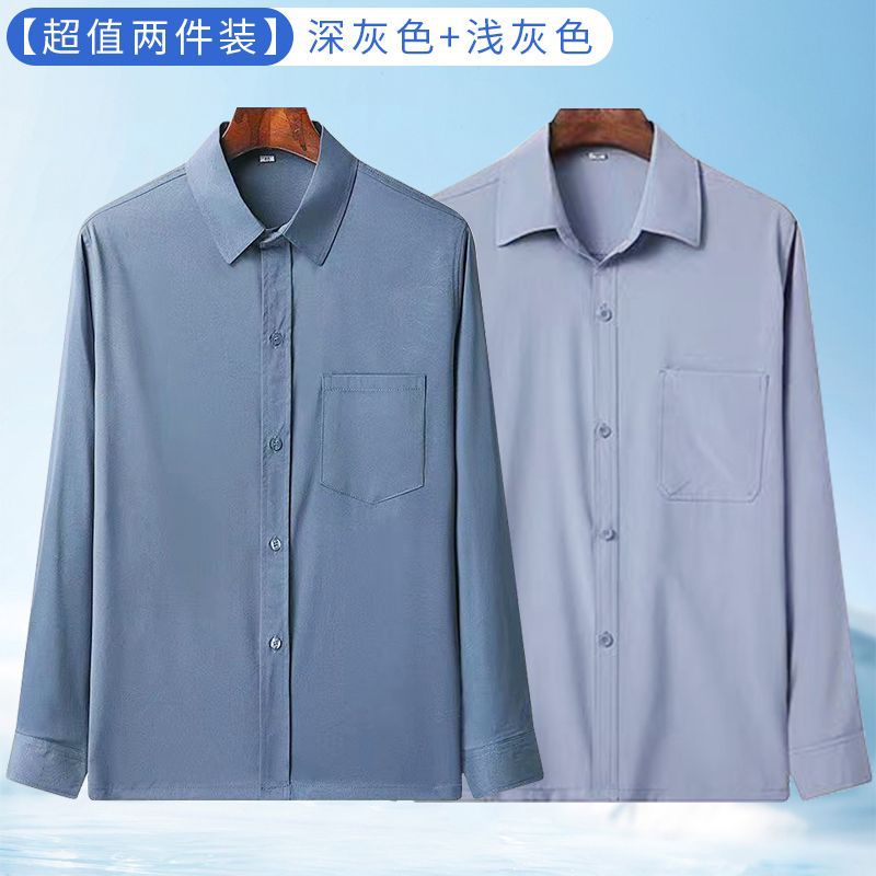 중년 및 노인 셔츠 여름 얇은 얼음 실크 긴팔 남성 여름 단색 캐주얼 셔츠 아빠 할아버지 노인 옷스토어 가기