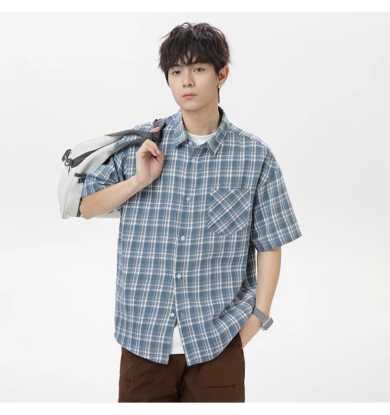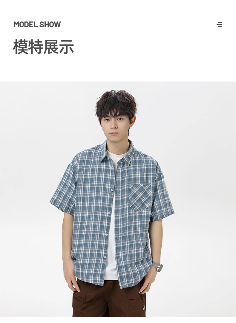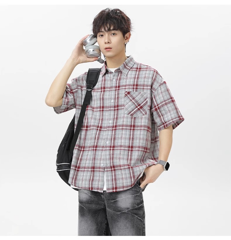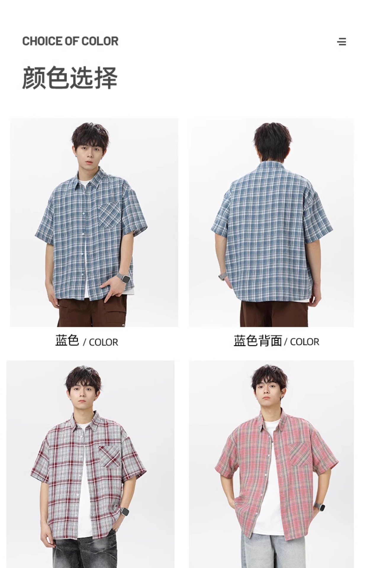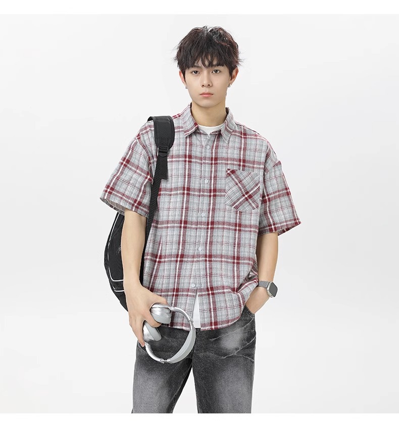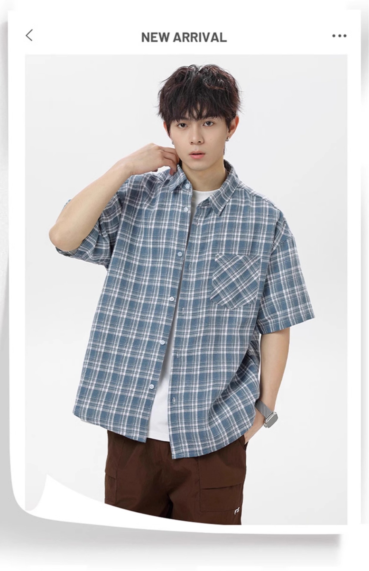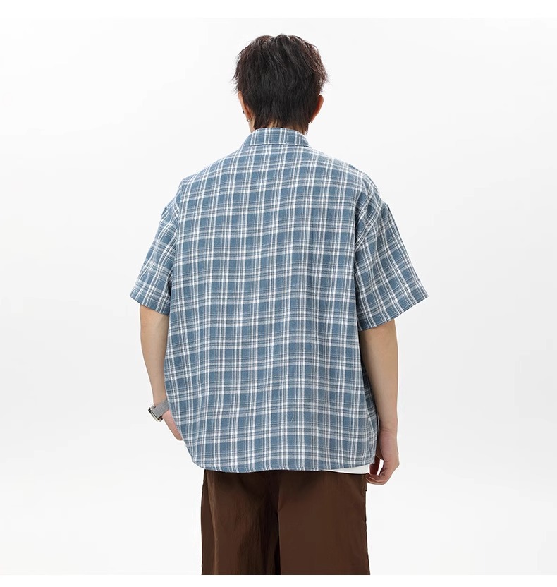 NASA 여름 2025 새로운 패션 브랜드 일본 스타일 체크 캐주얼 반팔 셔츠 남성 디자인 감각 느슨한 반팔 셔츠스토어 가기