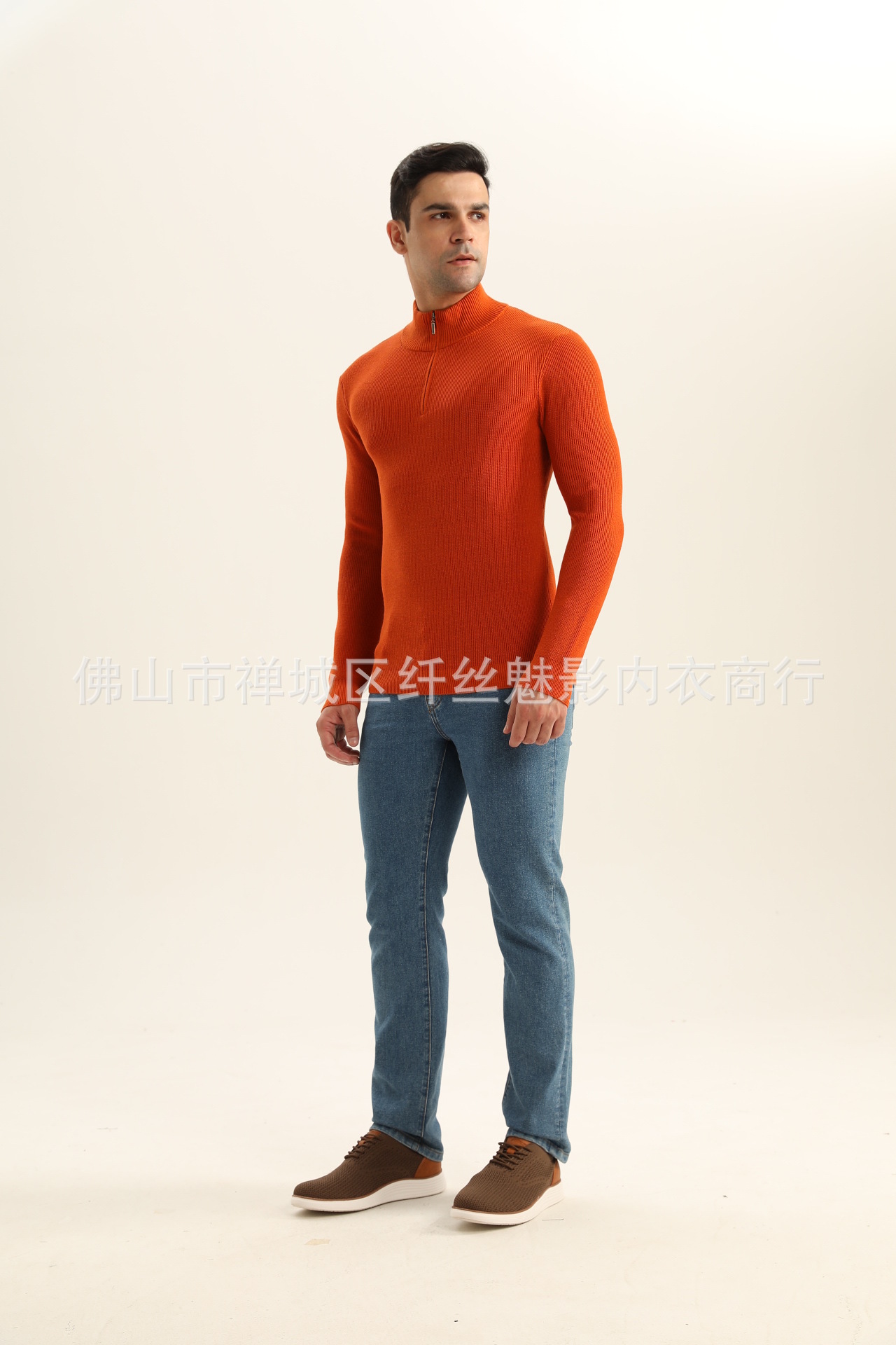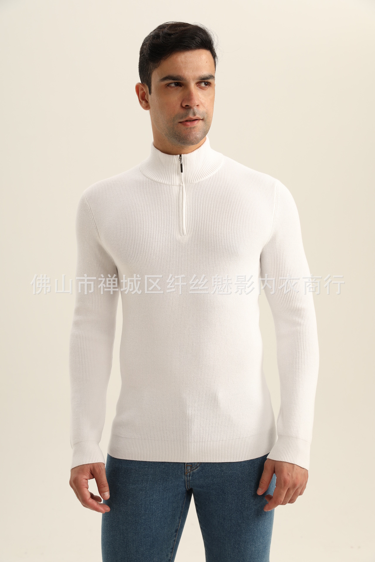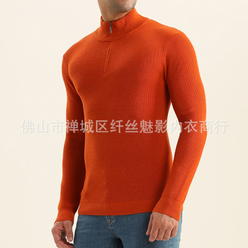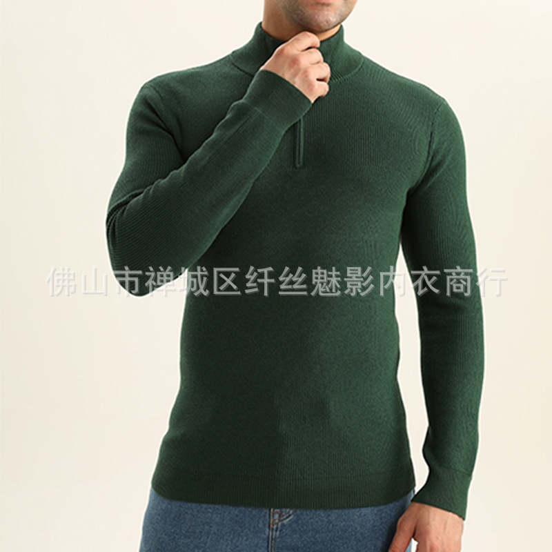 지퍼 스탠드 칼라 스웨터 가을과 겨울 반 하이 칼라 남성용 스웨터 풀오버 스웨터 크로스 보더 뉴 남성베이스 셔츠