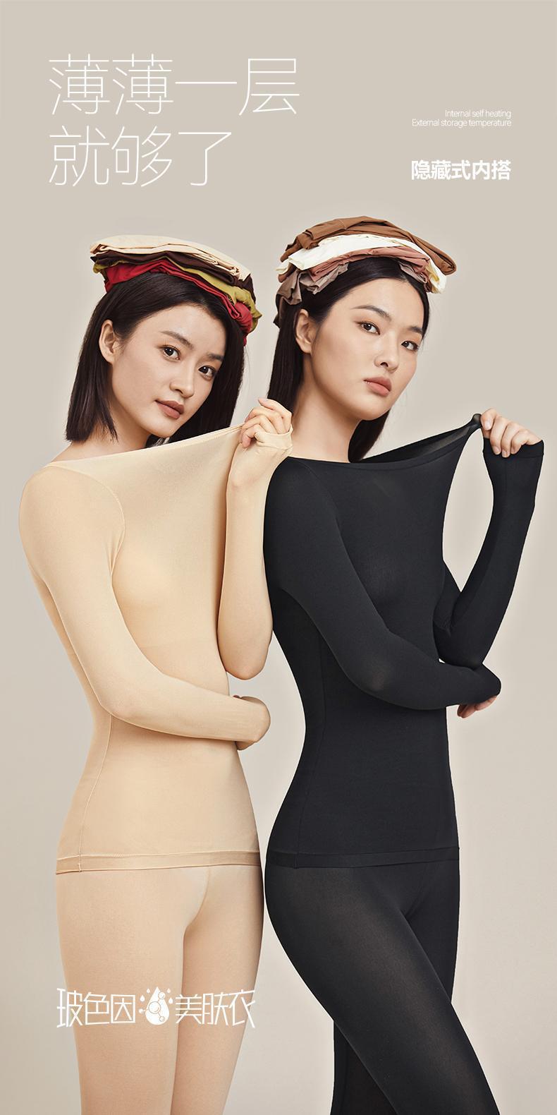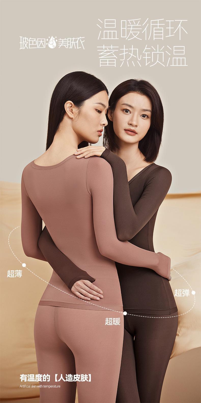 가슴 피부 미용 옷 여성의 가을과 겨울 비 추적 따뜻한 세트 초박형 보이지 않는 근육베이스 옷 여성베이스 가을 옷과 바지스토어 가기